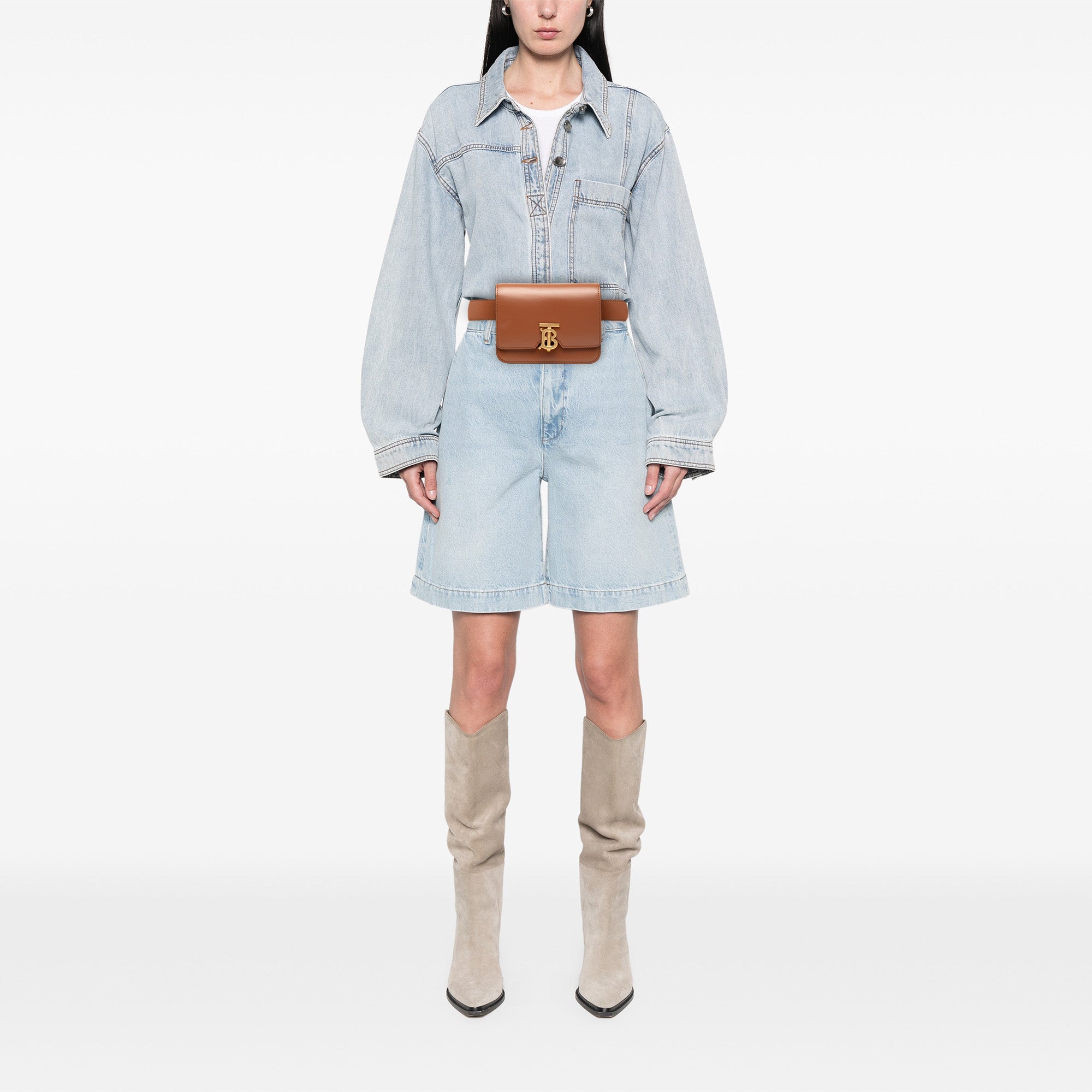 This belt bag features a leather body, an adjustable flat leather waist strap, a top flap with a push lock closure, and interior slip pockets. Retail Price: 1390.00