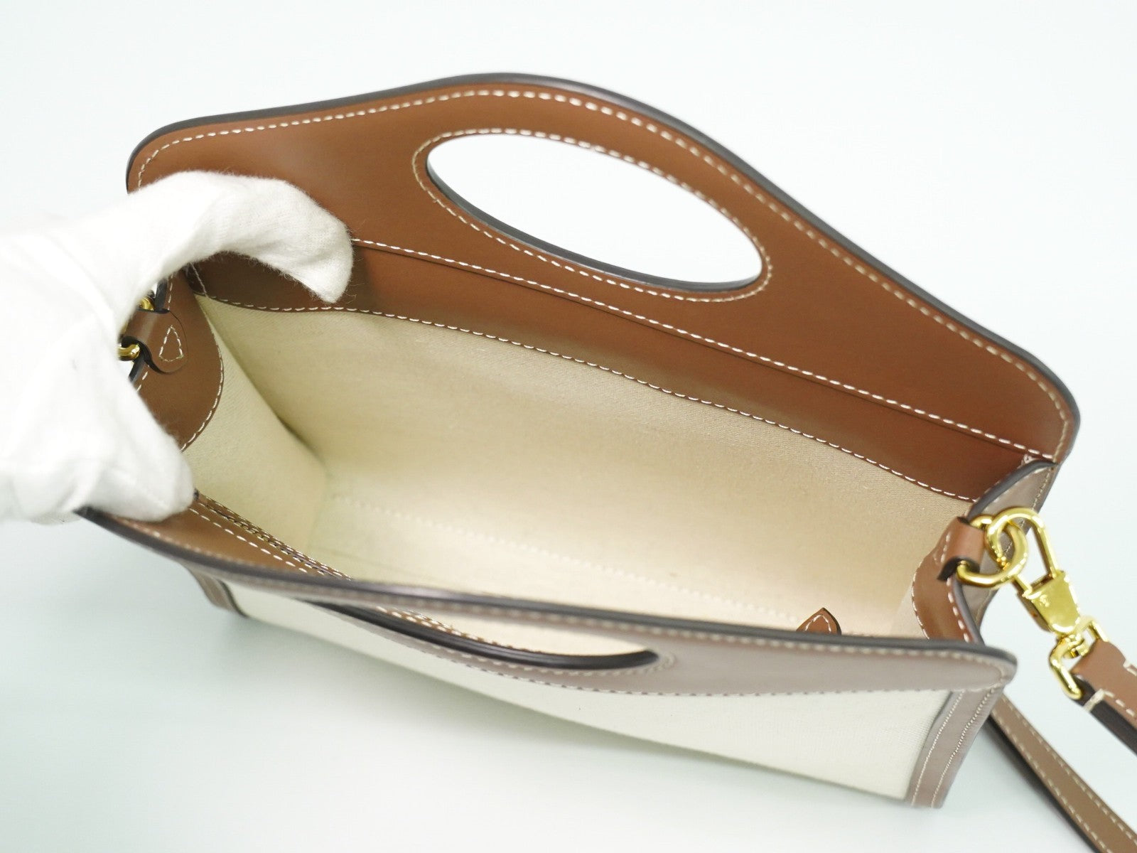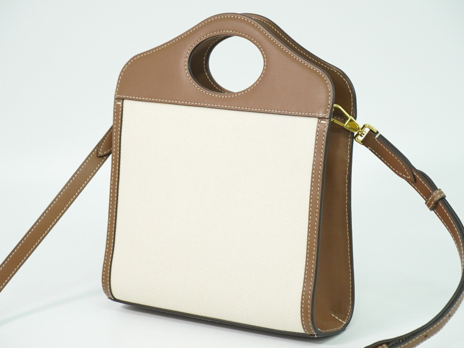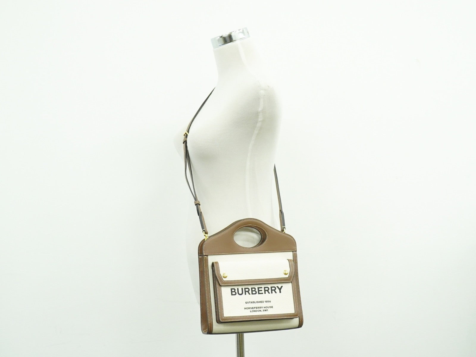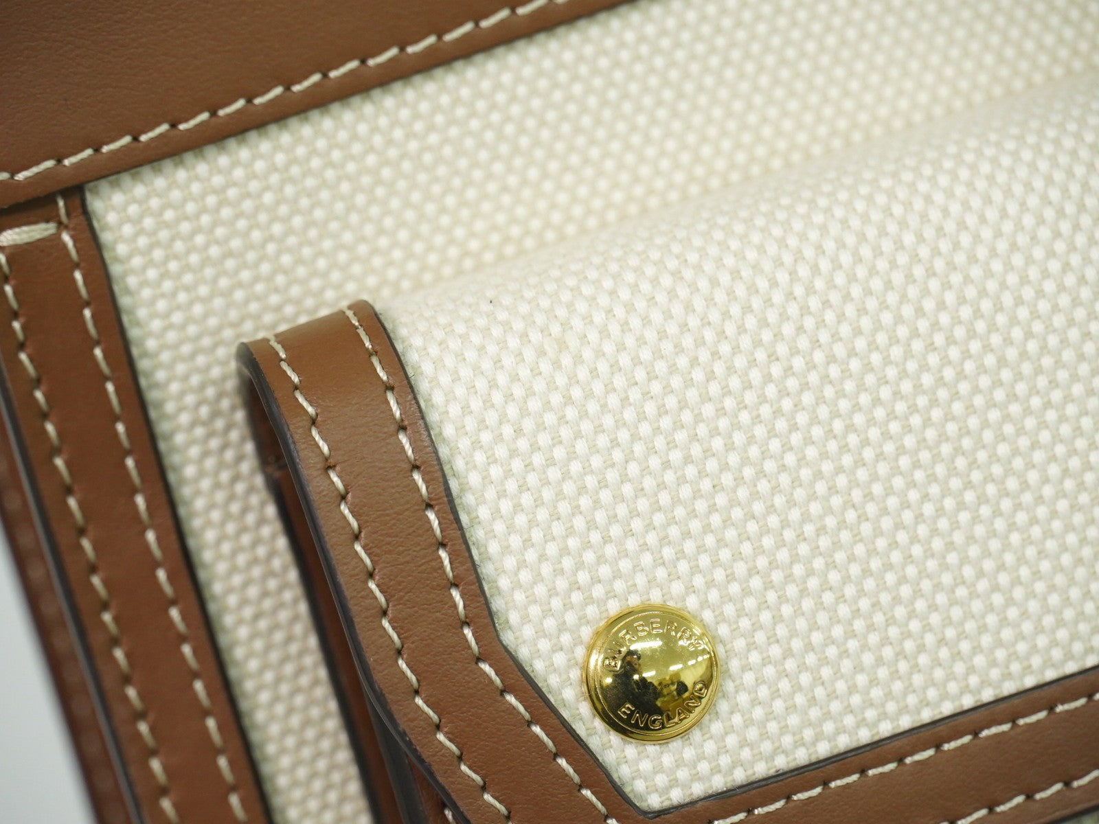 Brand : Burberry Model : Logo pocket tote Style : Canvas with leather Dimensions (W x H x D) : 23cm x 18cm x 5cm Serial number : 2100020000042600 Inclusions : Strap