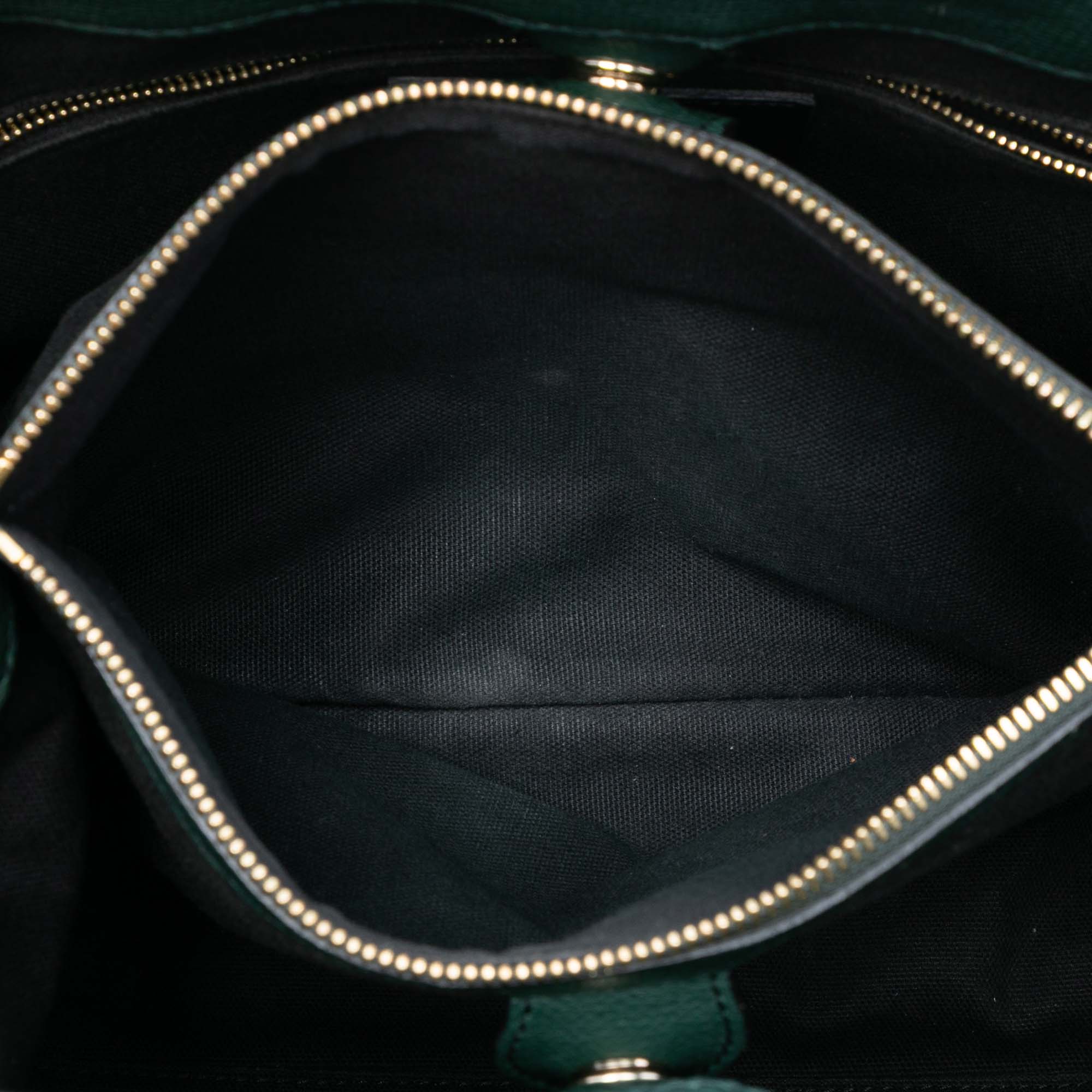 The Banner features a leather body with house check canvas trim, rolled leather handles, an adjustable and detachable flat leather strap, an open top with magnetic snap closure, an interior zip compartment, and interior zip and slip pockets. Retail Price: 1295.00