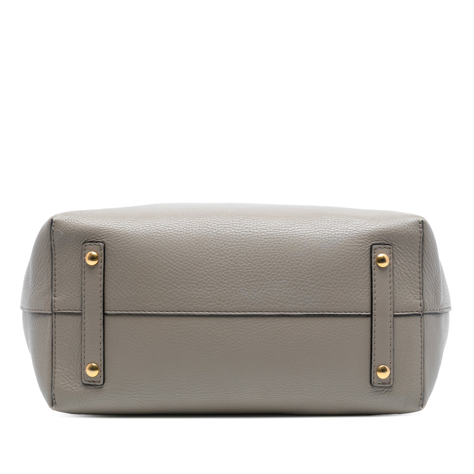 The Belt satchel features a leather body, rolled leather handles, an open top with magnetic snap closure, and interior slip pockets. Retail Price: 2590.00