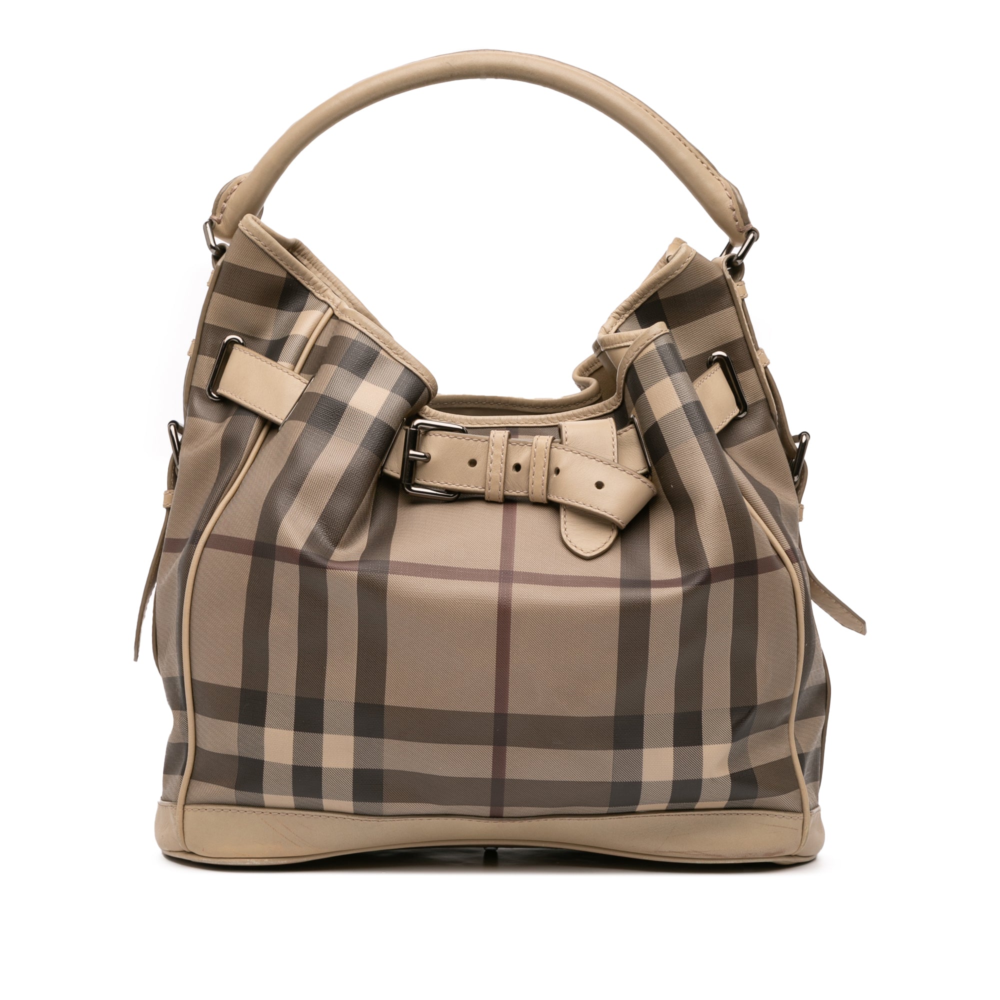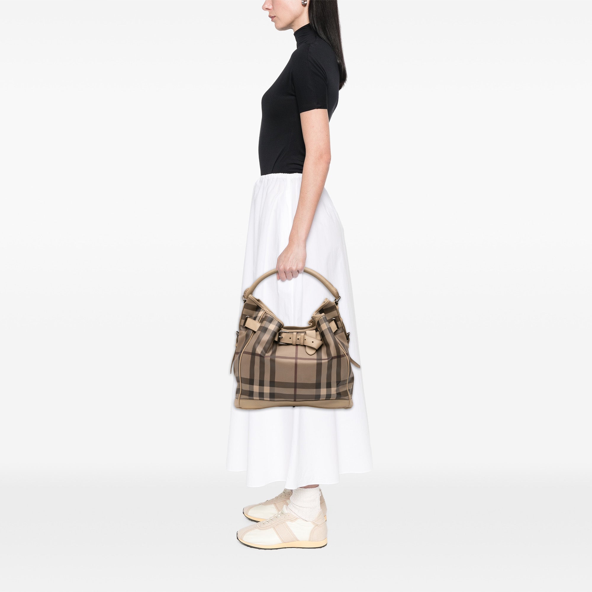 Burberry Medium Smoke Check Coated Canvas Walden Belted Hobo