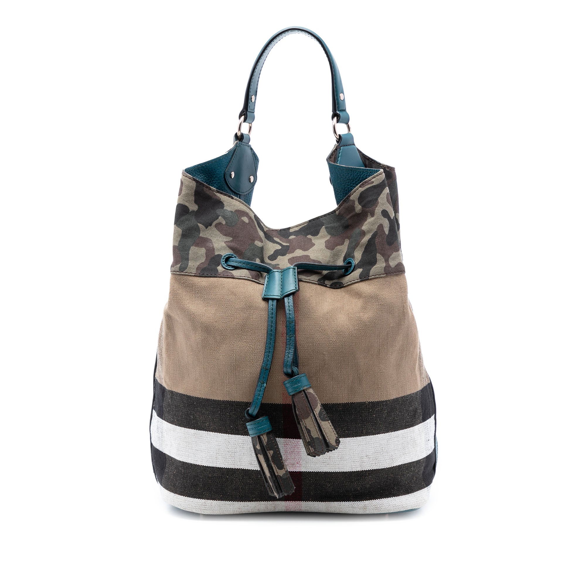 Burberry Mega Check Canvas Camouflage Susanna Tassel Bucket Bag