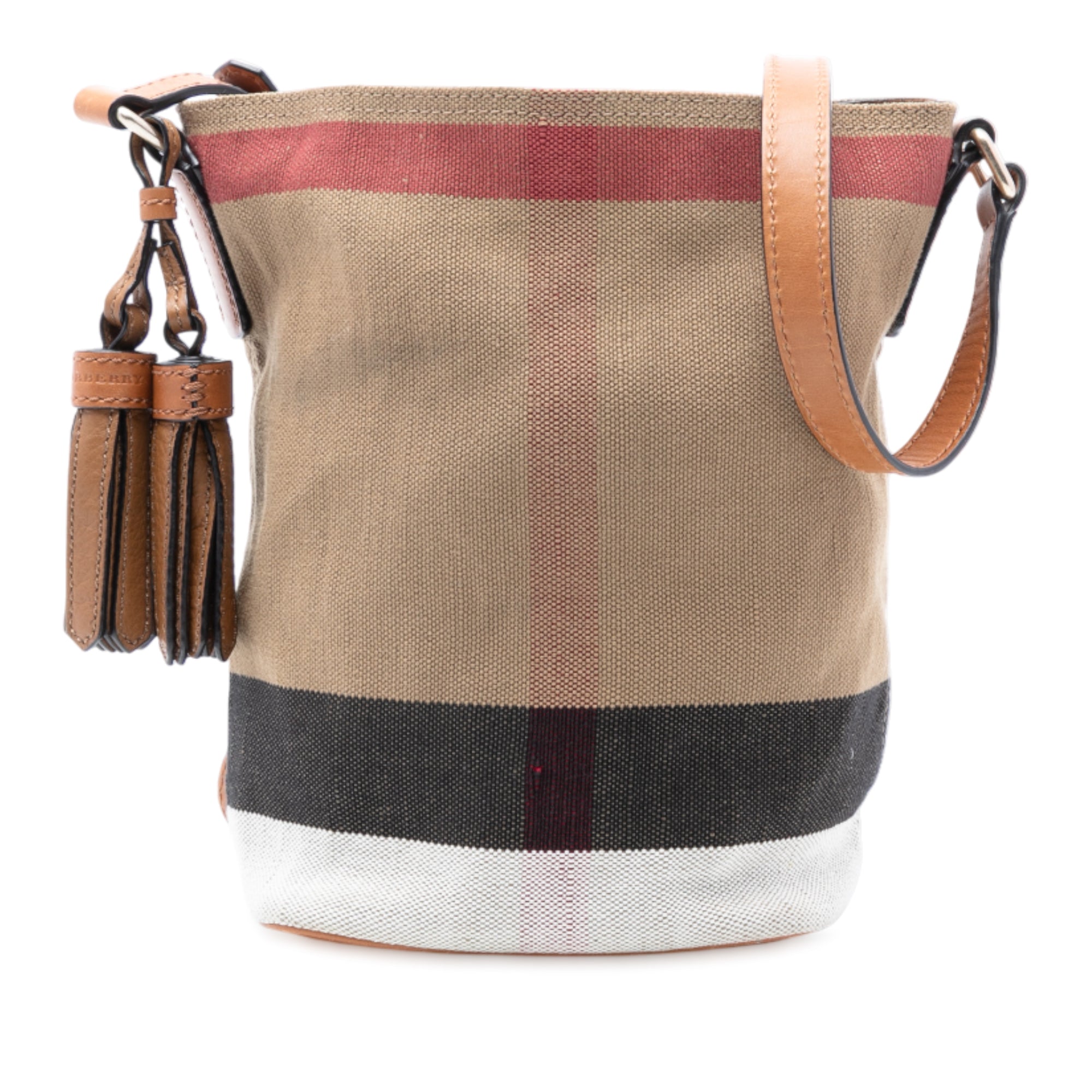 Burberry Mini Mega Check Canvas Ashby Tassel Bucket Bag