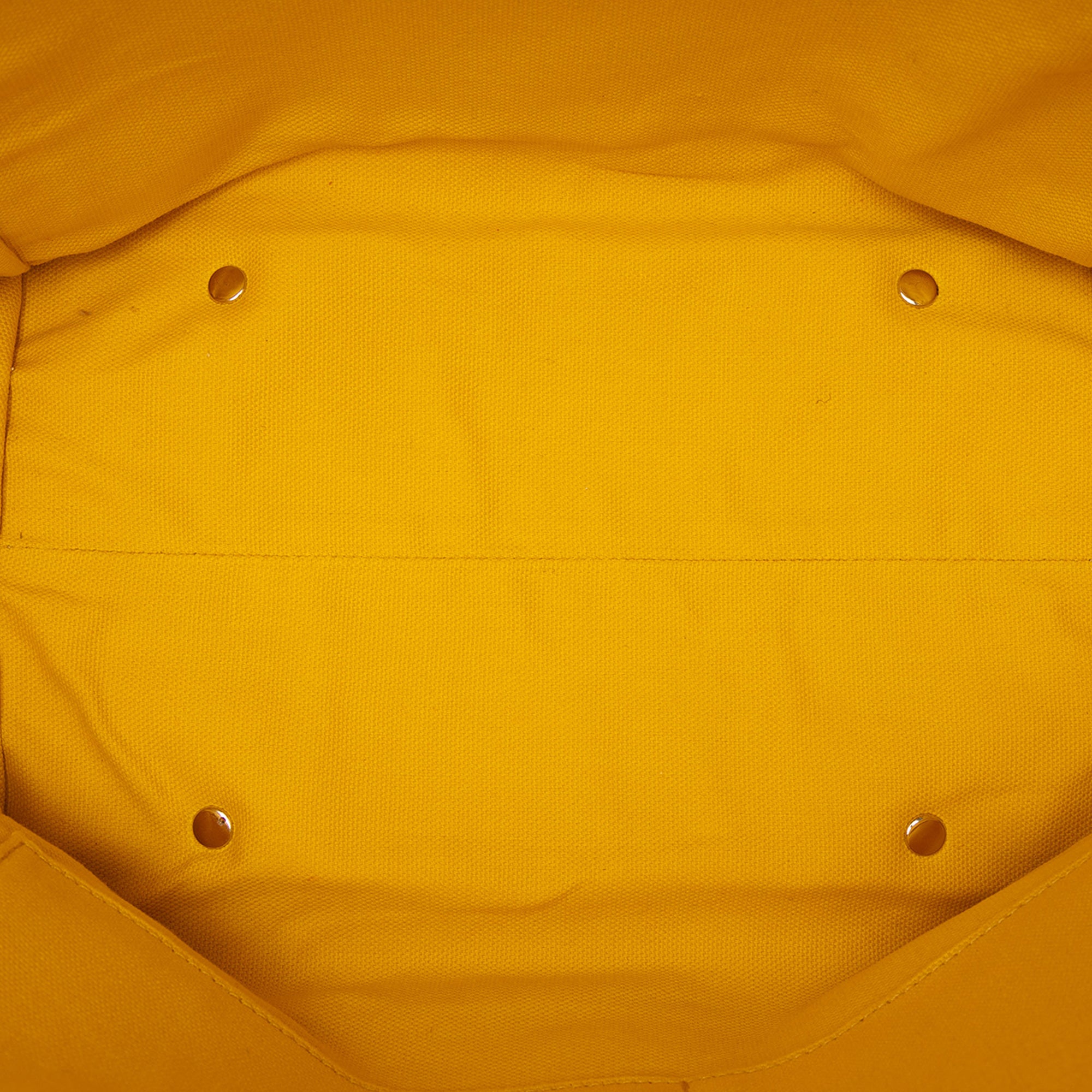 The Canterbury tote bag features a printed coated canvas body with leather trim, flat leather handles, an open top with snap button closures, and interior zip and slip pockets. Retail Price: 895.00