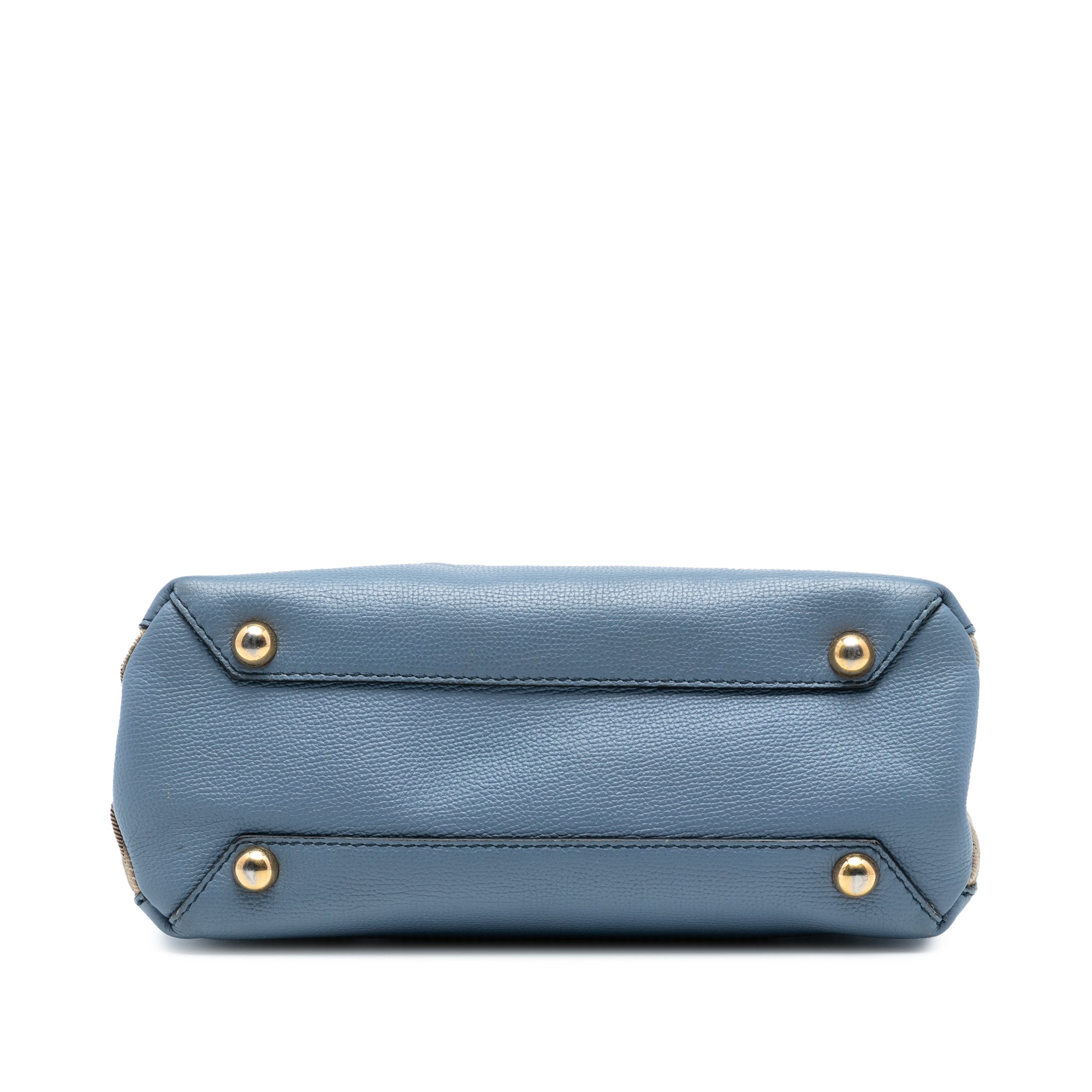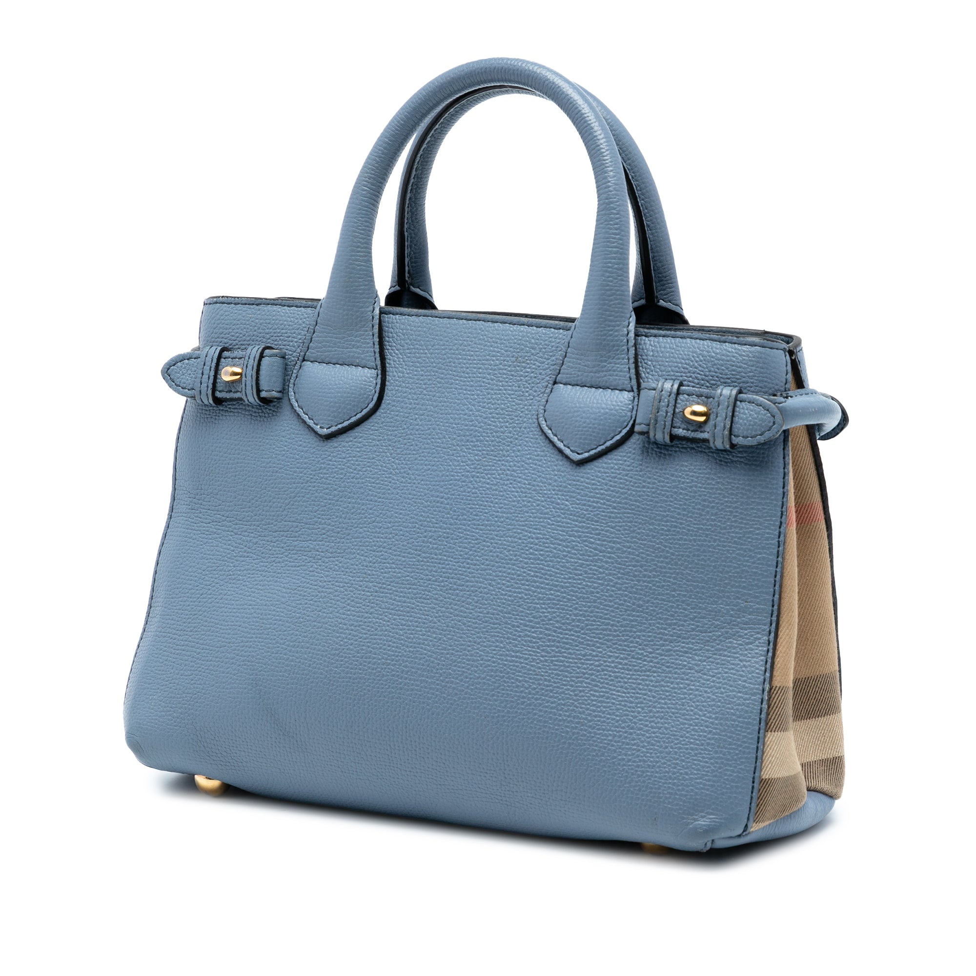The Banner features a leather body, rolled leather handles, a detachable flat leather strap, an open top with a magnetic snap button closure, and interior zip and slip pockets. Retail Price: 1295.00