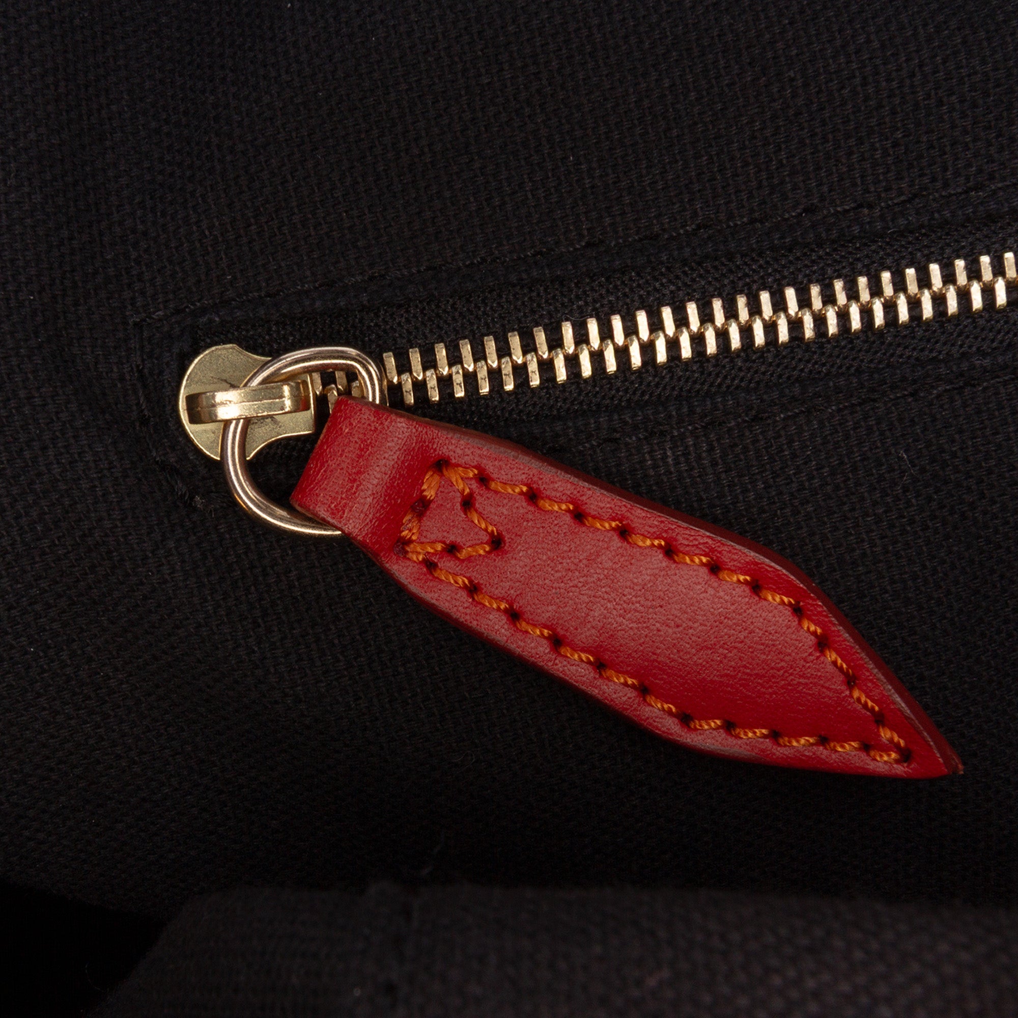 The Bridle Orchard features a canvas body with leather trim, rolled leather handles, a detachable flat strap, a top zip closure, and interior zip and slip pockets. Retail Price: 1260.00