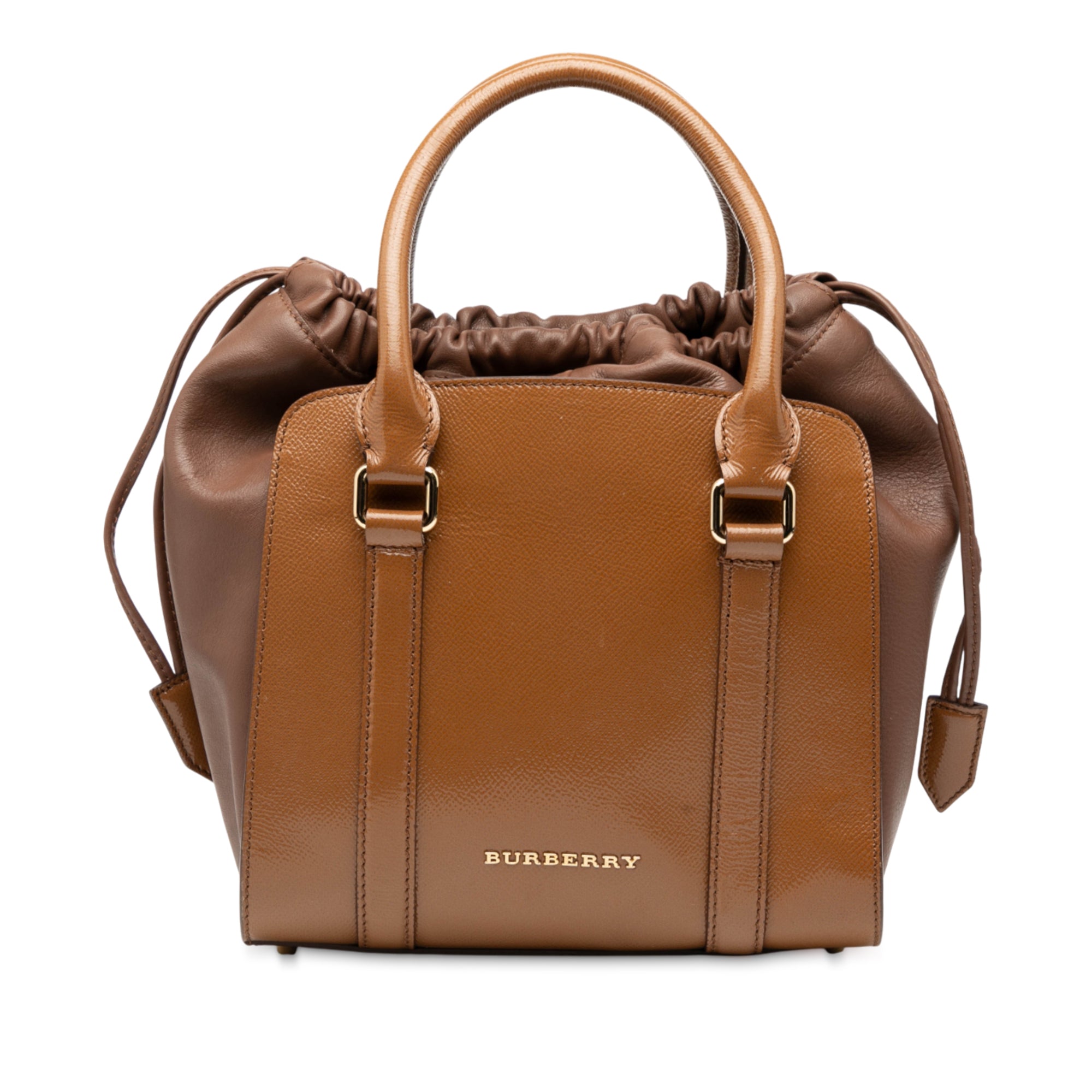 The Dinton satchel features a leather body, rolled leather top handles, a detachable flat leather strap, an open top with snap closure and with drawstring closure, and interior zip and slip pockets. Retail Price: 995.00