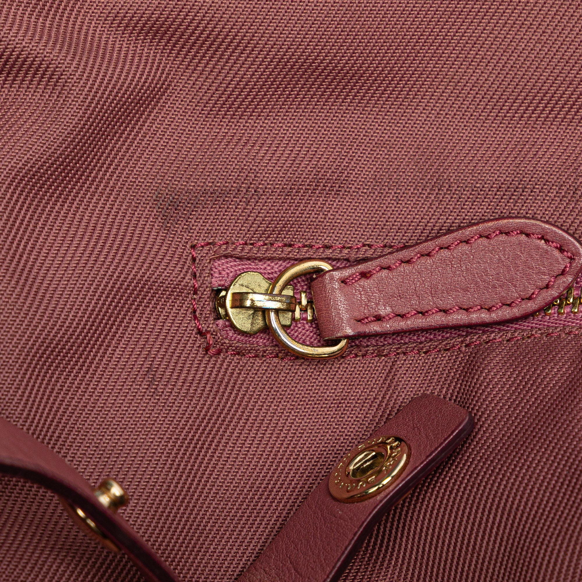The Canterbury tote bag features a haymarket check coated canvas body with leather trim and bow details, flat leather handles, an open top with magnetic snap closure, and interior zip and slip pockets. Retail Price: 835.00