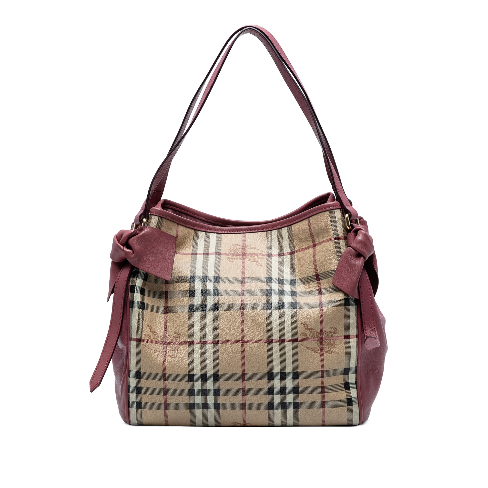 Burberry Small Leather Trimmed Haymarket Check Coated Canvas Canterbury Bow Tote