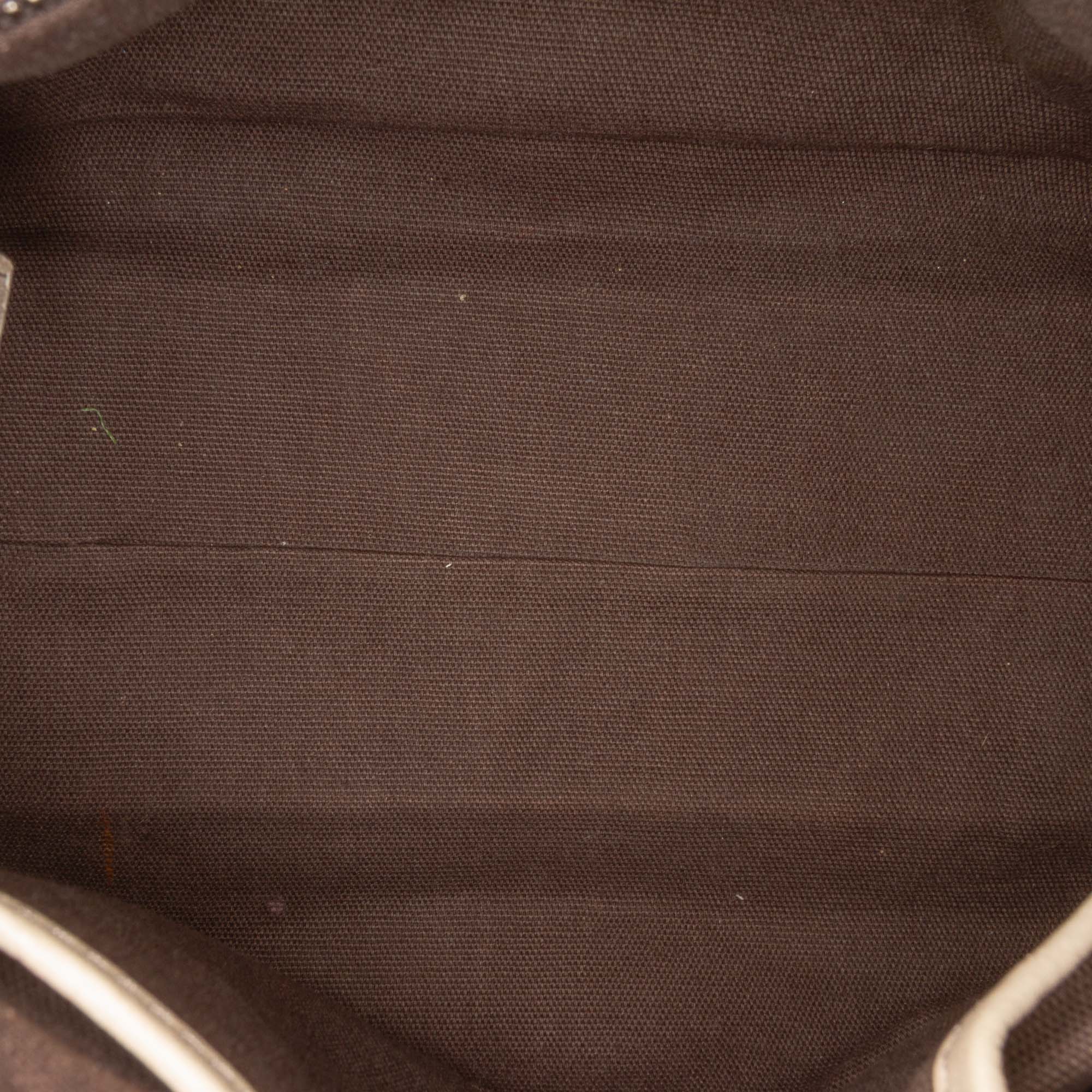 This satchel features a coated canvas body with leather trim, rolled leather handles, a top zip closure, and interior zip and slip pockets. Inclusion: Dust bag. Retail Price: 650.00