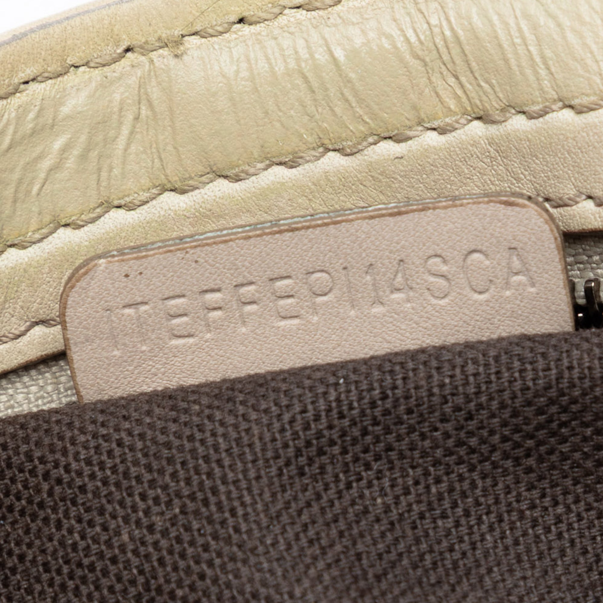 This shoulder bag features coated canvas body with leather trim, a rolled leather strap, a top zip closure, and an interior zip pocket. Retail Price: 895.00