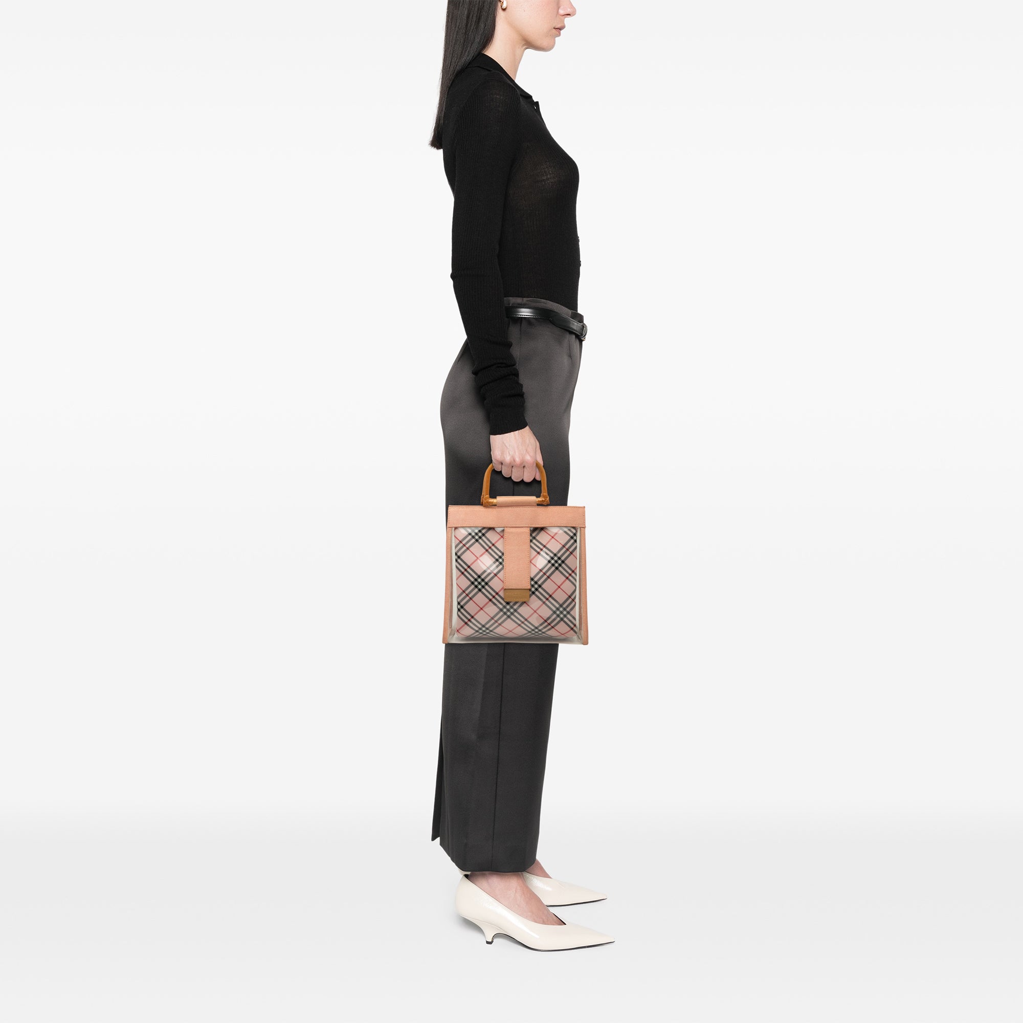 Burberry Vinyl And Nova Check Canvas Bamboo Tote