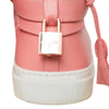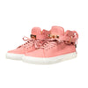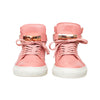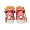 Buscemi 100MM High Top Sneakers feature a Nappa leather upper, rubber sole, hidden wedge, padded tongue, ankle strap with rose gold-tone padlock, and key pull loop.
