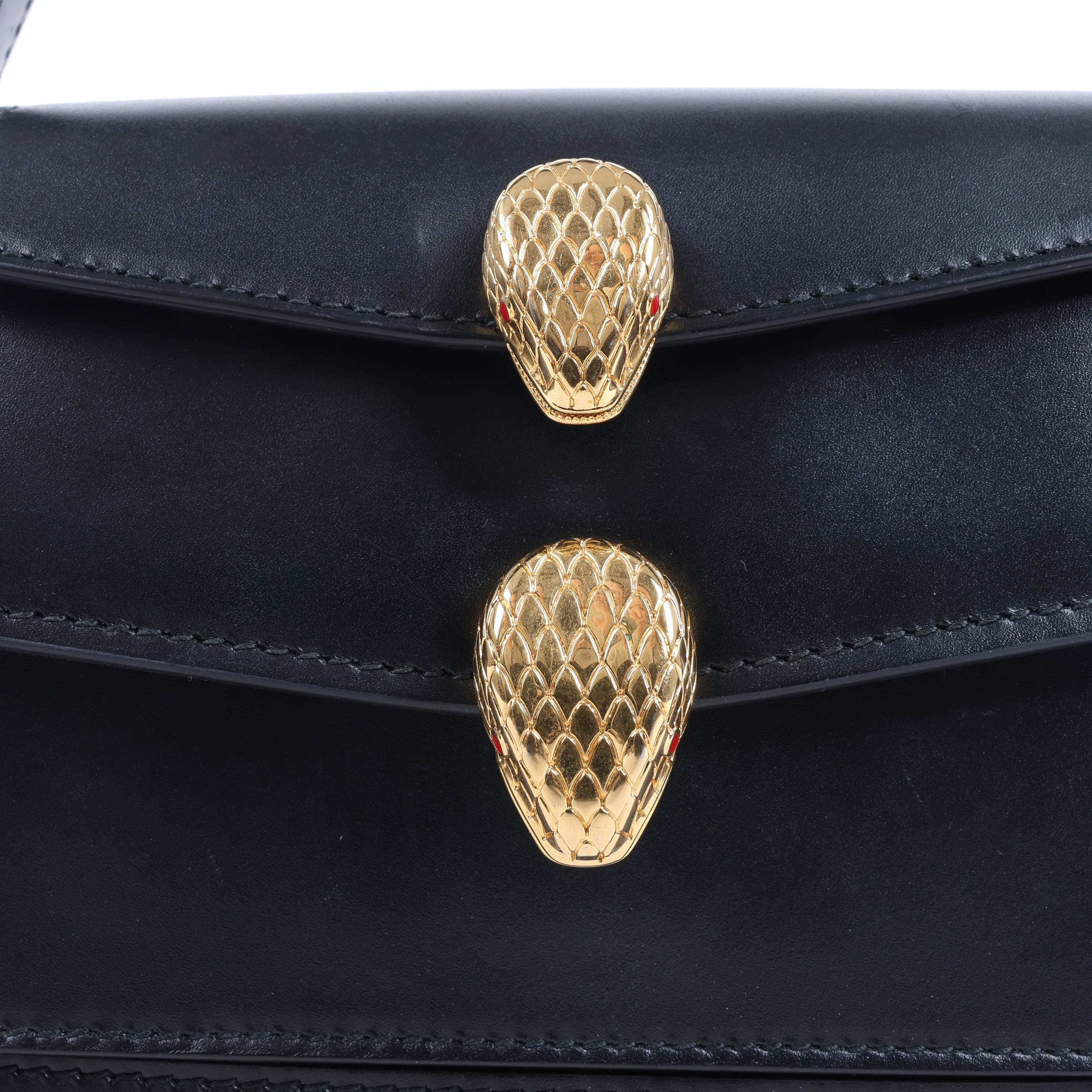 Brand: Bvlgari × Alexander WangModel: SerpentiSize: -Width: 18 cmHeight: 12 cmExterior Condition: ExcellentInterior Condition: ExcellentCondition Details: The exterior is in excellent condition with minor scratches. The hanle is firm and in great condition. Note: There is no shoulder strap. The hardware has surface scratches but remains bright. The interior is clean and in excellent condition, except usage scratches.Colour: BlackInterior Colour: BlackHardware Colour: GoldMaterial: LeatherComes With: Paper, certificate