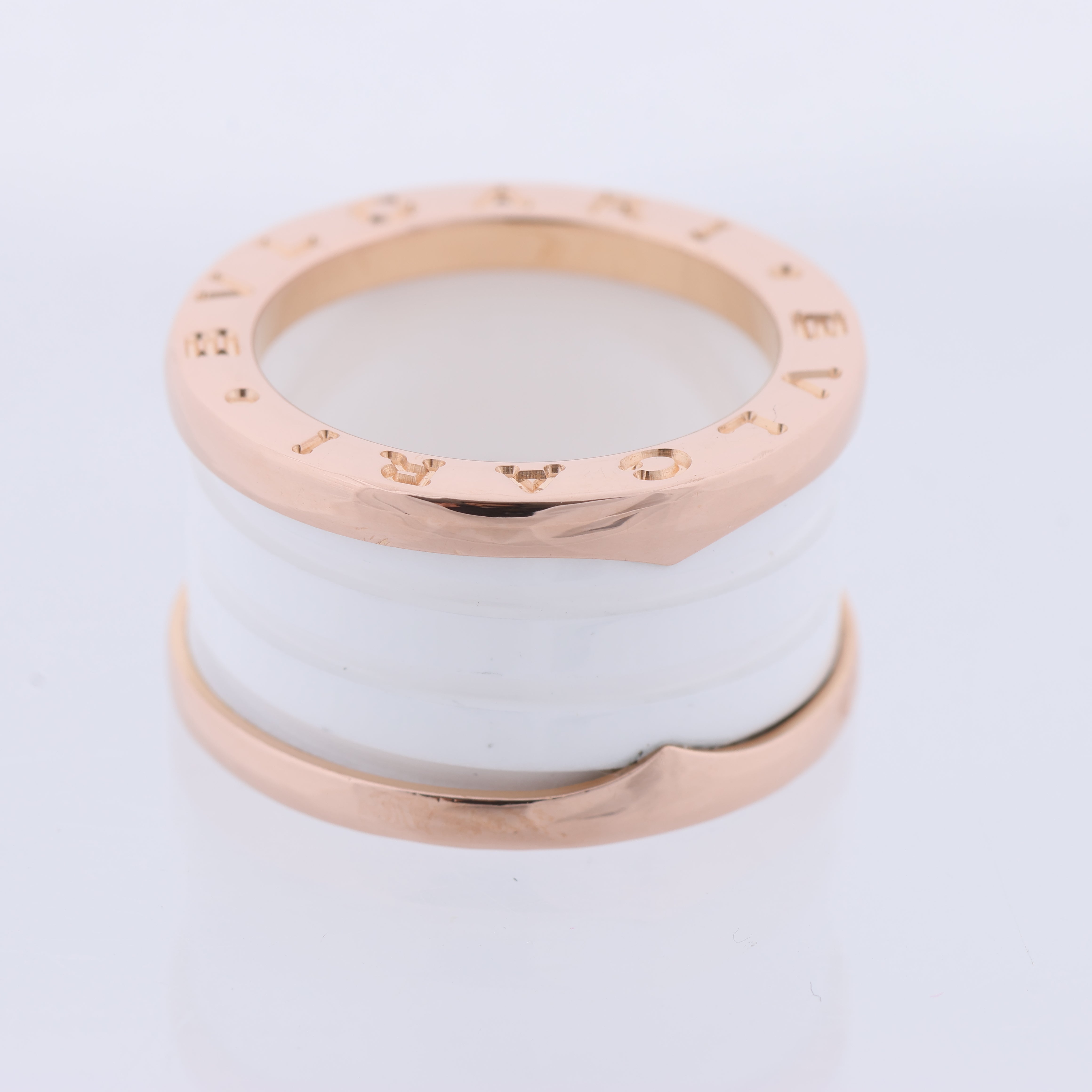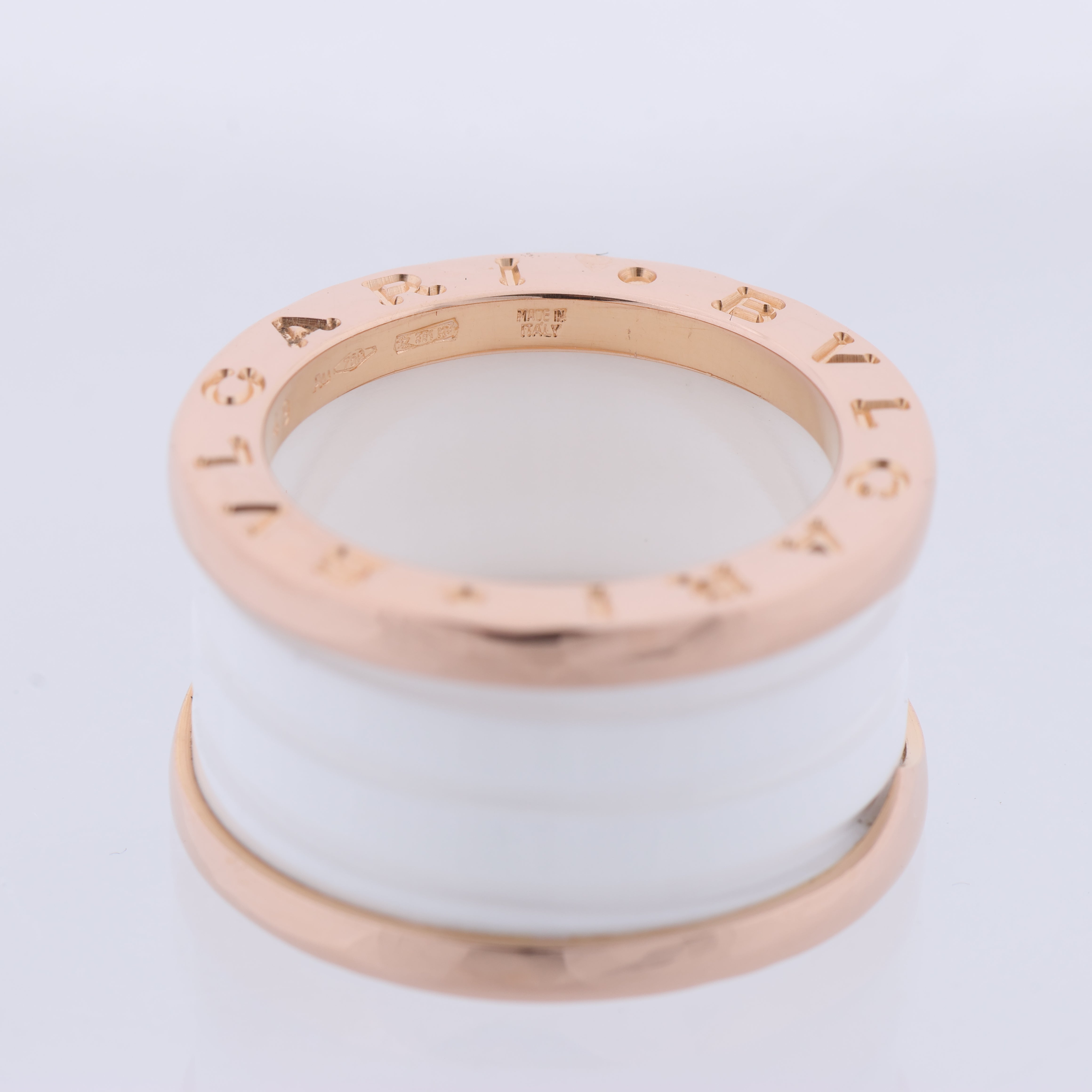 Brand: Bvlgari Model: B.Zero1Size: EU 49Diameter: 15.4 mmWeight: 9.4 gGemstones: White CeramicGold Type: Pink gold Condition: Excellent