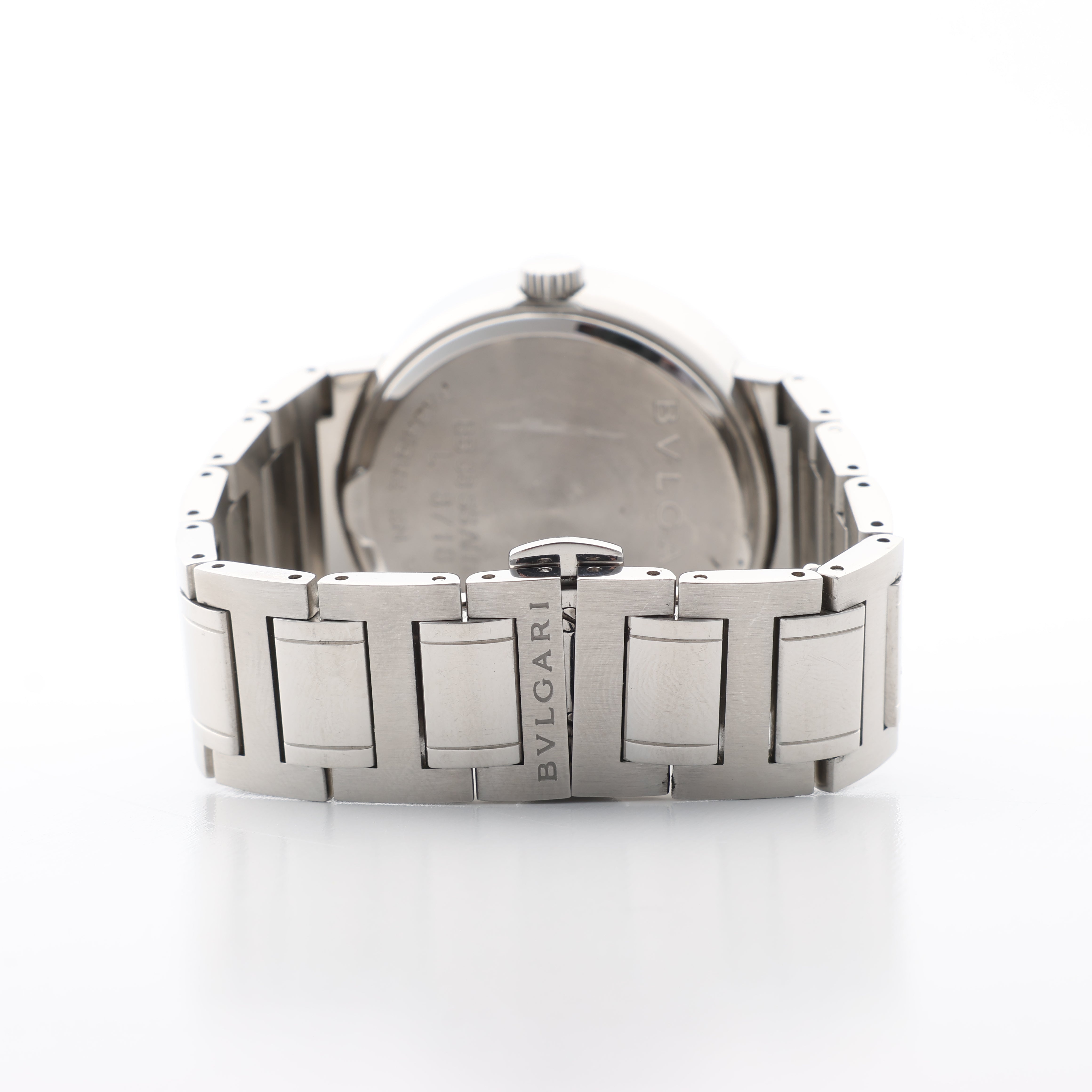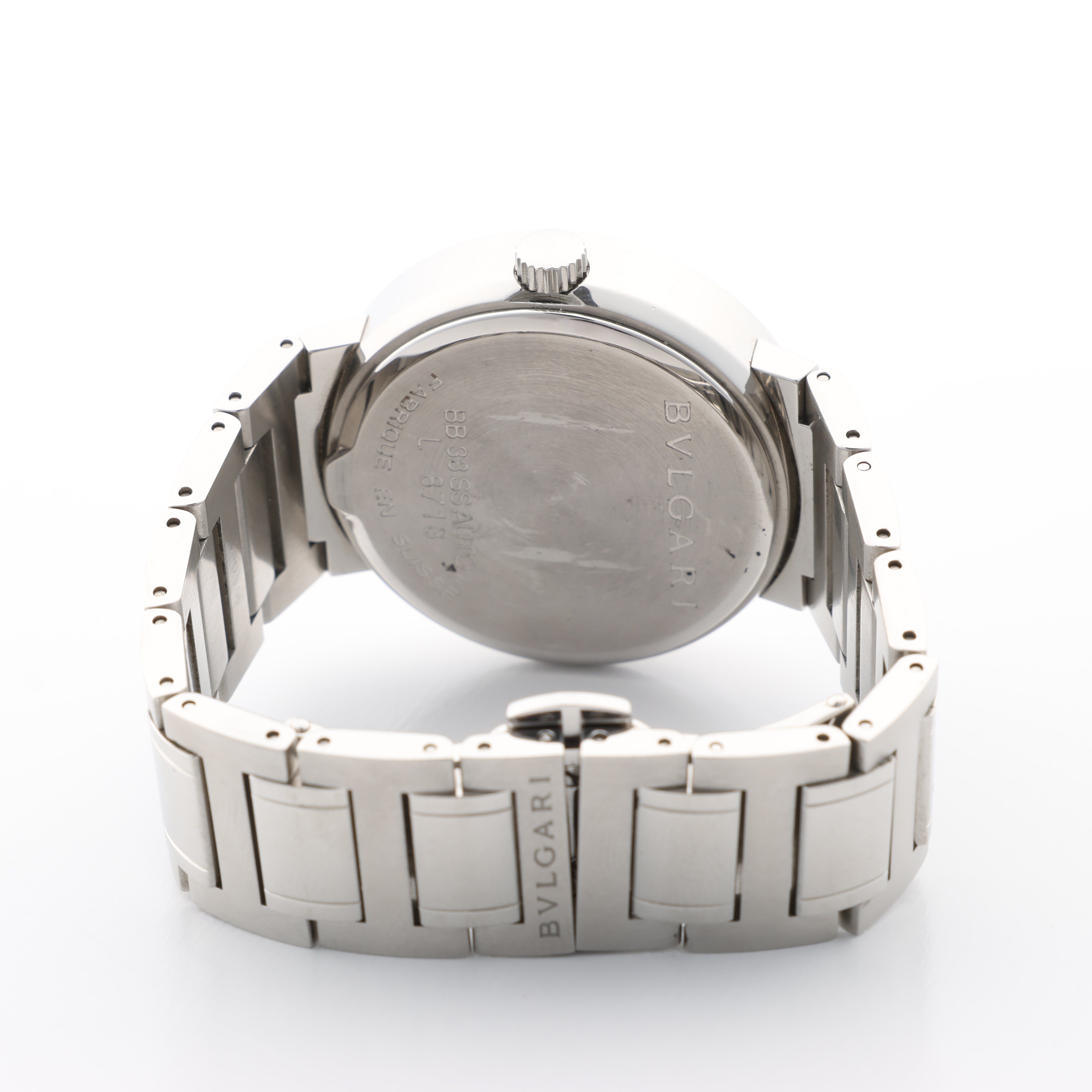 Brand: BvlgariModel: BulgariReference: BB38WSSDCondition: ExcellentCondition Details: In great condition with minor signs of wear as surface scratches on the watch strap and case, see photos for reference. Has just been checked and serviced. Outer pillow included; watch pillow is damaged.Dial Colour: SilverDial Material: Stainless steel Starp Colour: SilverStrap material: Stainless steelMovement: AutomaticClosure: ClaspFace Diameter: 38 mm Approx. circumference: 16 cm + 2 extra linksComes With: Box, Papers, Extra links