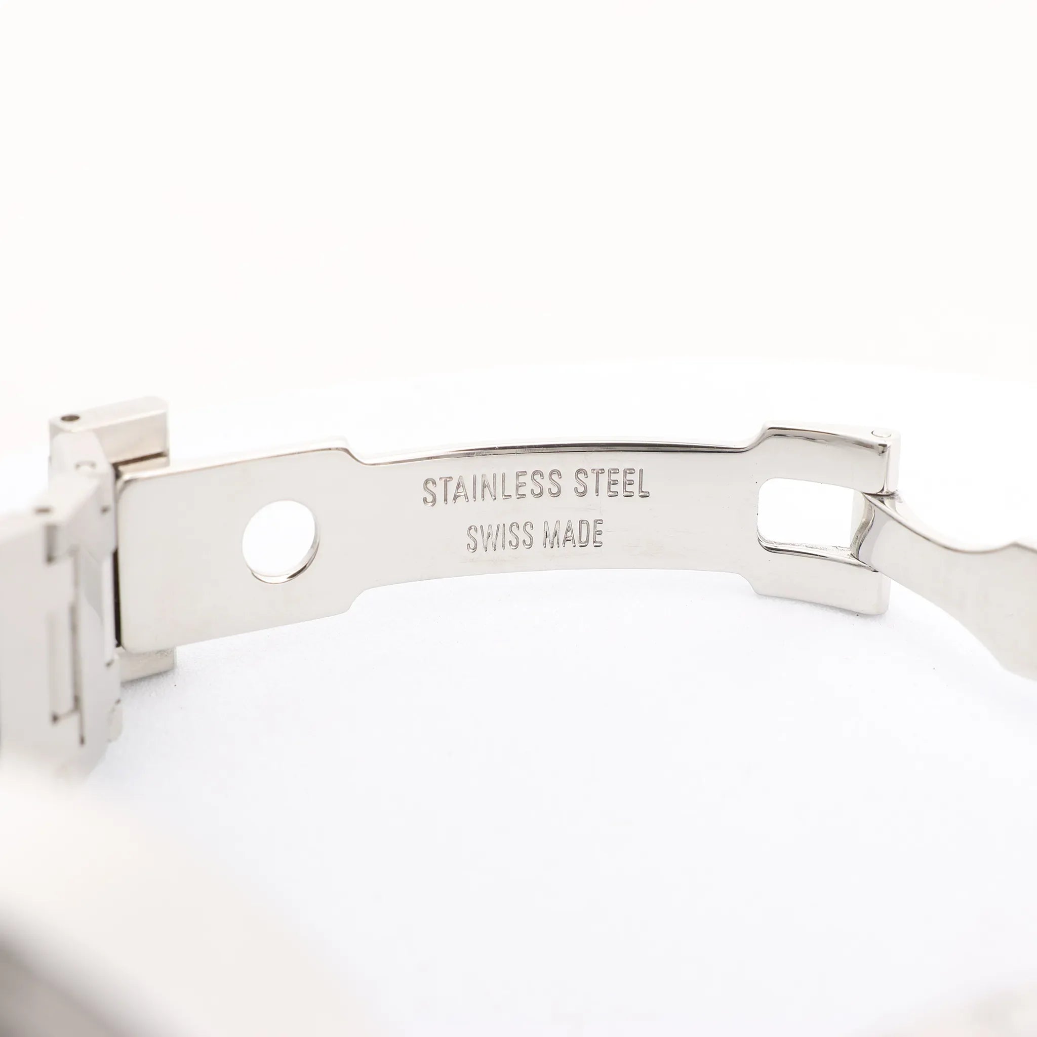 The Bvlgari BB38SSCH Chronograph watch features a bold black dial, automatic movement, and stainless steel build. Iconic Bvlgari branding and precision chronograph functionality make it a refined statement timepiece.