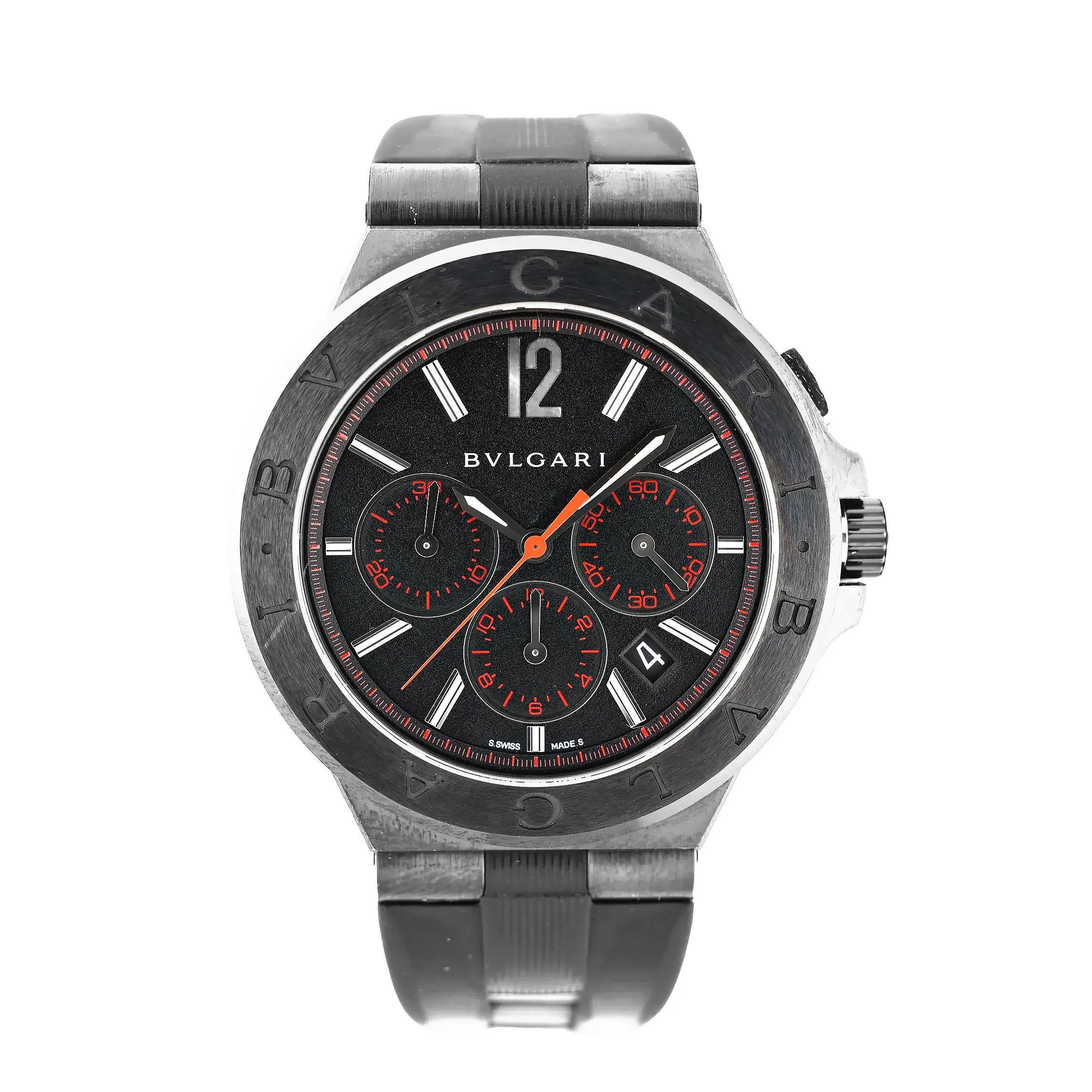Command attention with the Bvlgari Diagono DG42BSCCH, a bold automatic chronograph crafted in stainless steel and rubber. Featuring a striking black dial with red accents, this Swiss-made timepiece delivers sporty sophistication and high performance.Brand: BVLGARI Model: DiagonoReference: DG42BSCCHCondition: ExcellentCondition Details: Light signs of use, including subtle surface marks barely visible to the eye. Please see photos for the exact condition.Dial Colour: BlackDial Material: Stainless steelStarp Colour: BlackStrap material: RubberMovement: AutomaticFace Diameter: 42 mm Approx. circumference: 19.5 cmComes With: Box, Booklet, Service card