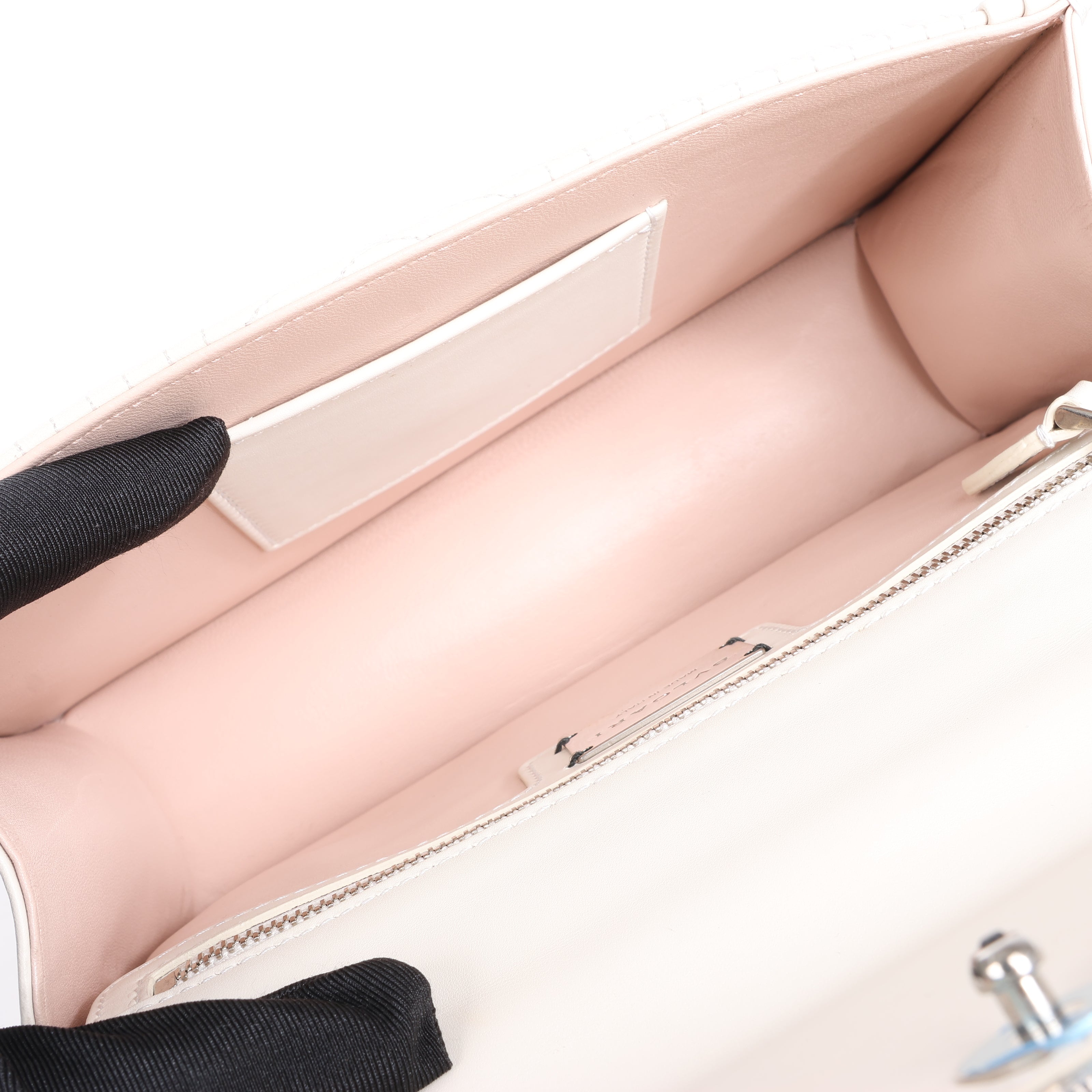 Brand: BvlgariModel: SerpentiSize: -Width: 20 cm Height: 14 cm Exterior Condition: Excellent Interior Condition: ExcellentCondition Details: Exterior leather is clean and beautiful in great condition. Hardware is bright and crisp, Inner lining is clean and in excellent condition. Colour: WhiteInterior Colour: PinkHardware Colour: SilverMaterial: LeatherComes With: Chain strap, authenticity card, mirror, dustbag, cards, rain cover.