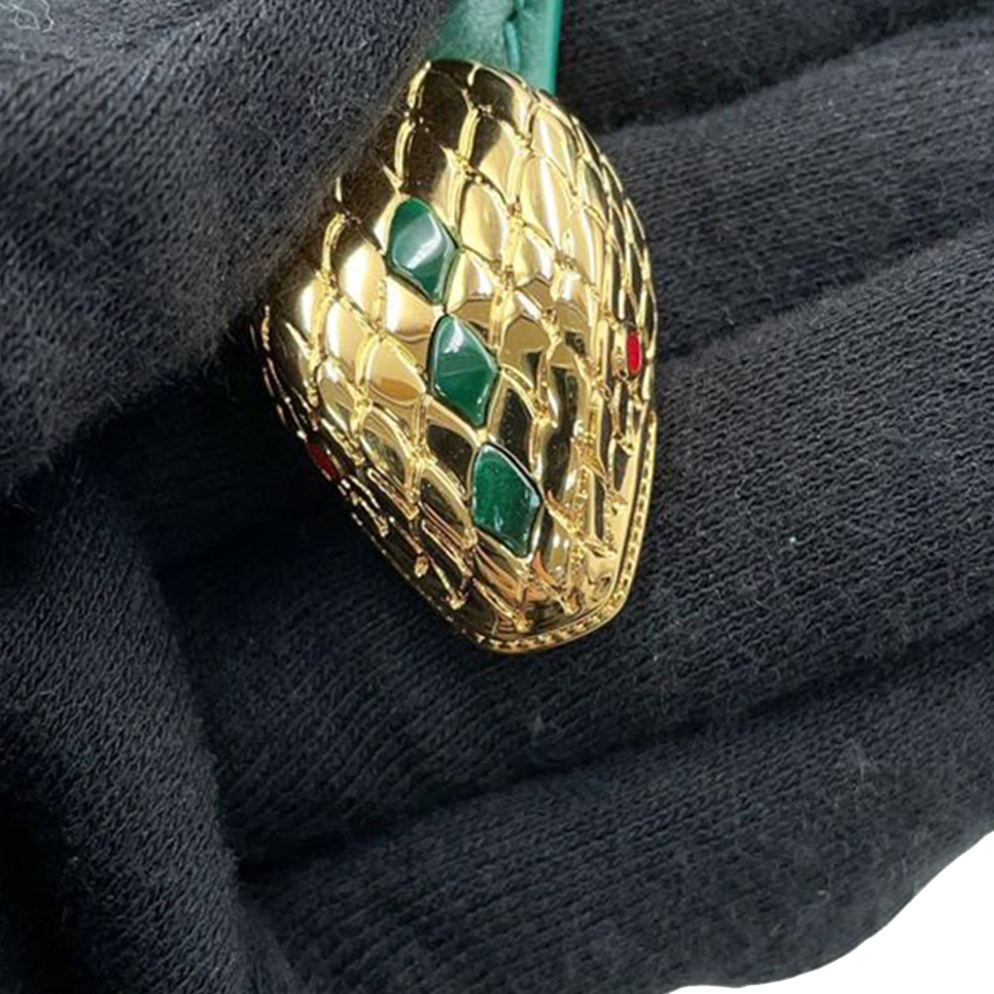 The Serpenti Ellipse features a leather body, a detachable flat leather handle, an adjustable and detachable chain link strap with leather guard, a top zip closure, a flap tab with magnetic snap closure, an exterior back slip pocket, and an interior slip pocket. Inclusion: Dust bag. Retail Price: 1745.00