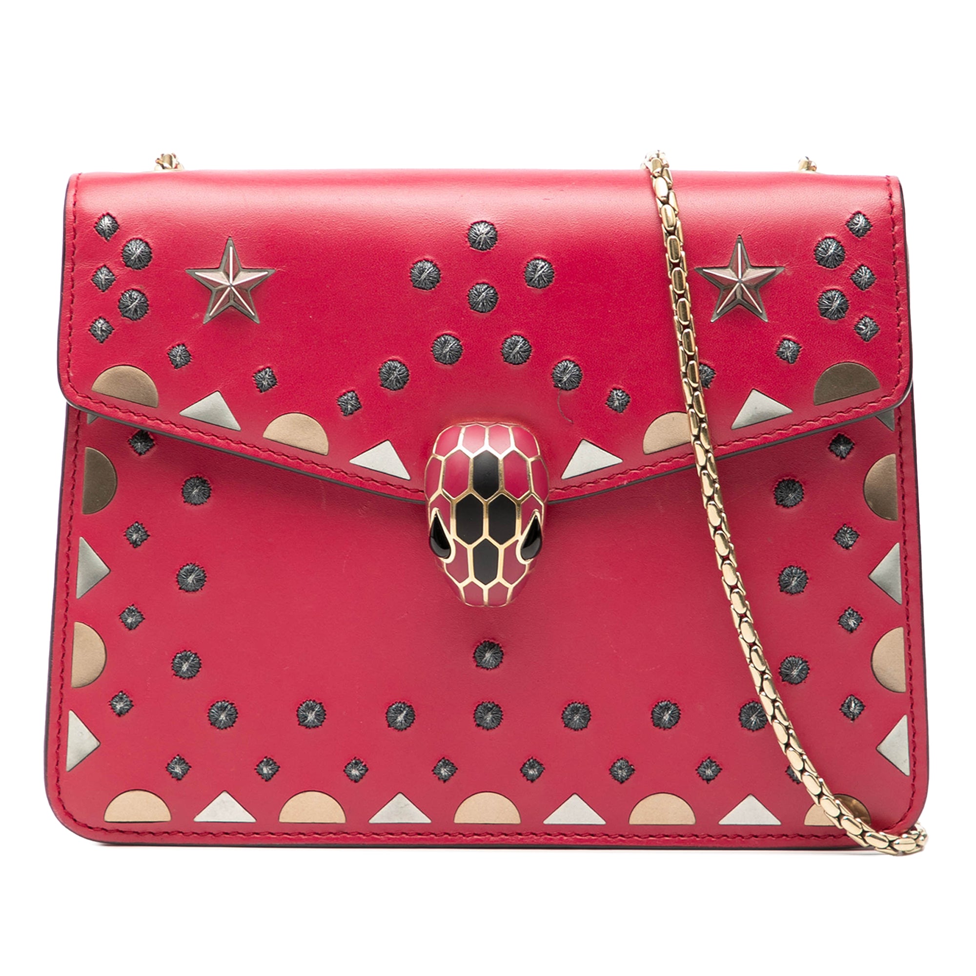 Bvlgari Small Studded Leather Laser Cut Square Serpenti Forever Chain Crossbody