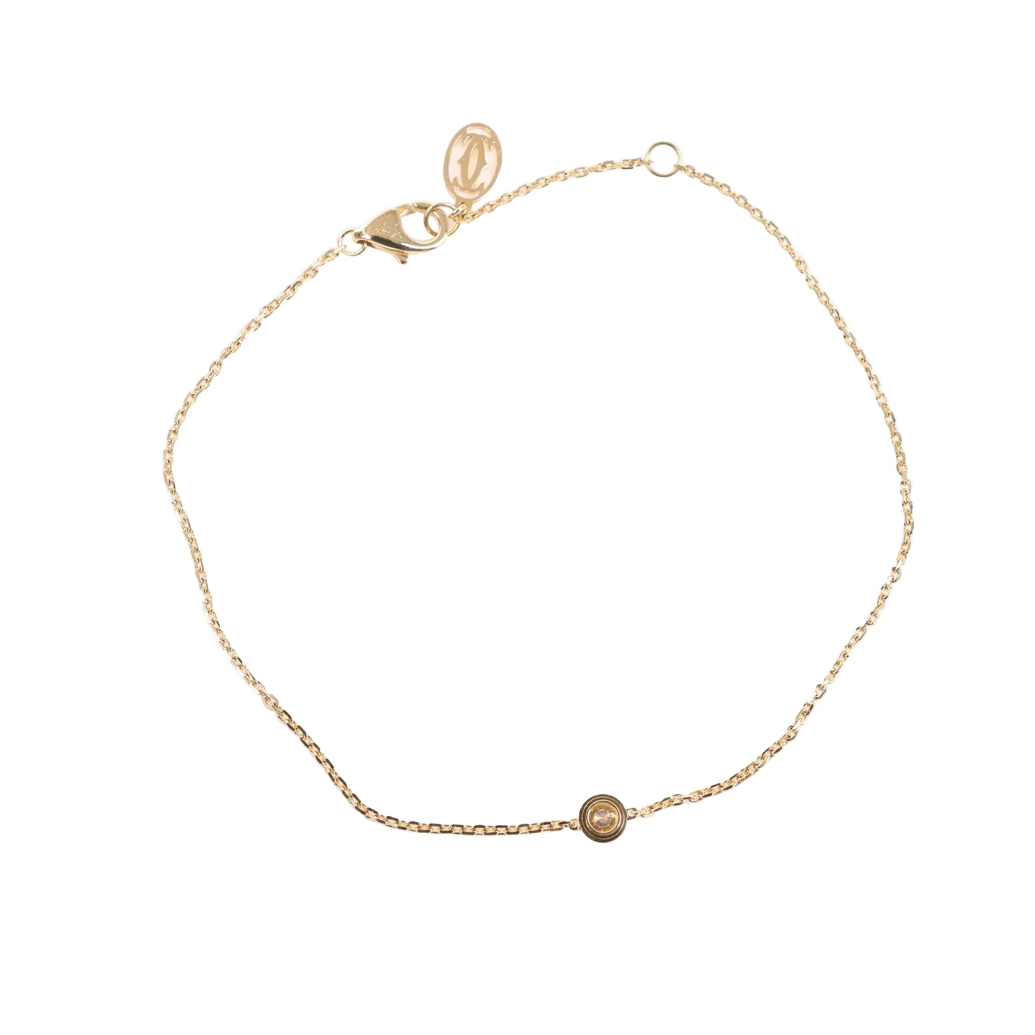 Brand: CartierModel: D'amourBracelet length: 18.5 cmPendant size: 0.2 cmWeight: 1.4 gGemstones: DiamondMaterial: Yellow GoldColor: GoldCondition: ExcellentCondition Details: Pre-Owned Jewelry has light usage scratches, but just been serviced and cleaned at jewelers. Before purchasing, please refer to the images for the exact condition of the item.Comes With: Box, certificate