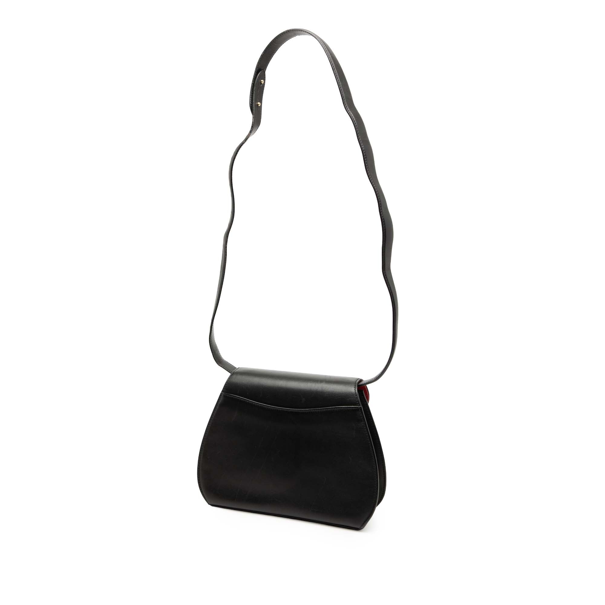 This crossbody bag features a leather body, a flat leather strap, a front flap with magnetic closure, and an interior slip pocket. Inclusion: Dust bag. Retail Price: 1200.00