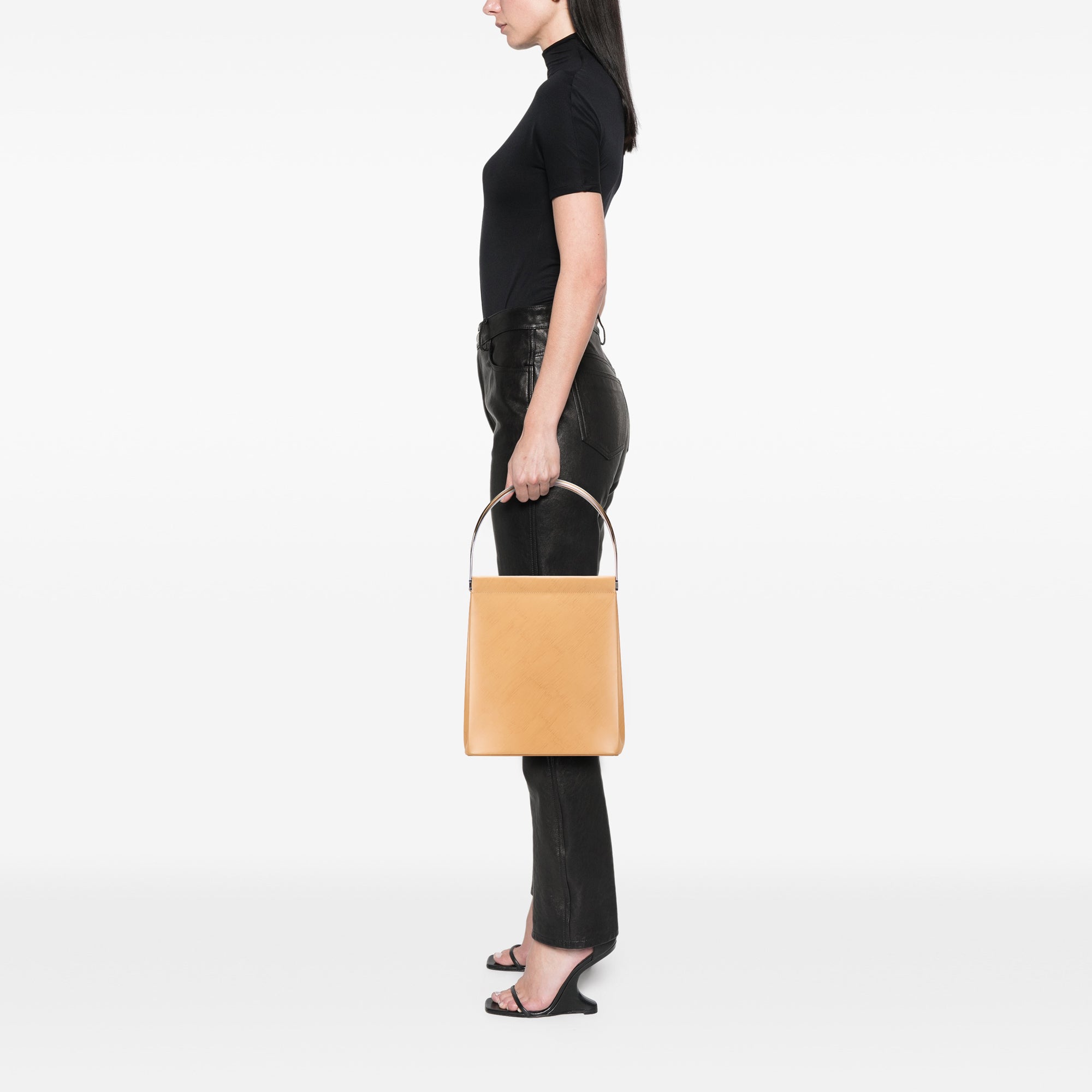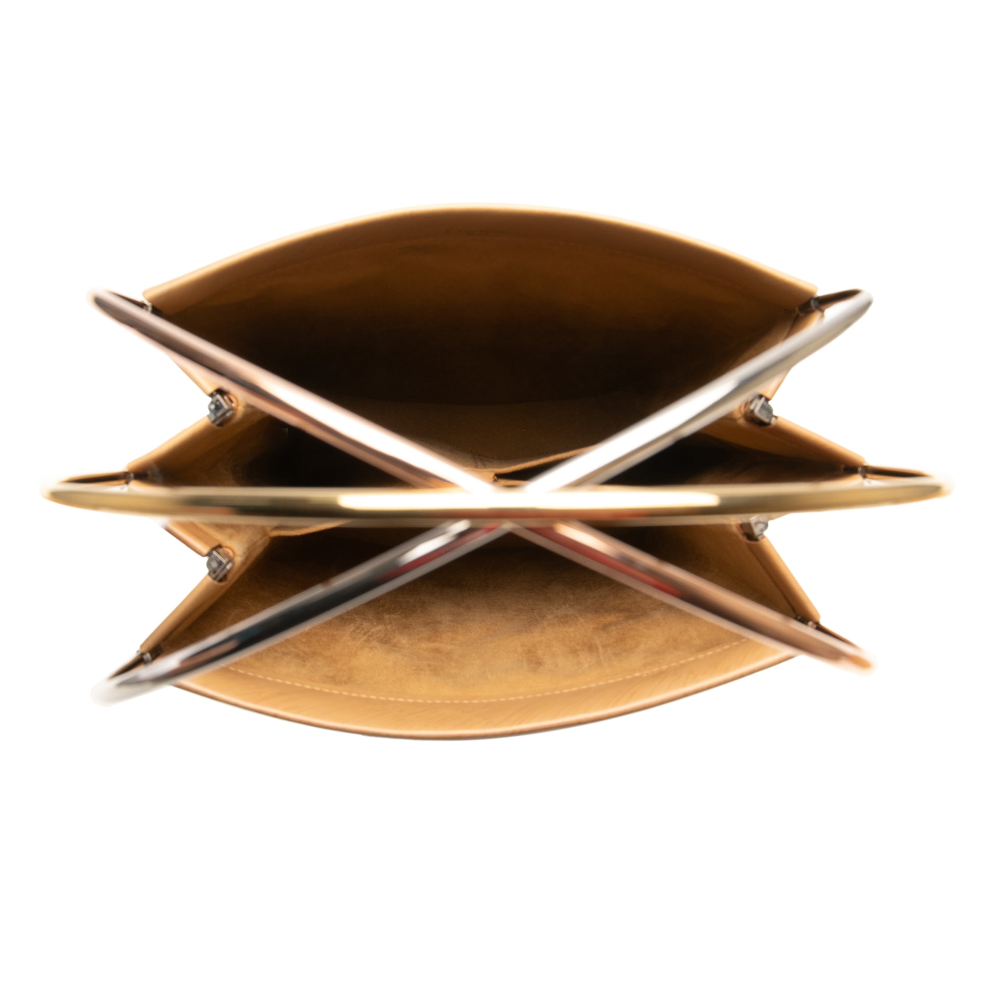 The Trinity handbag features a leather body, metal top handles, an open top, and interior pockets. Retail Price: 900.00