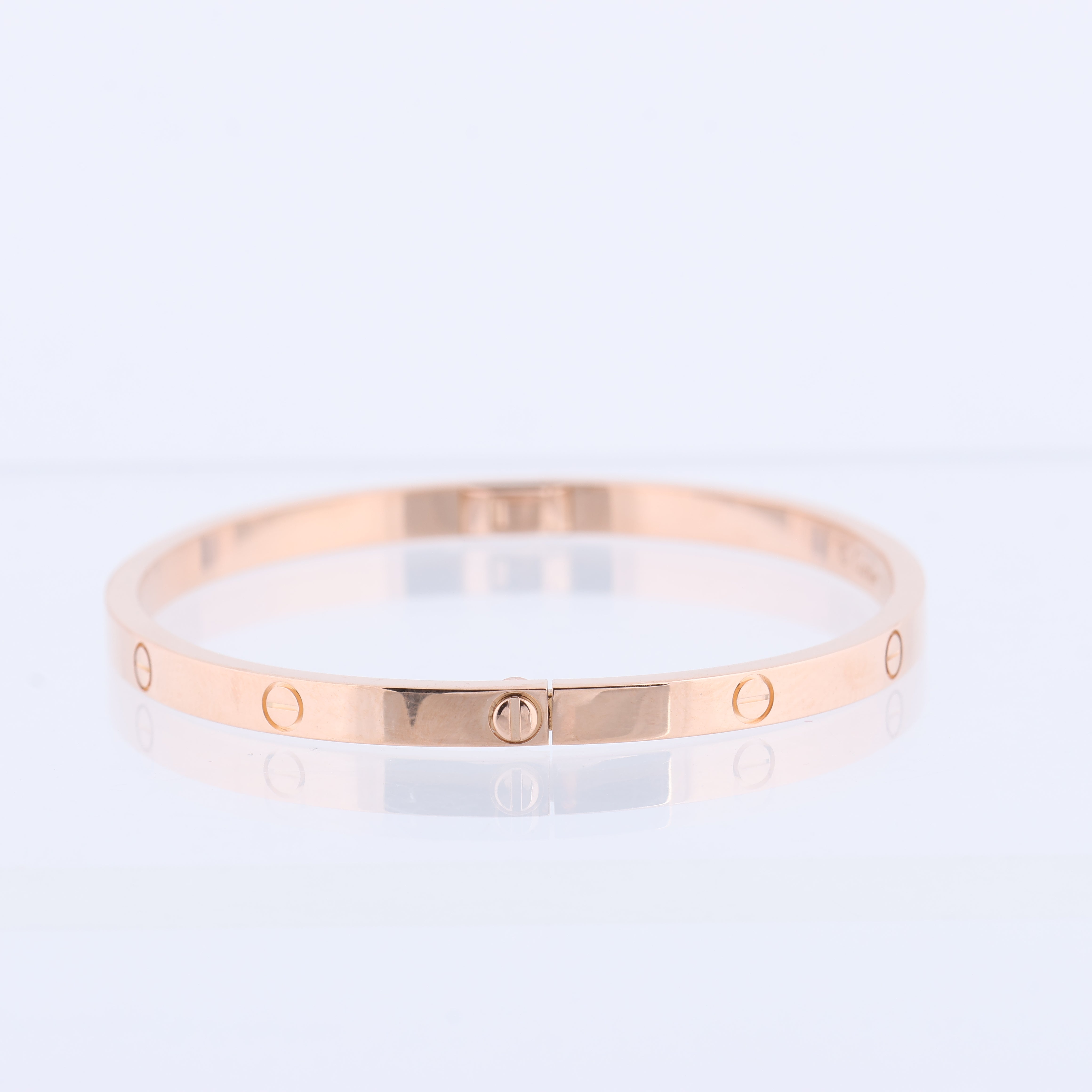Brand: CartierModel: LoveSize: SM, 16Bracelet dimensions: 52 x 44.5 mmWeight: 16.8 gGold Type: Pink Gold Condition: ExcellentCondition Details: Pre-Owned Jewelry has just been serviced and cleaned at jewelers. Significant with some scratches. Before purchasing, please refer to the images for the exact condition of the item.Comes With: Box