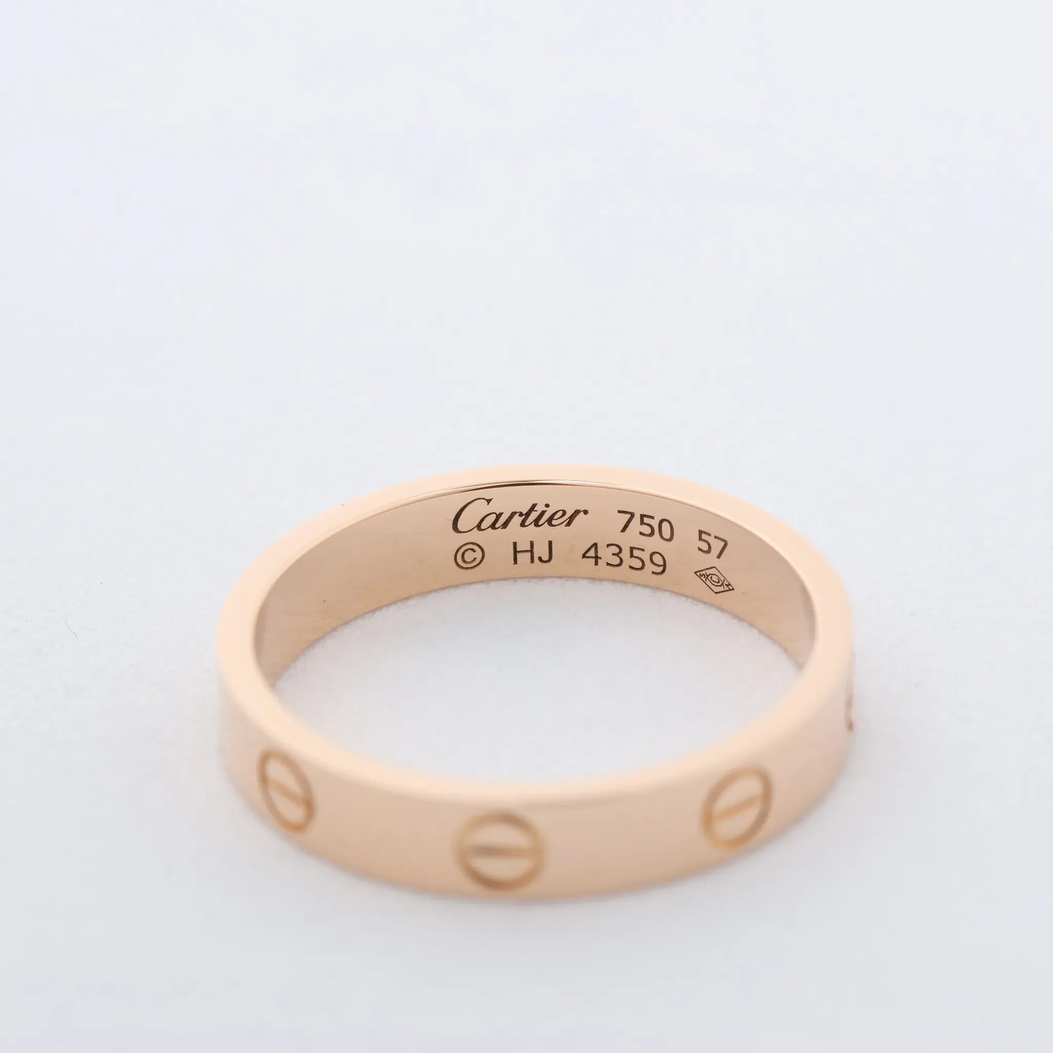 Elevate your style with the Cartier Mini Love Ring 750 in pink gold. Model HJ4359 weighs 4.7g and features iconic screw motifs - an enduring symbol of timeless luxury and commitment.