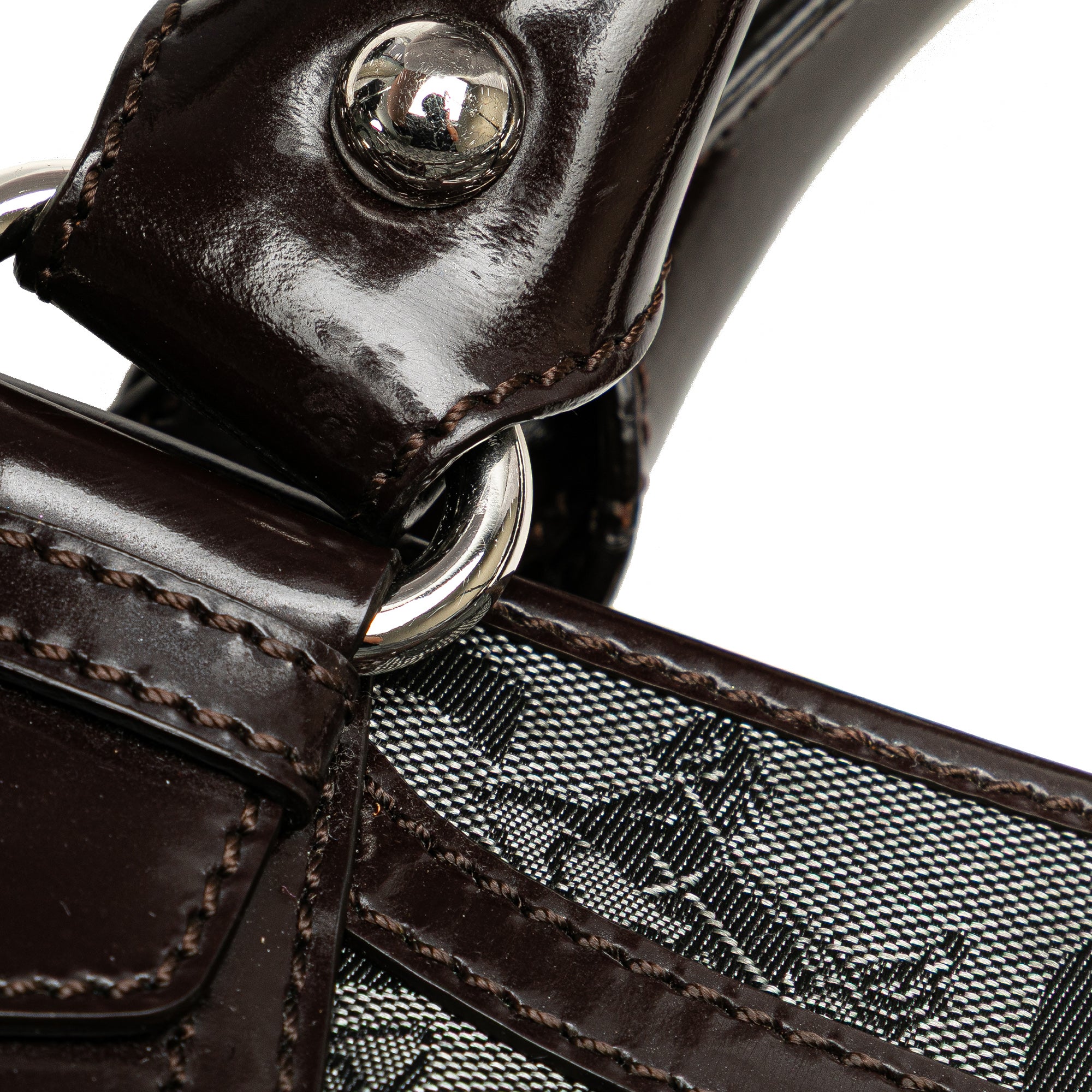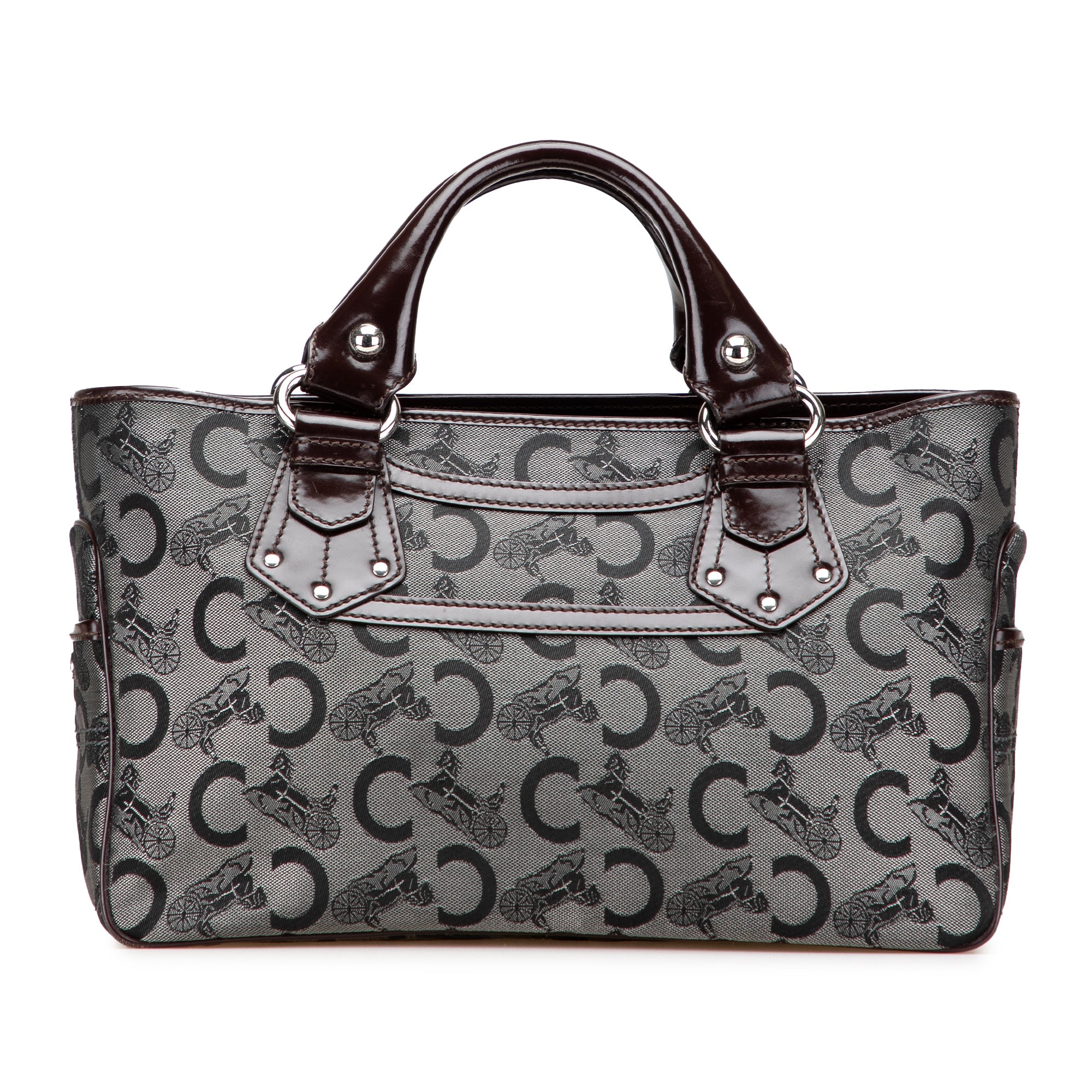 The Boogie features a canvas body with leather trim, rolled leather handles, exterior slip pockets, a top zip closure, and an interior zip compartment. Retail Price: 1000.00