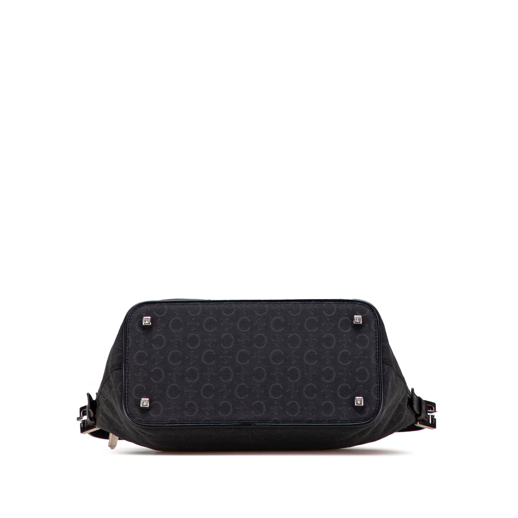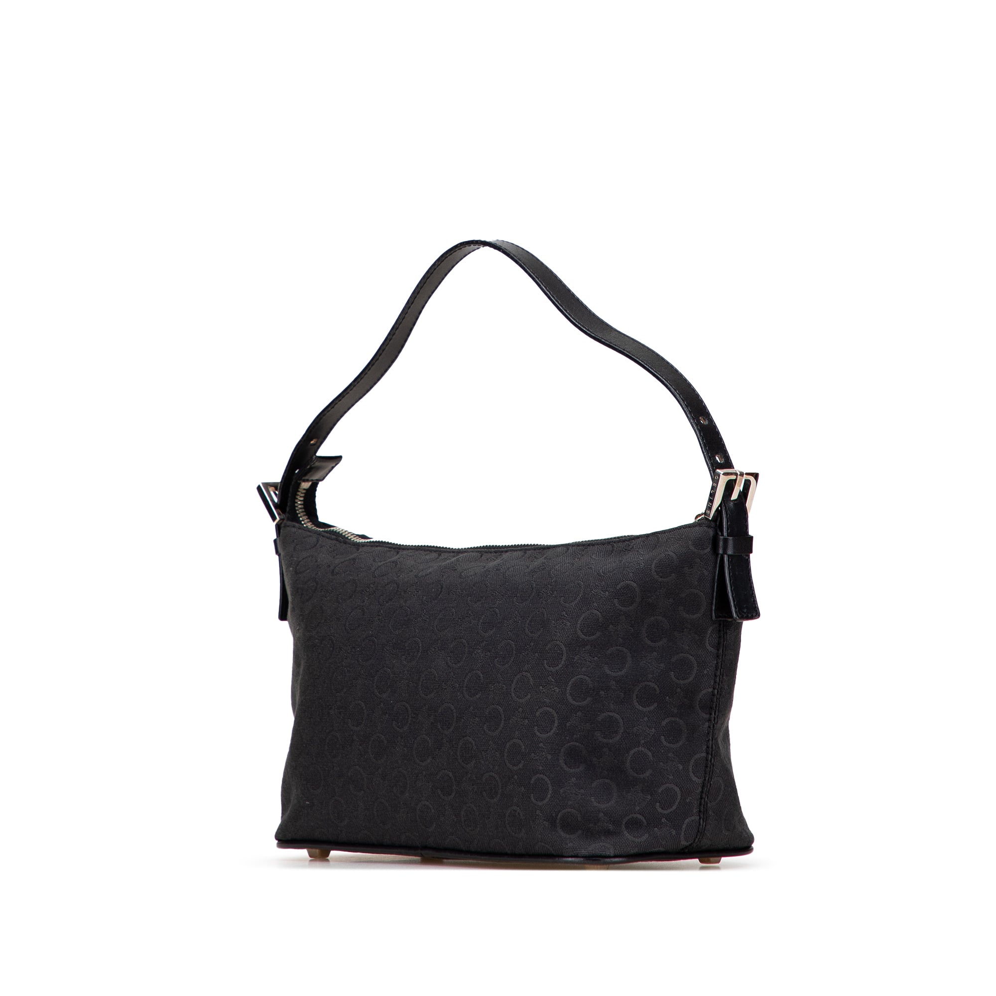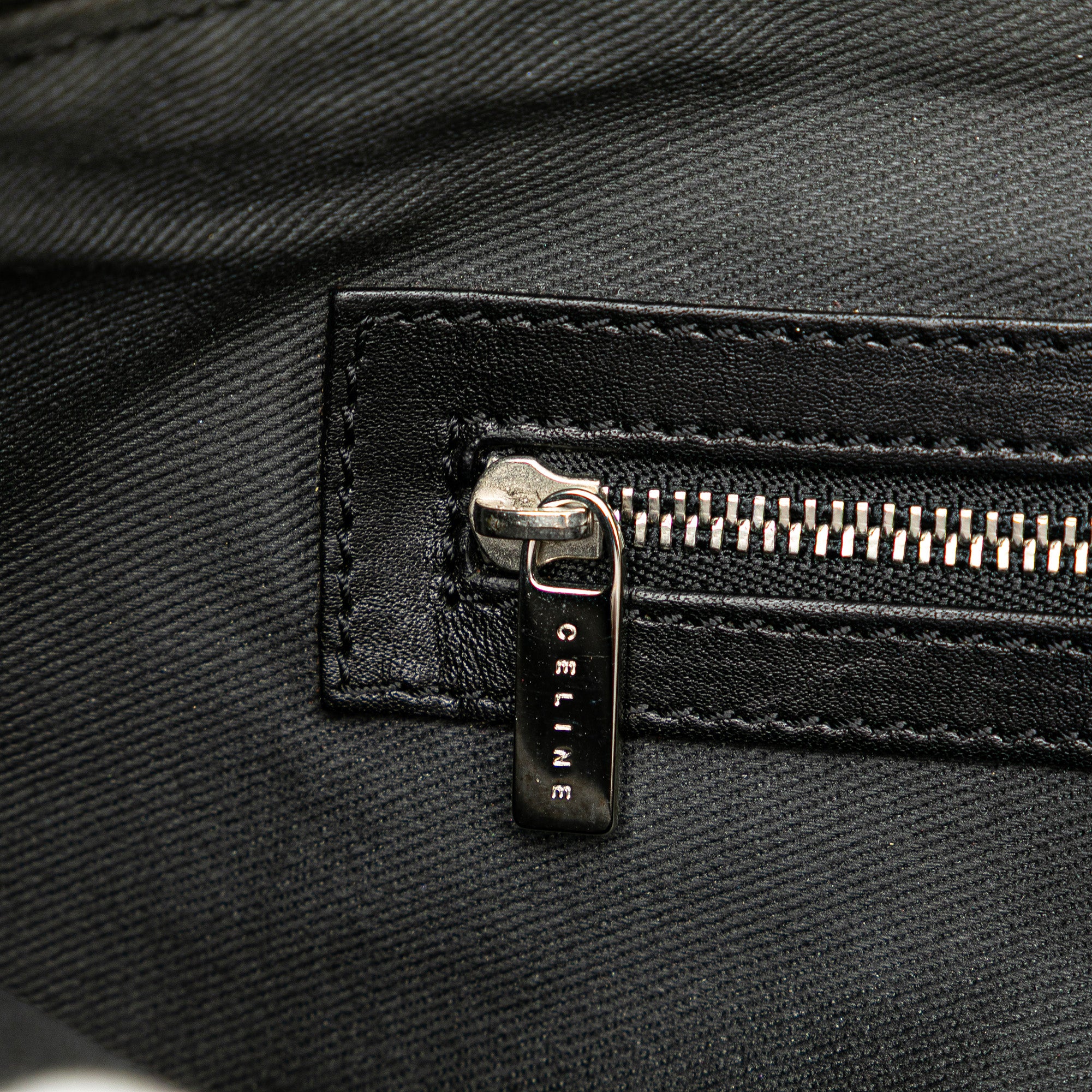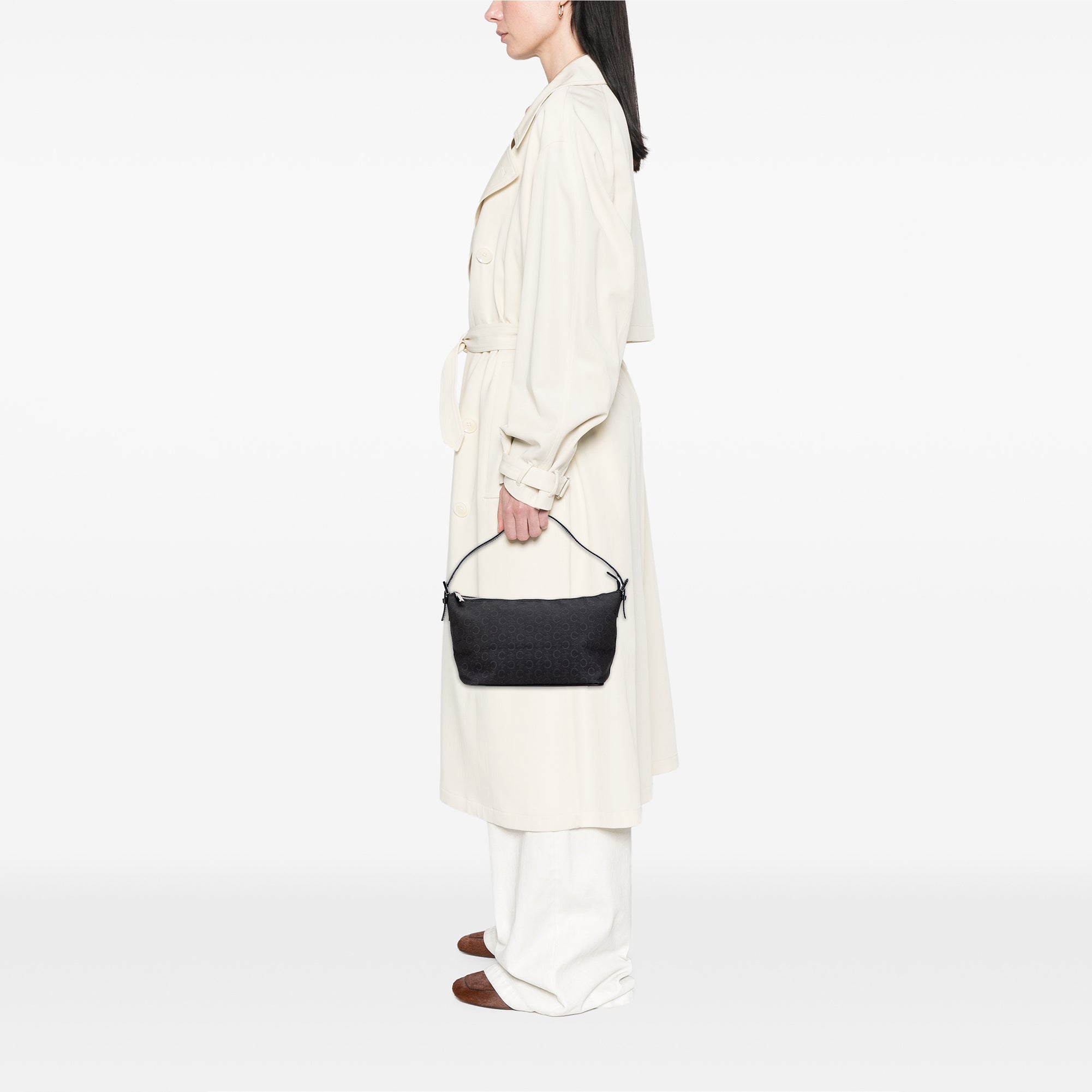 This shoulder bag features a canvas body, an adjustable flat leather strap, a top zip closure, and an interior slip pocket. Retail Price: 475.00