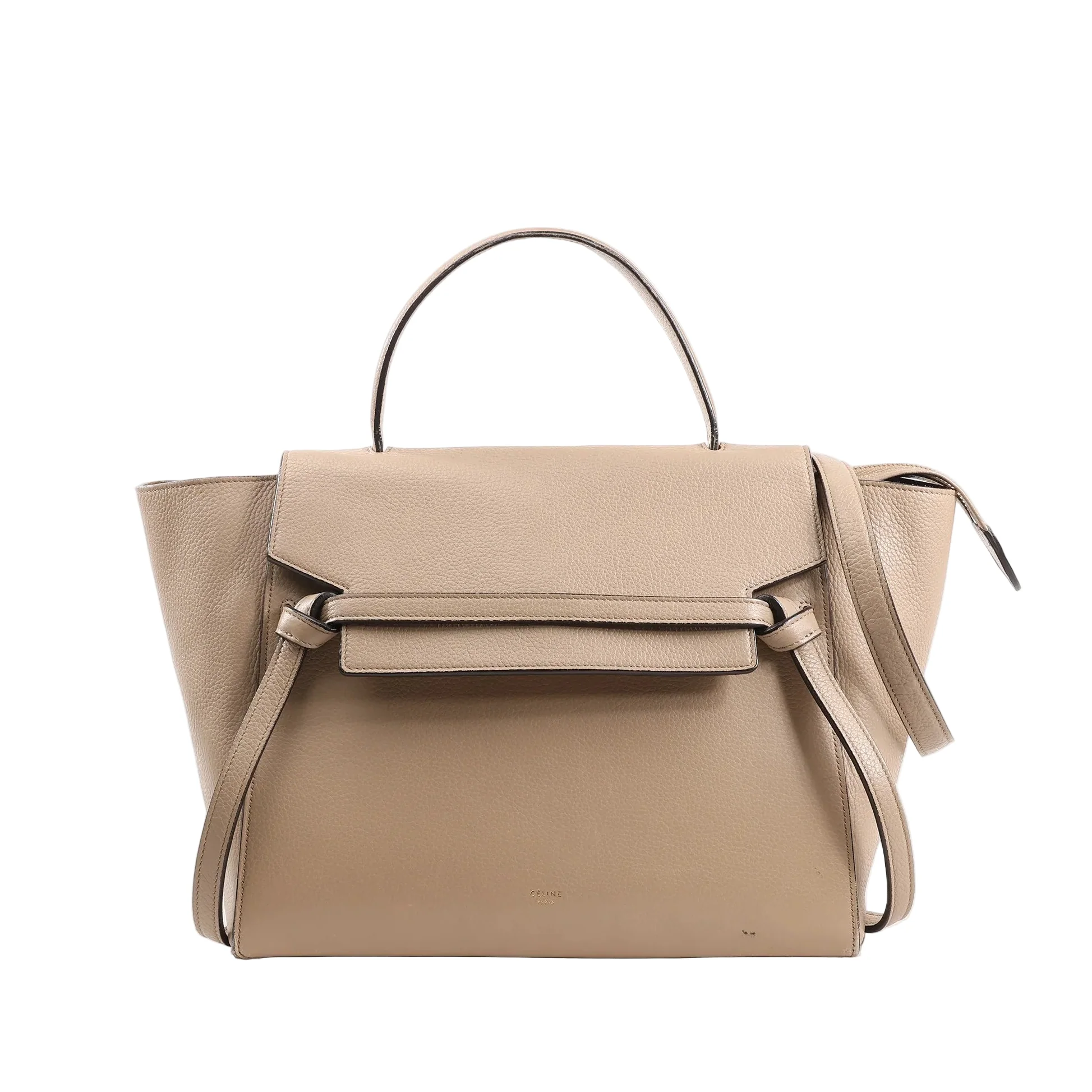 Brand: CELINEModel: BeltSize: MiniWidth: 27 cmHeight: 20 cm Exterior Condition: ExcellentInterior Condition: ExcellentCondition Details: Exterior leather is beautiful and in excellent condition, except some small stains and rubbings at the bottom edges. The handle and shoulder strap is clean and firm in very good condition. The hardware remains bright and shiny, but has light surface scratches. The interior lining remains good condition. The width at the top is 40 cm.Colour: BeigeInterior Colour: BeigeHardware Colour: GoldMaterial: LeatherComes With: Shoulder strap, dustbag