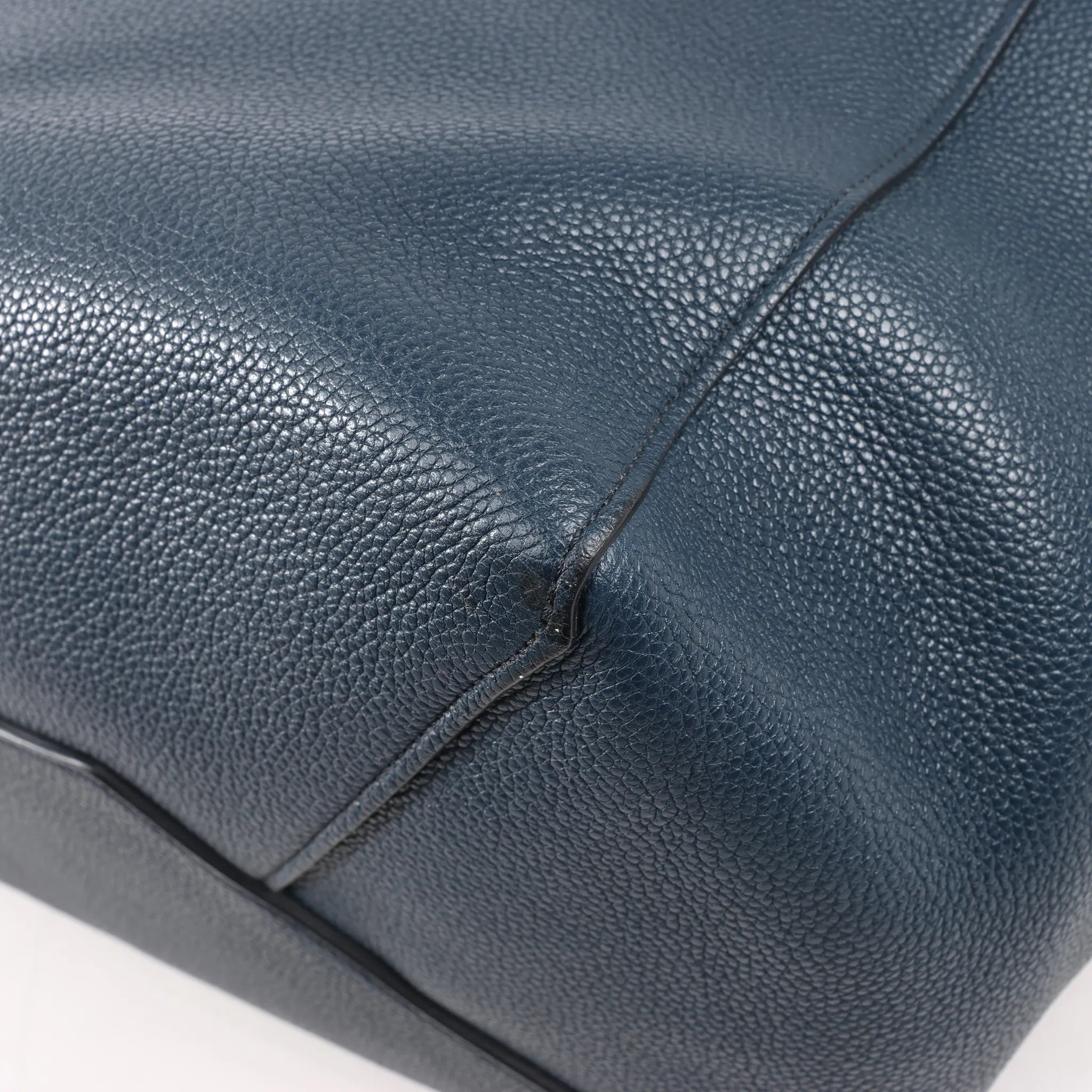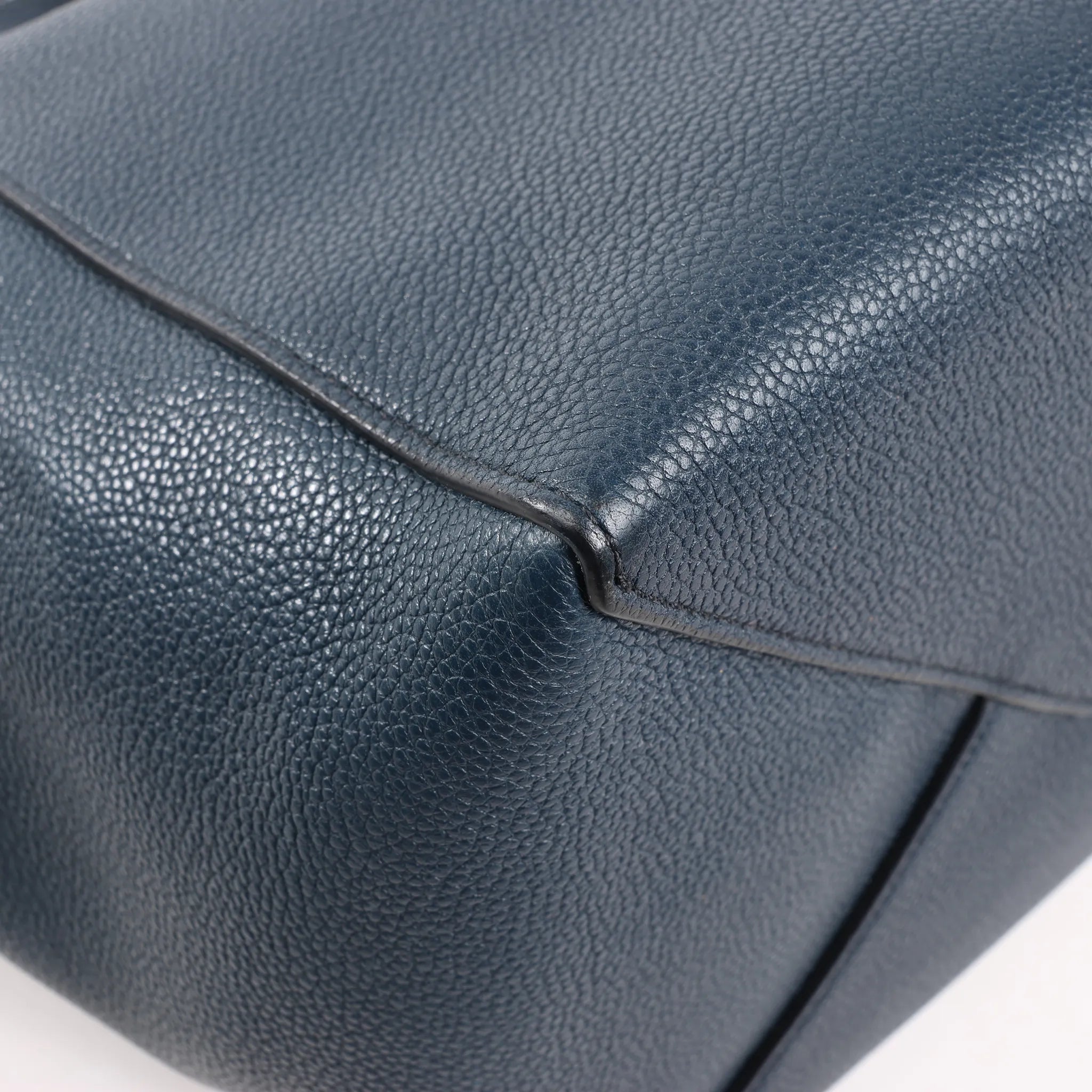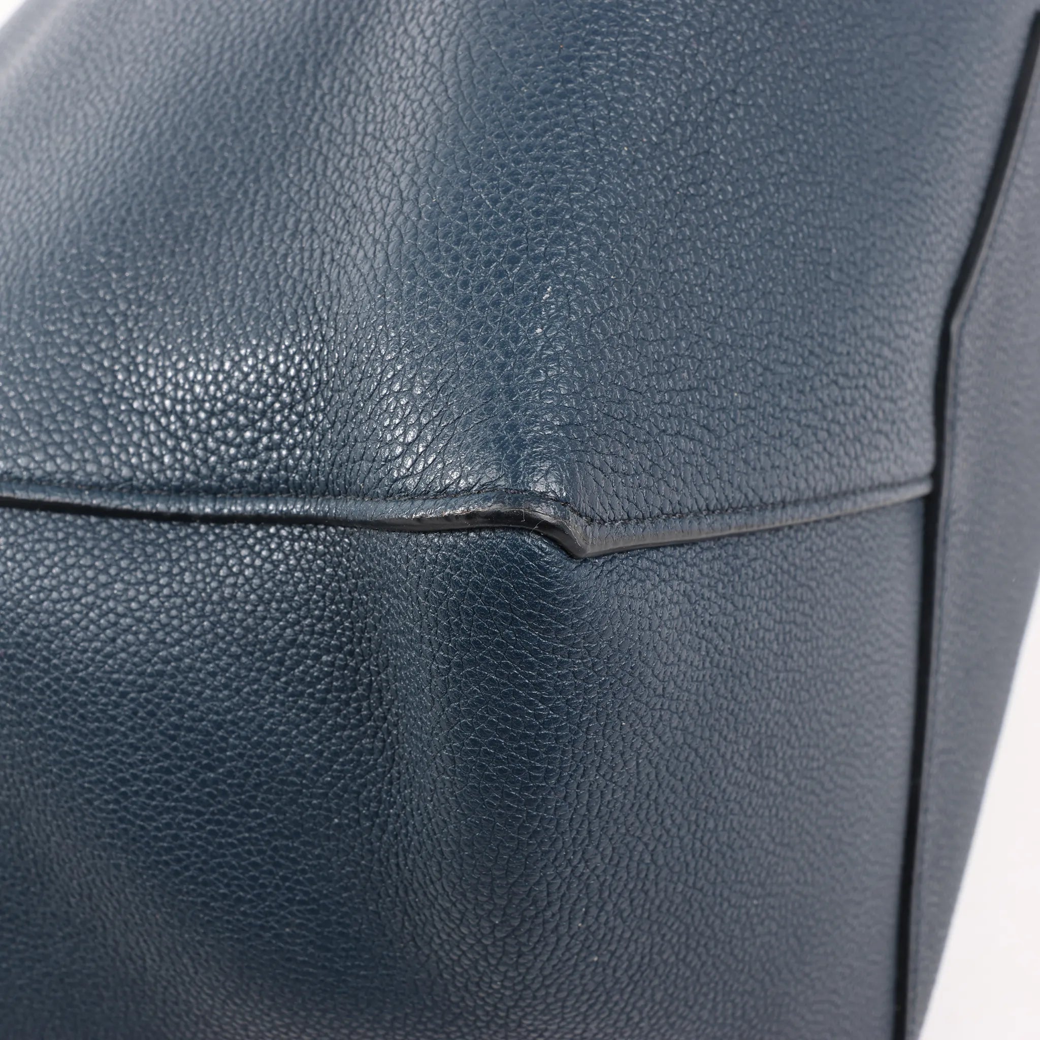 The Celine Cabas Phantom Small Shoulder Bag in navy blue grained leather blends minimalist design with everyday utility. Featuring a spacious open-top silhouette with tie closure and slim shoulder straps, it's perfect for effortless chic on the go.