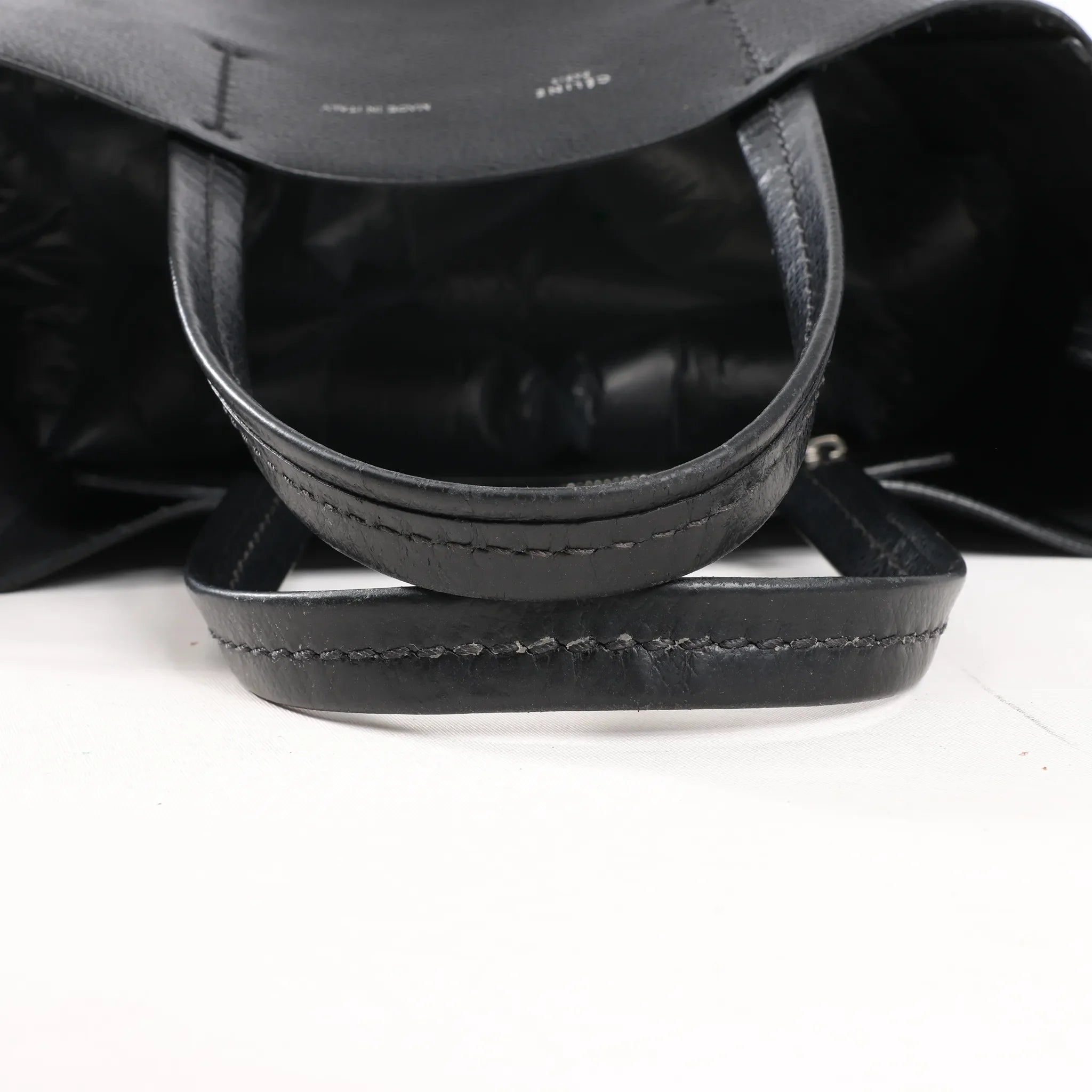 Brand: CELINEModel: -Size: SmallWidth: 20 cmHeight: 27 cmExterior Condition: ExcellentInterior Condition: ExcellentCondition Details: The exterior leather remains clean and beautiful in excellent condition with rubbings at the bottom corners. The leather handles are clean and in very good condition. The interior remains in great condition with light signs of usage as rubbings and dust. Colour: BlackInterior Colour: BlackHardware Colour: SilverMaterial: LeatherComes With: Shoulder strap