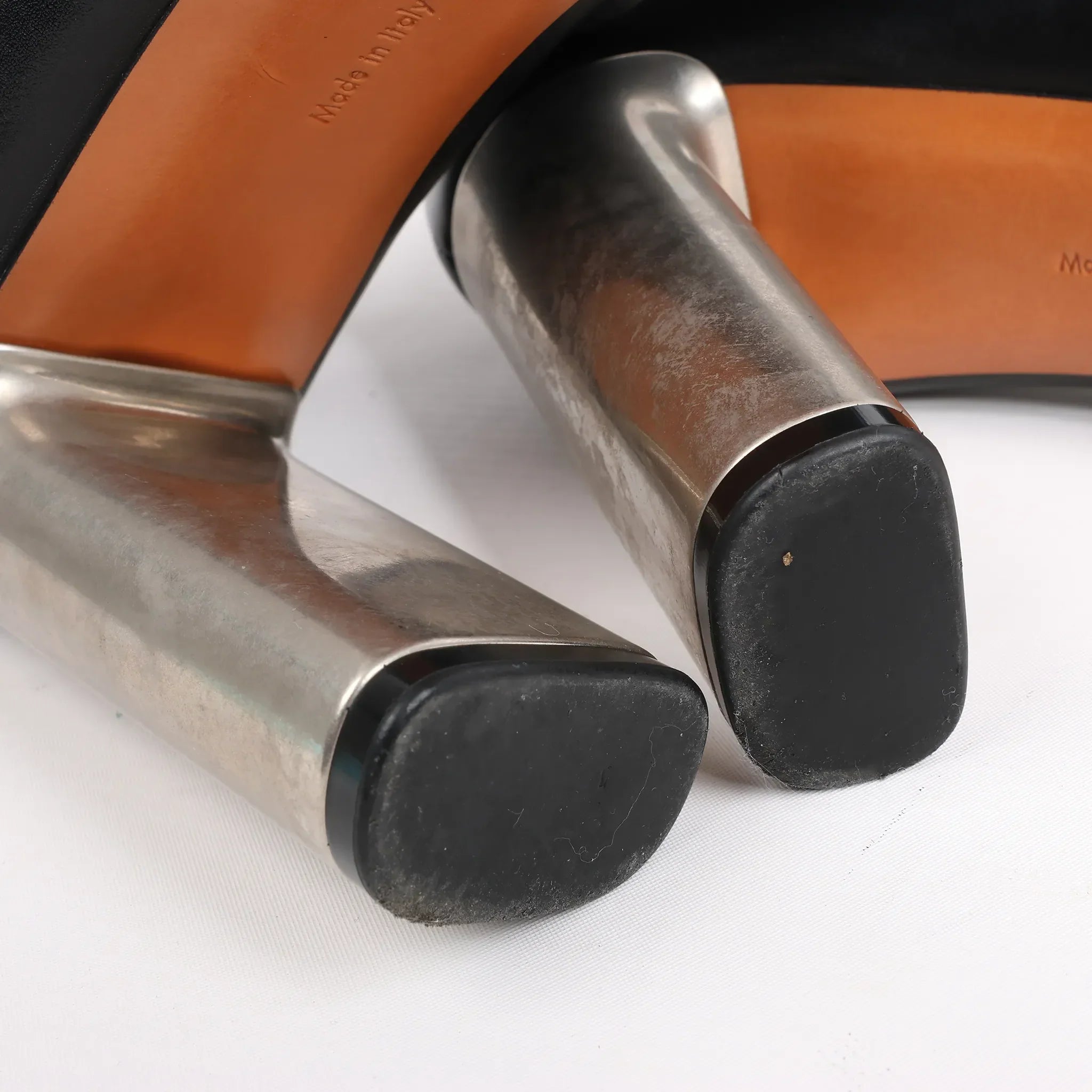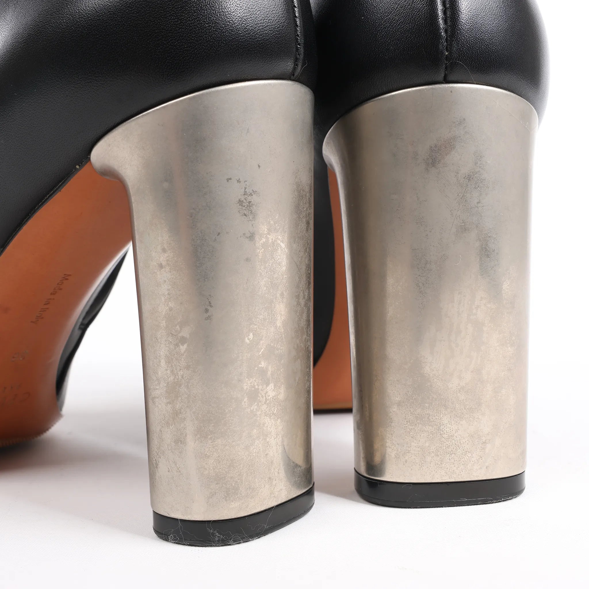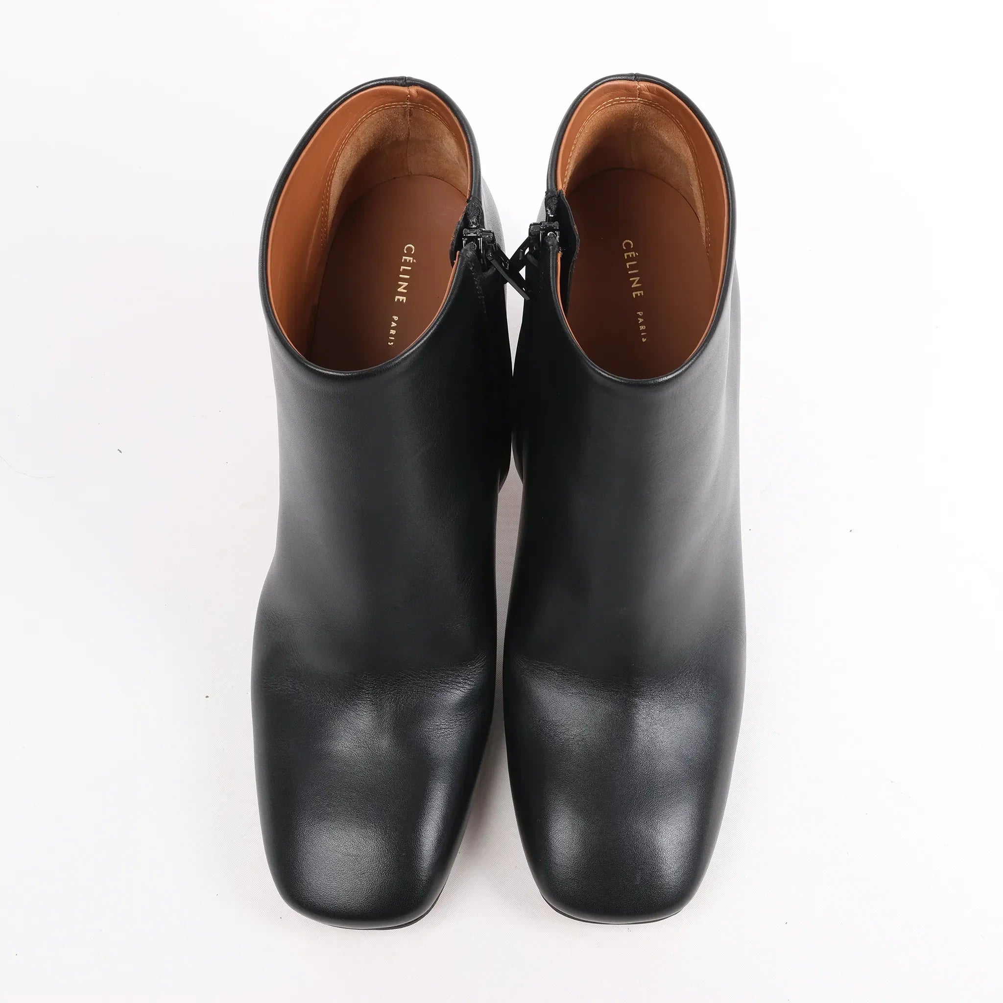 Celine Celine Phoebe Leather x Metal Heel Ankle Boots in Black, Size 38 EU