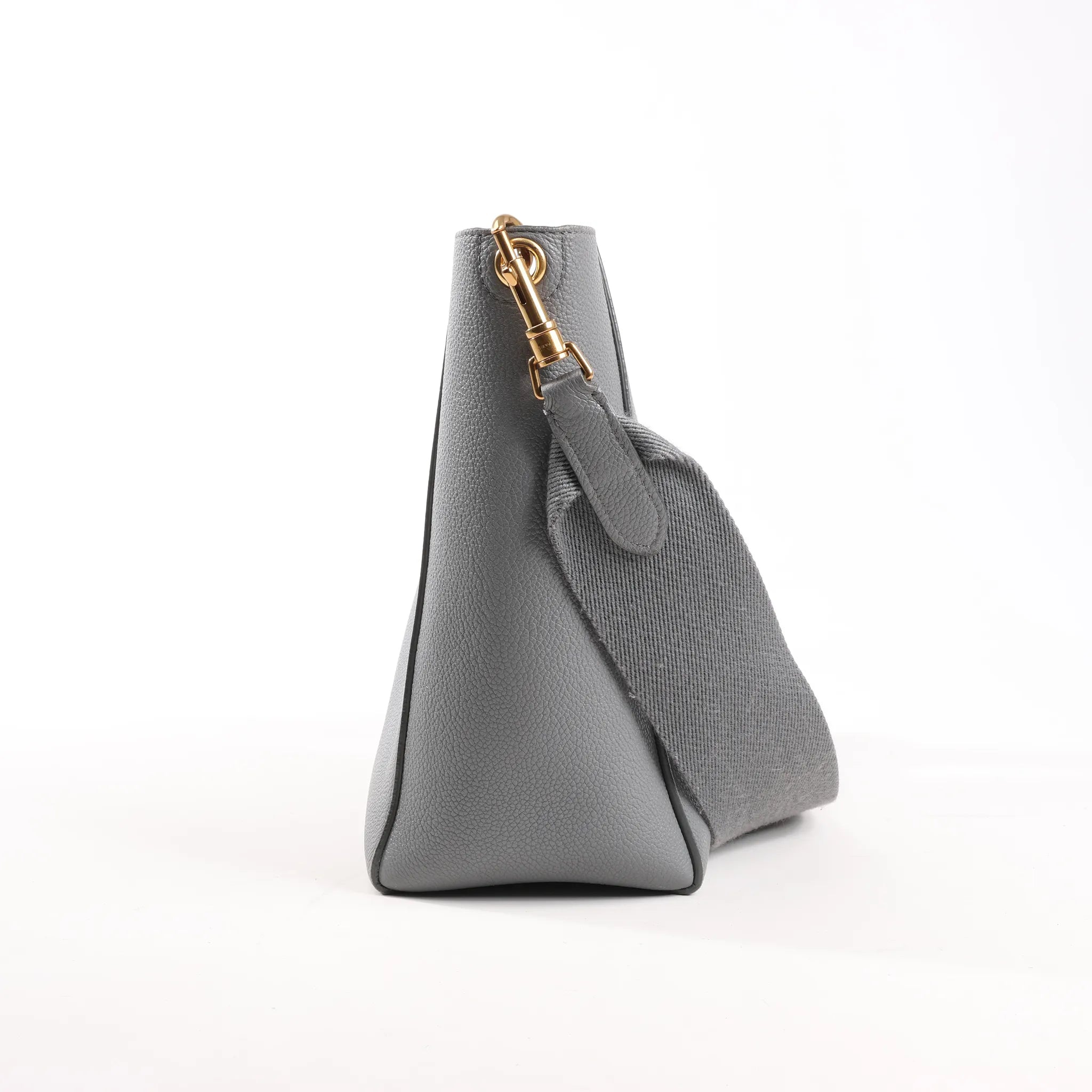 Brand: CELINEModel: Seau SangleSize: MiniWidth: 17.5 cmHeight: 25 cmExterior Condition: ExcellentInterior Condition: ExcellentCondition Details: The exterior leather is in excellent condition with rubbings at the bottom edges. The hardware is bright and shiny with some scratches. The shoulder straps remain clean and in good condition. The interior in good condition with usage rubbings.Colour: Gray Interior Colour: GrayHardware Colour: GoldMaterial: LeatherComes With: Shoulder strap