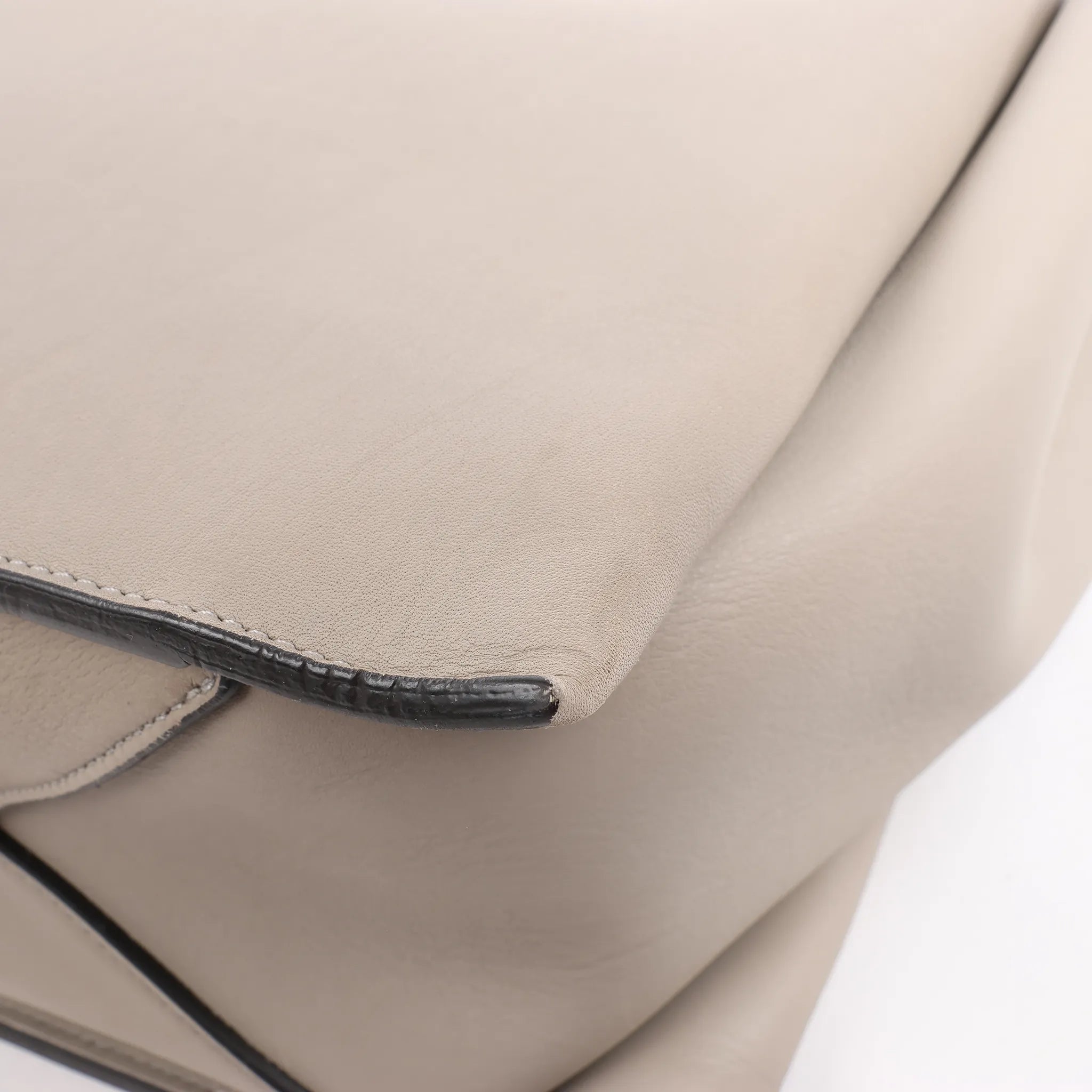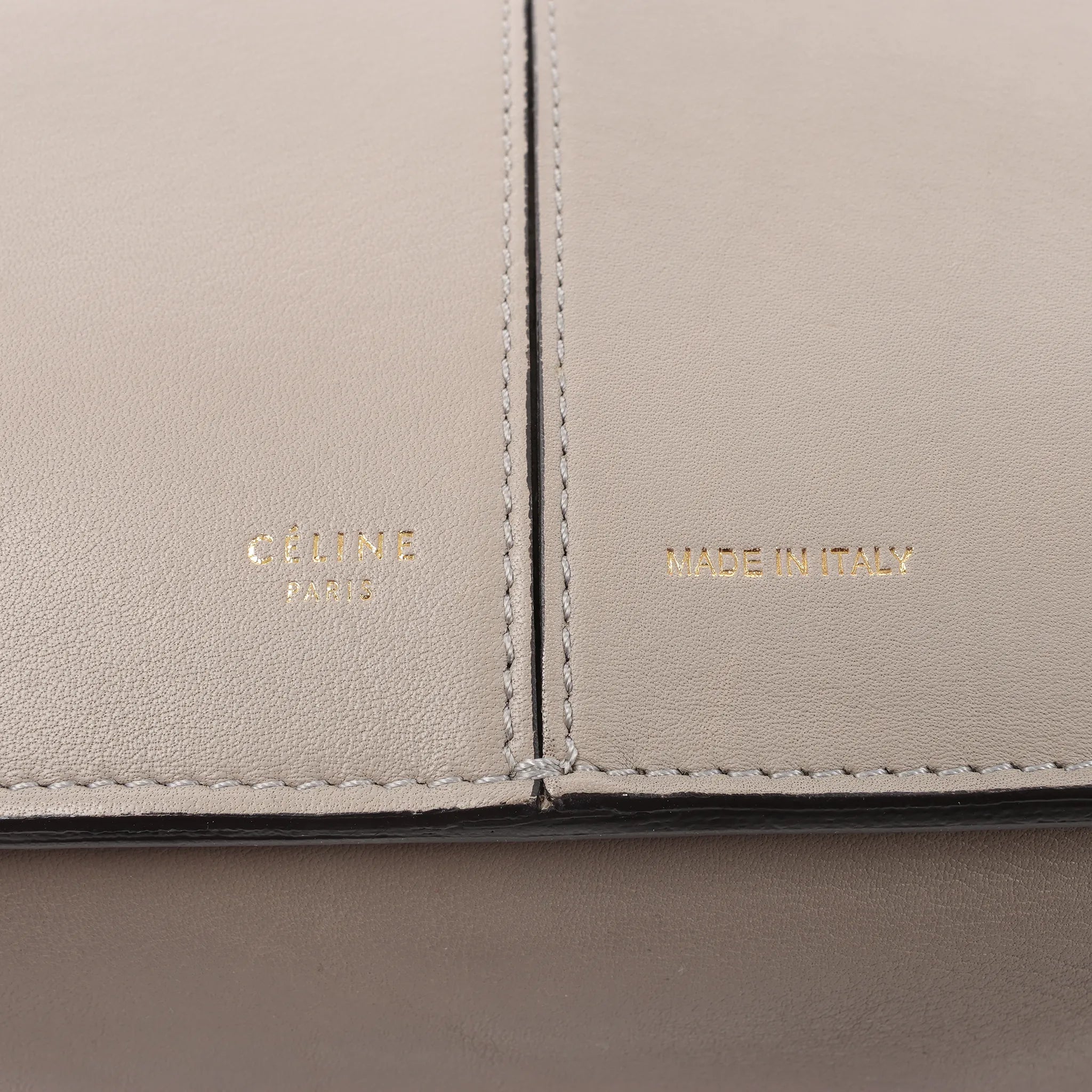 Brand: CELINE Model: Tri-FoldSize: -Width: 37 cmHeight: 25 cmExterior Condition: ExcellentInterior Condition: Very goodCondition Details: The exterior leather is clean and beautiful in good condition. The handles are clean and firm with light creases. The interior leather is in great condition, but has signs of wear as usage rubbings. Width at top 52 cmColour: Beige (Greige)Interior Colour: GrayHardware Colour: GoldMaterial: LeatherComes With: -