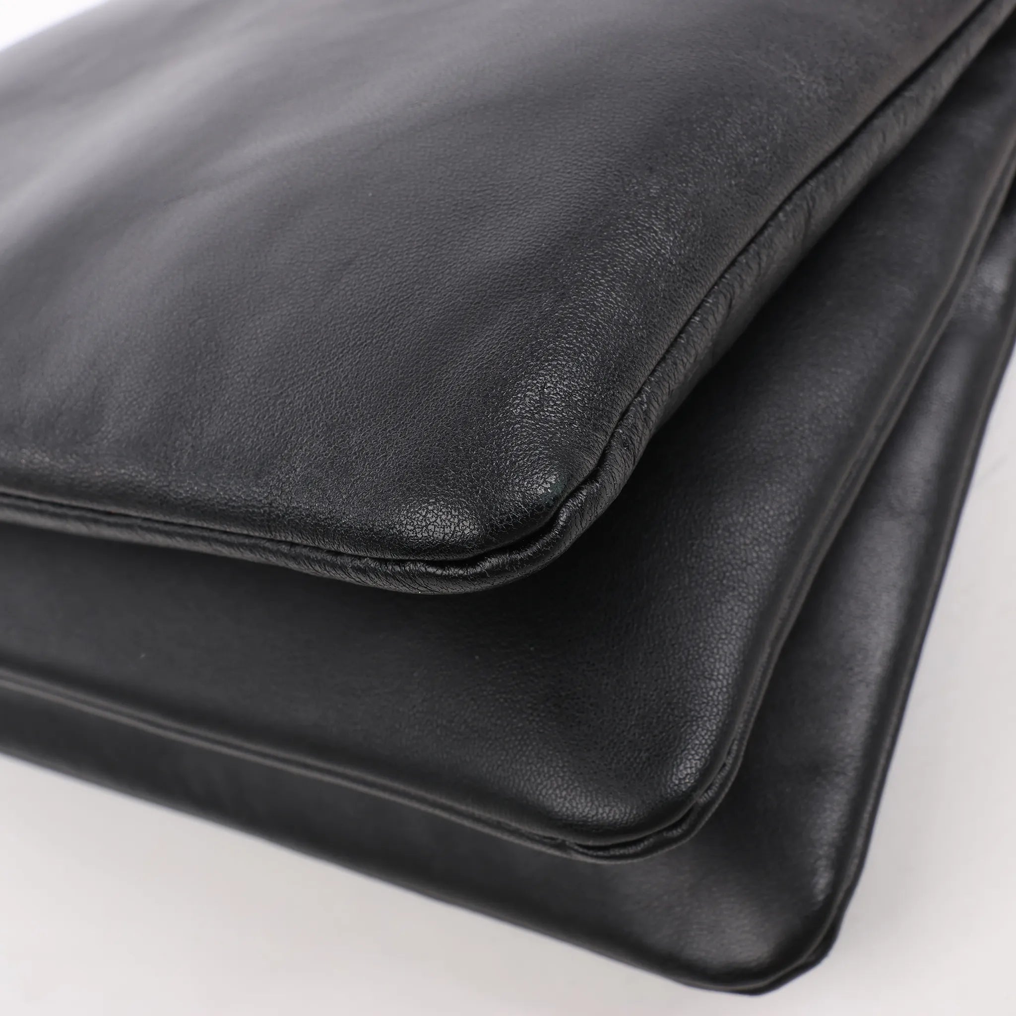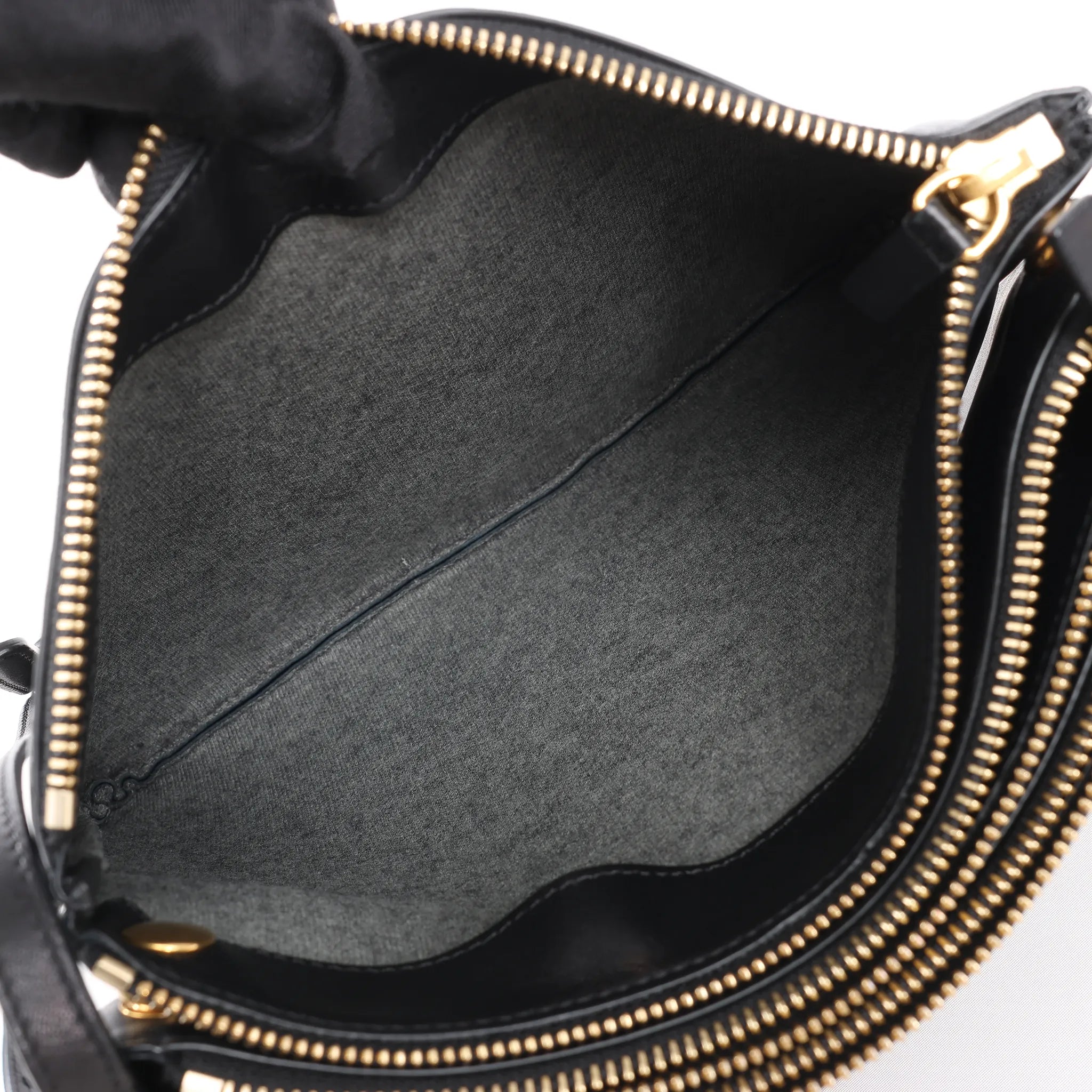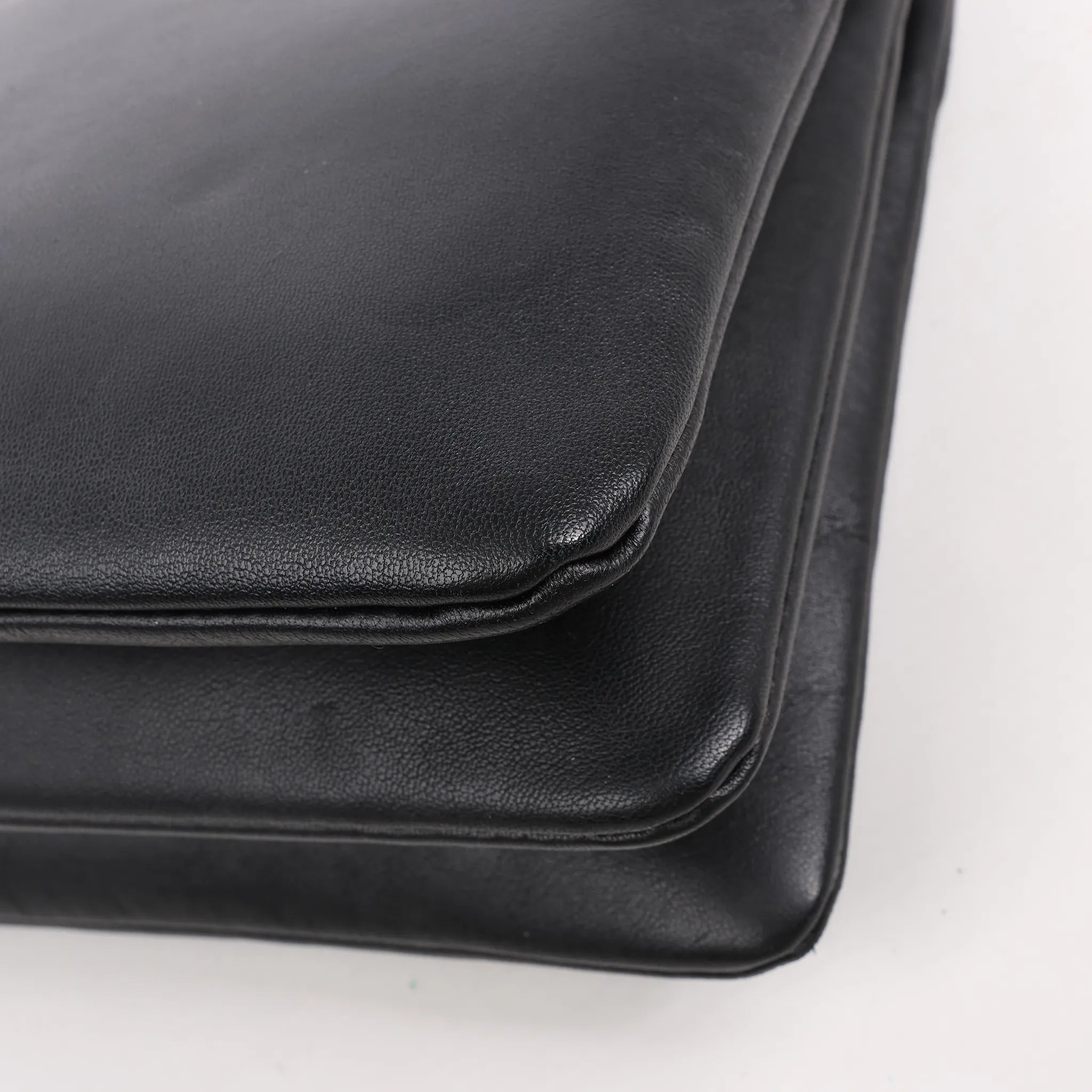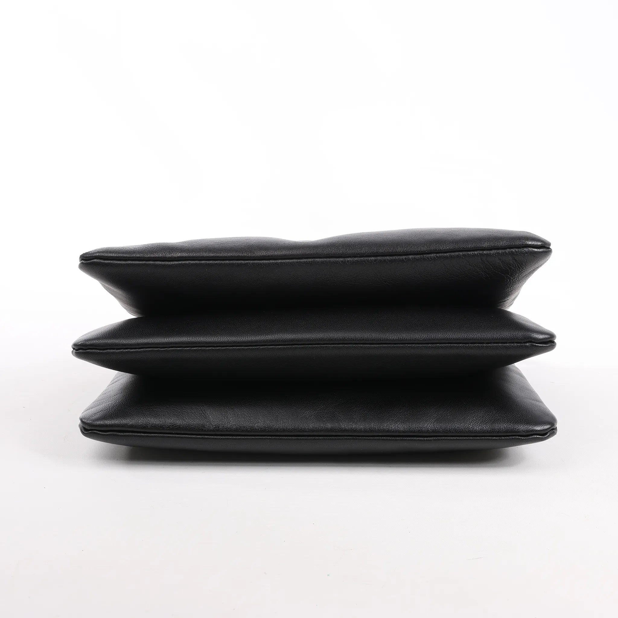 The Celine Trio Large Crossbody Bag in Black is the epitome of minimalist elegance. Crafted from smooth black leather, this iconic design features three zippered compartments and an adjustable shoulder strap—perfect for organized, hands-free sophistication.