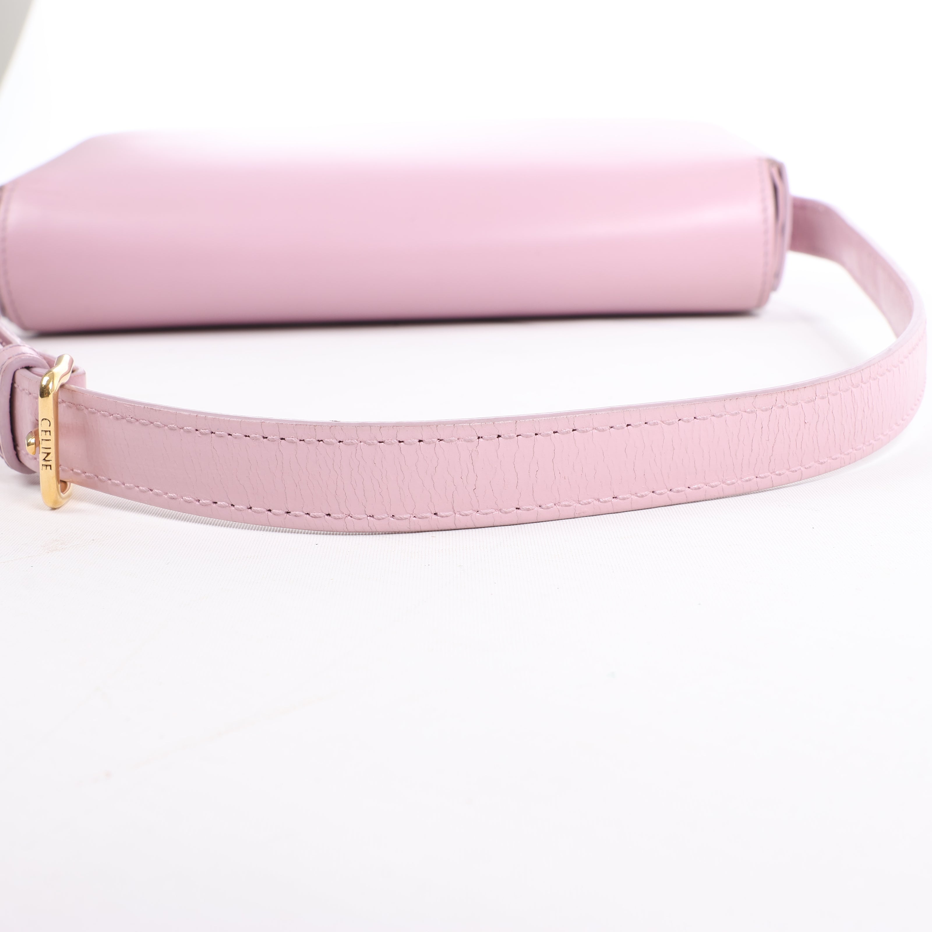 Brand: CelineModel: TriompheSize: SmallWidth: 19 cm Height: 10 cmExterior Condition: ExcellentInterior Condition: ExcellentCondition Details: The exterior leather is clean and in excellent condition with light signs of use. The goldtone hardware is still bright and crisp with hairline scratches. The shoulder strap is clean and in good condition. The interior lining is clean and in excellent condition. Colour: PinkInterior Colour: PinkHardware Colour: GoldMaterial: LeatherComes With: Entrupy certificate
