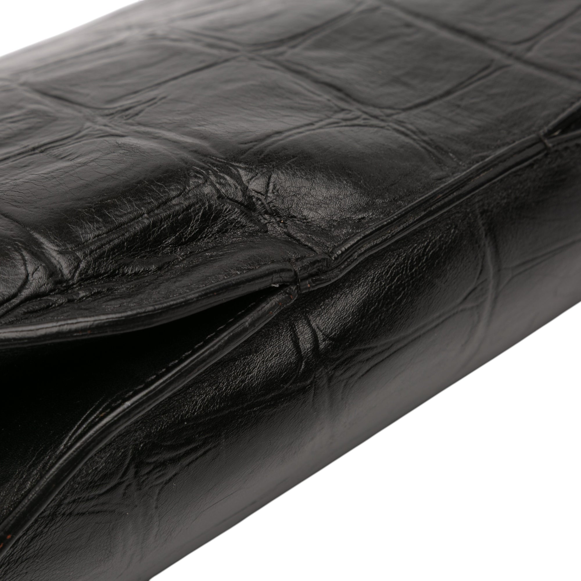 Celine Croc Embossed Leather Curved Shoulder Bag