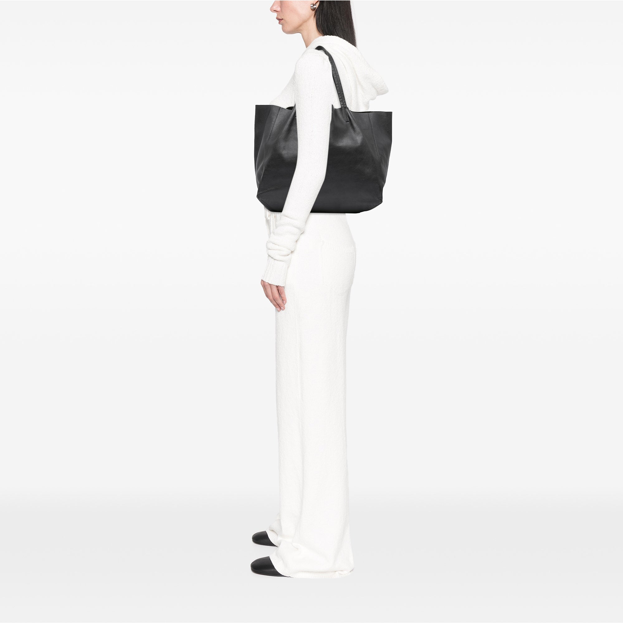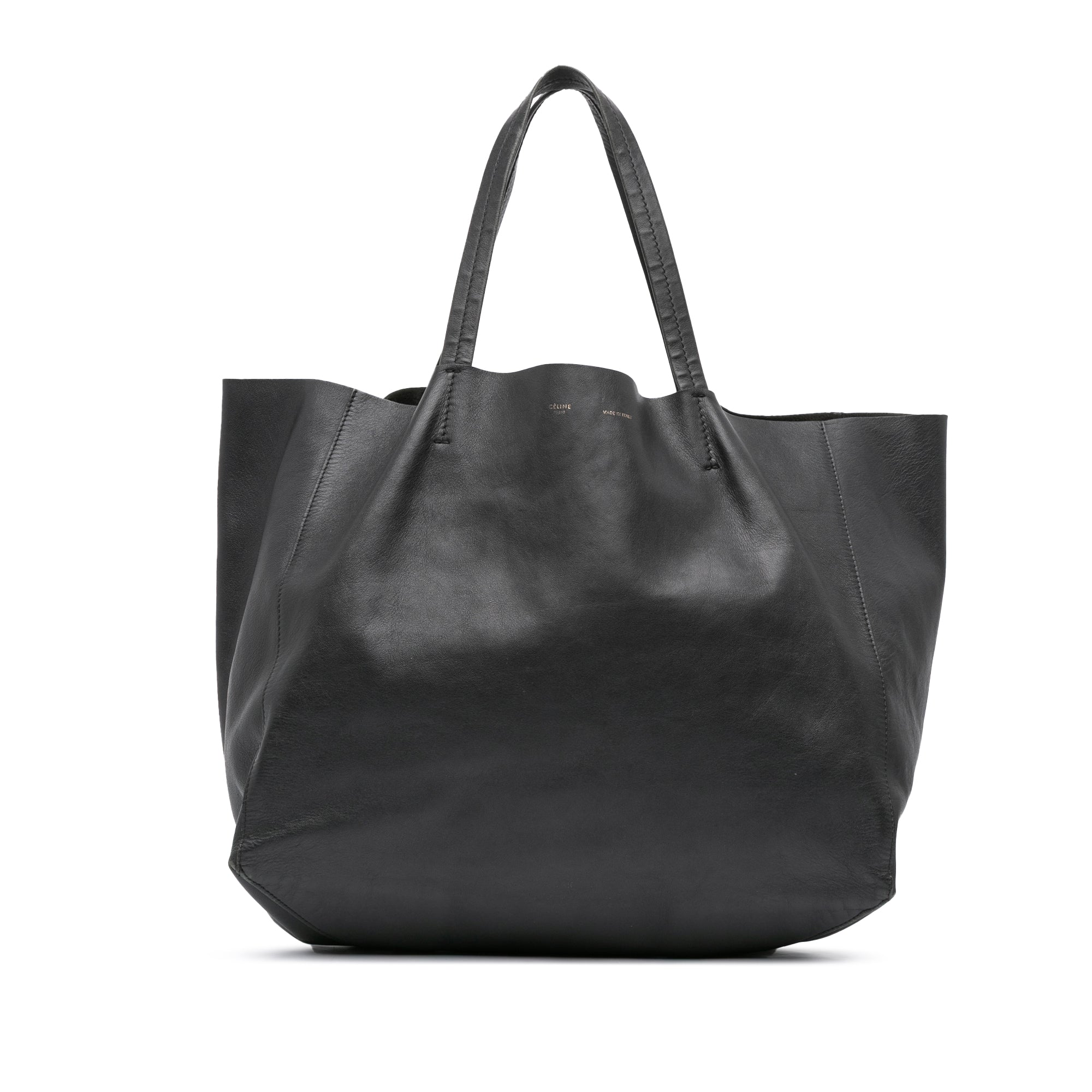 The Cabas tote bag features a leather body, flat leather top handles, an open top, and interior zip pocket. Retail Price: 1300.00