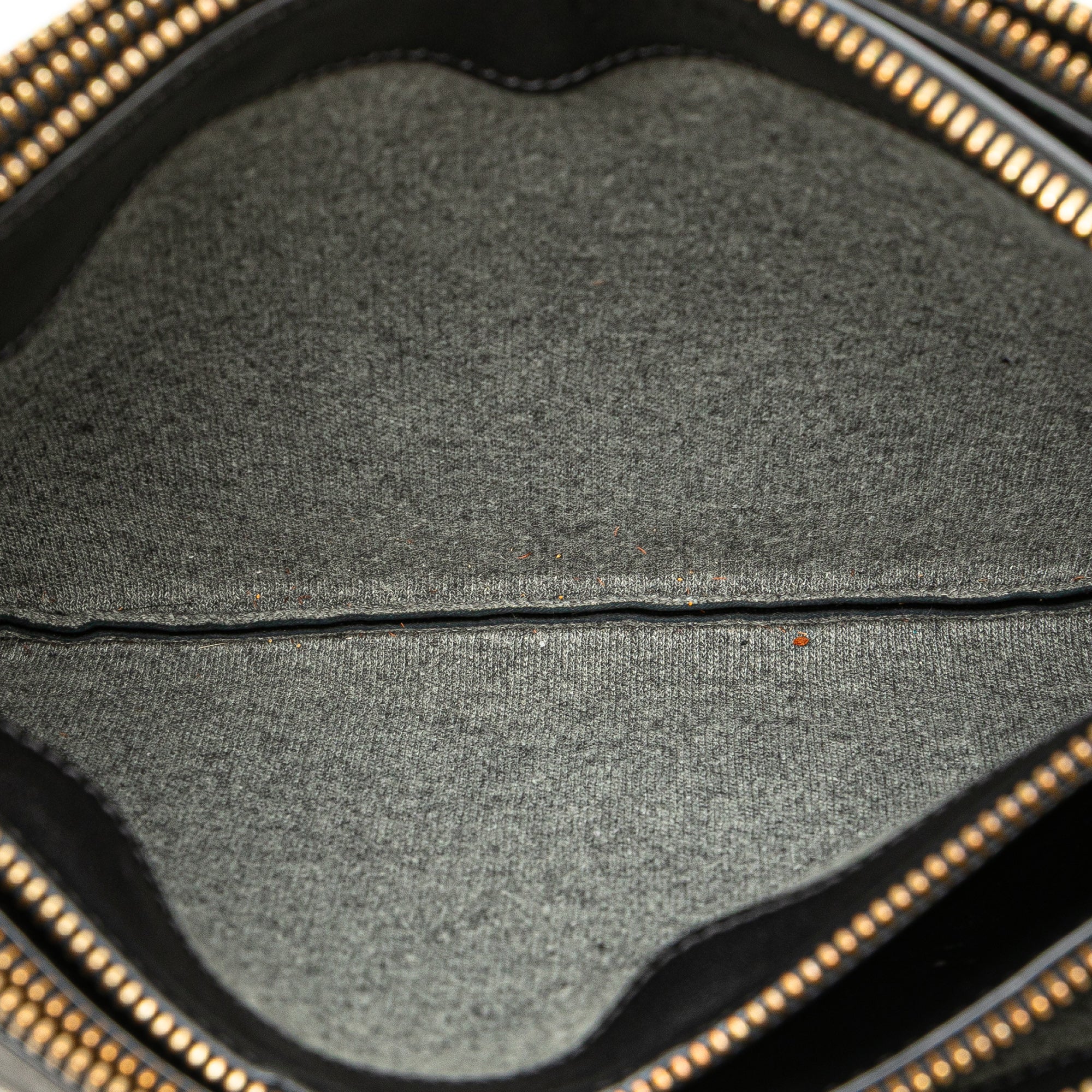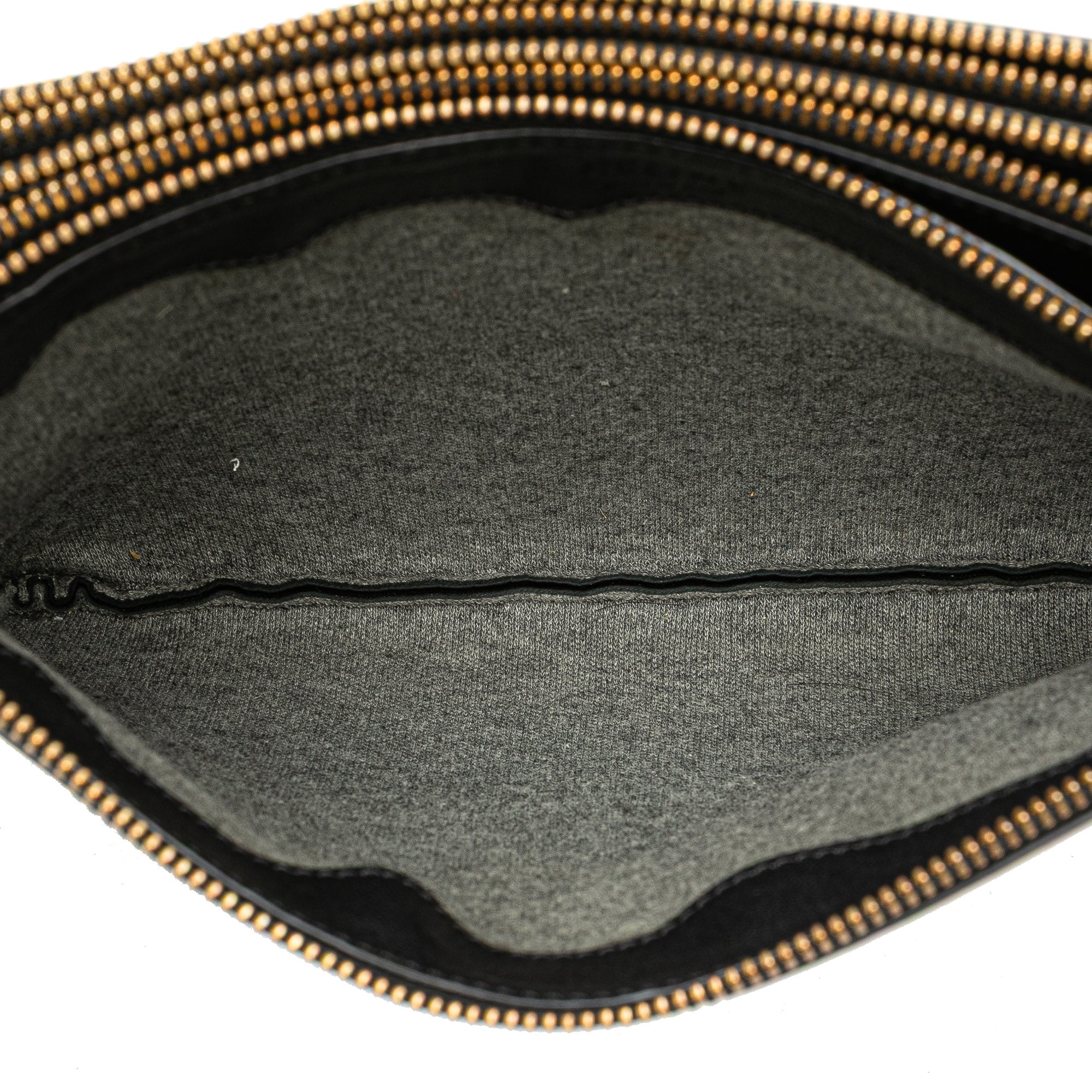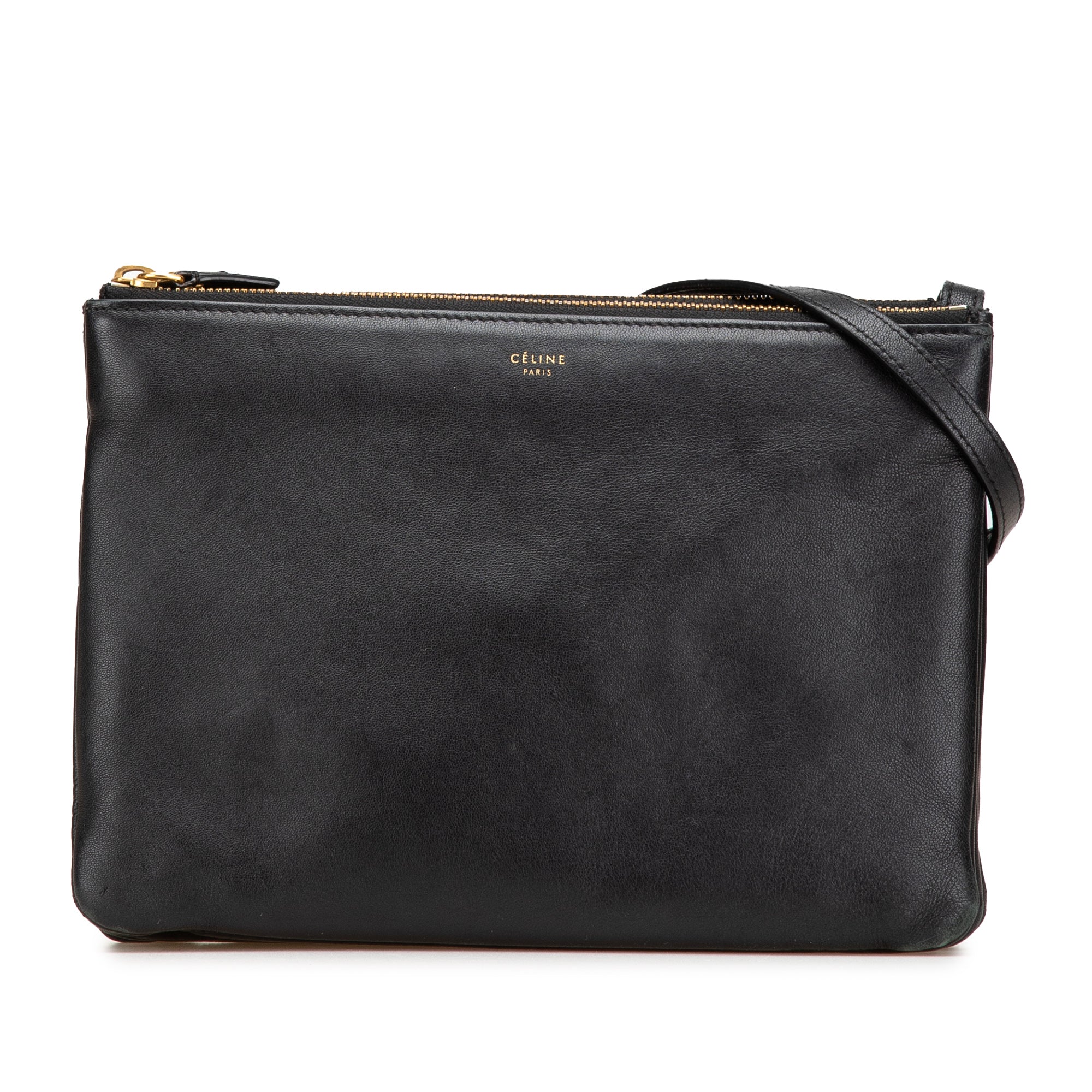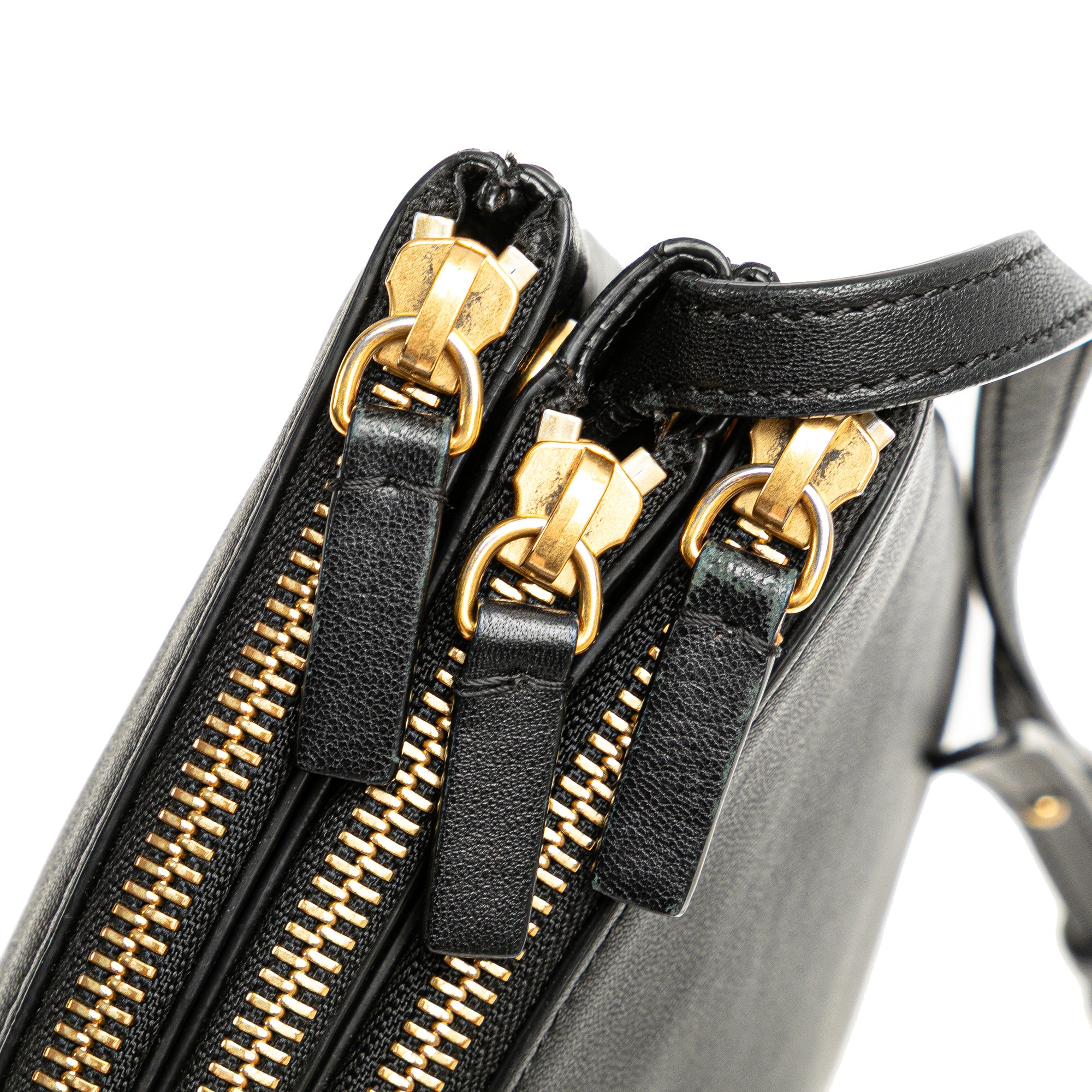 The Trio features a lambskin leather body, a flat leather shoulder strap, and triple top zip closures. Retail Price: 1380.00