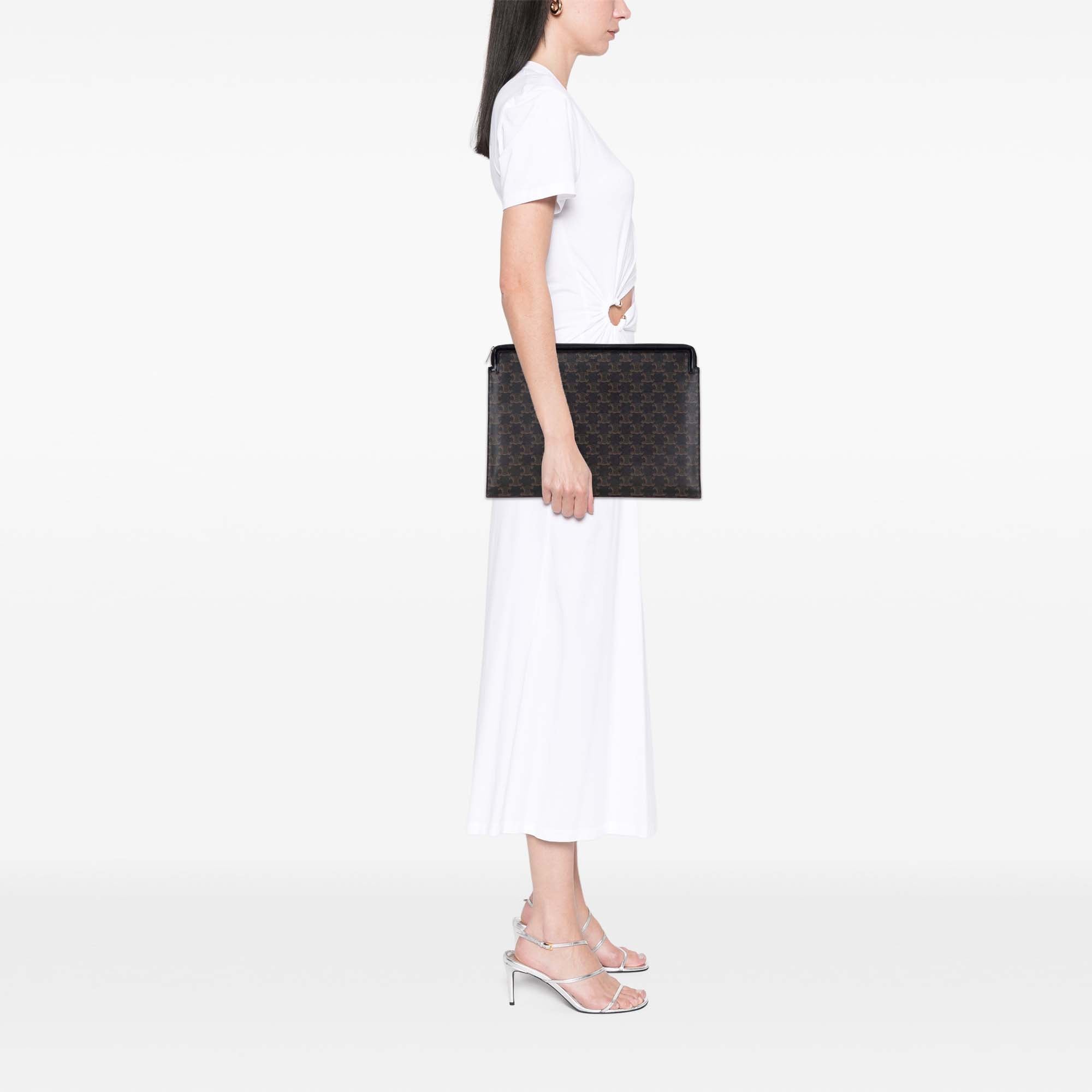 Celine Large Triomphe Coated Canvas Clutch
