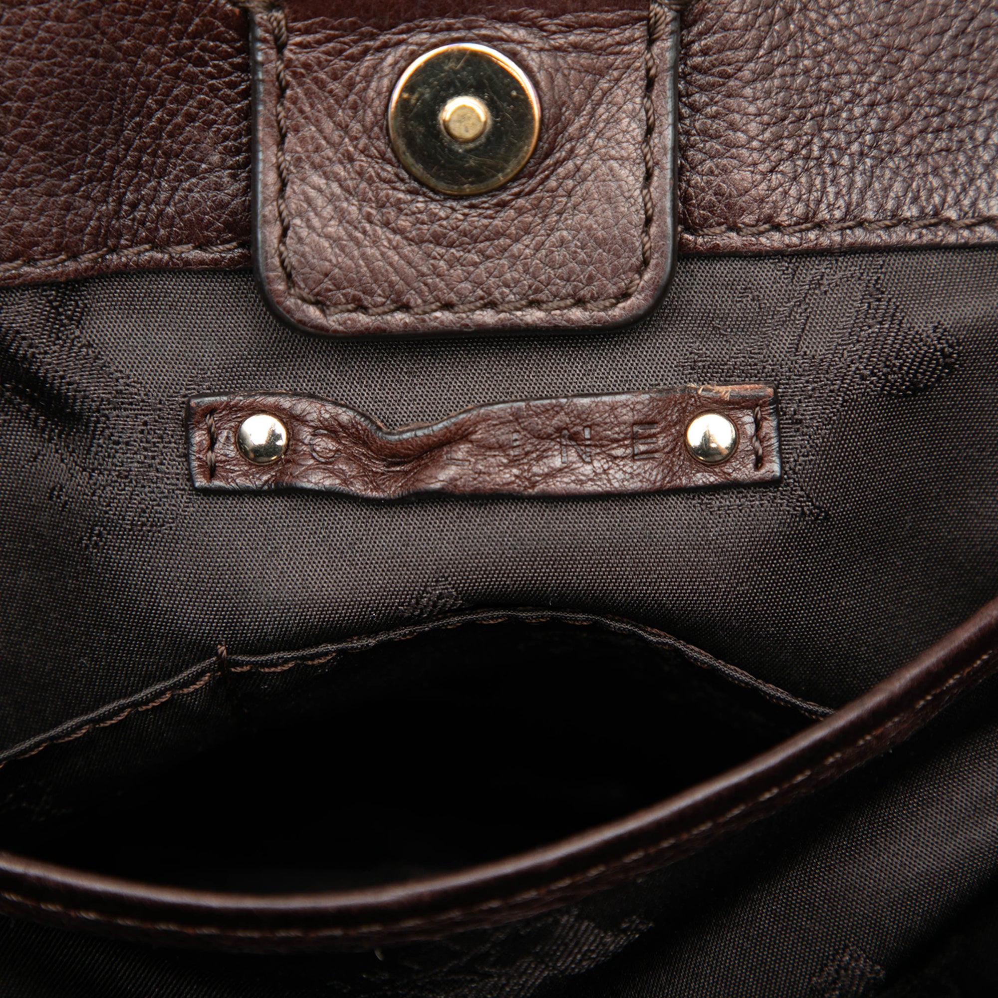 The Orlov features a leather body, flat leather handles, a detachable flat strap, an open top with magnetic snap closure, and interior zip and slip pockets. Retail Price: 750.00