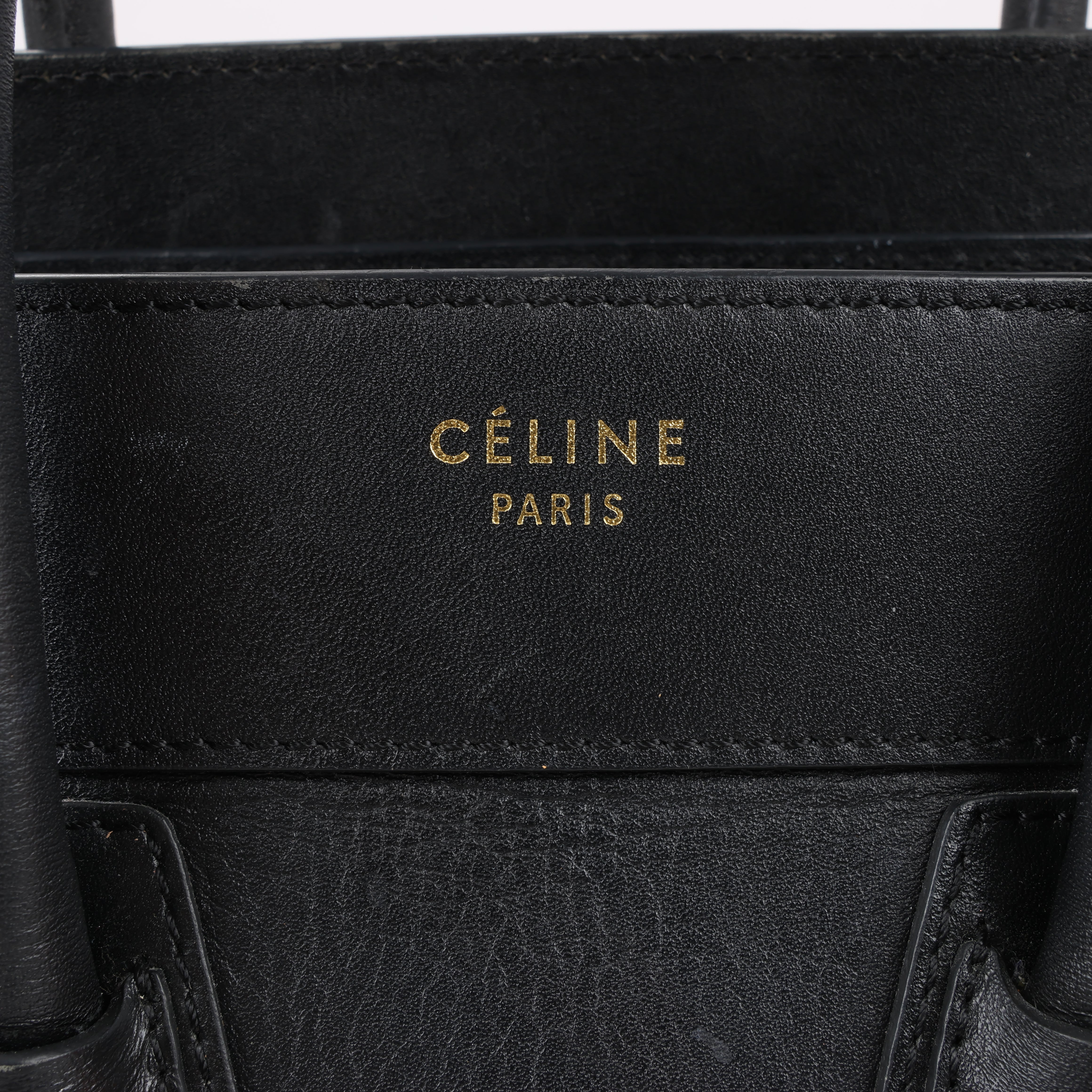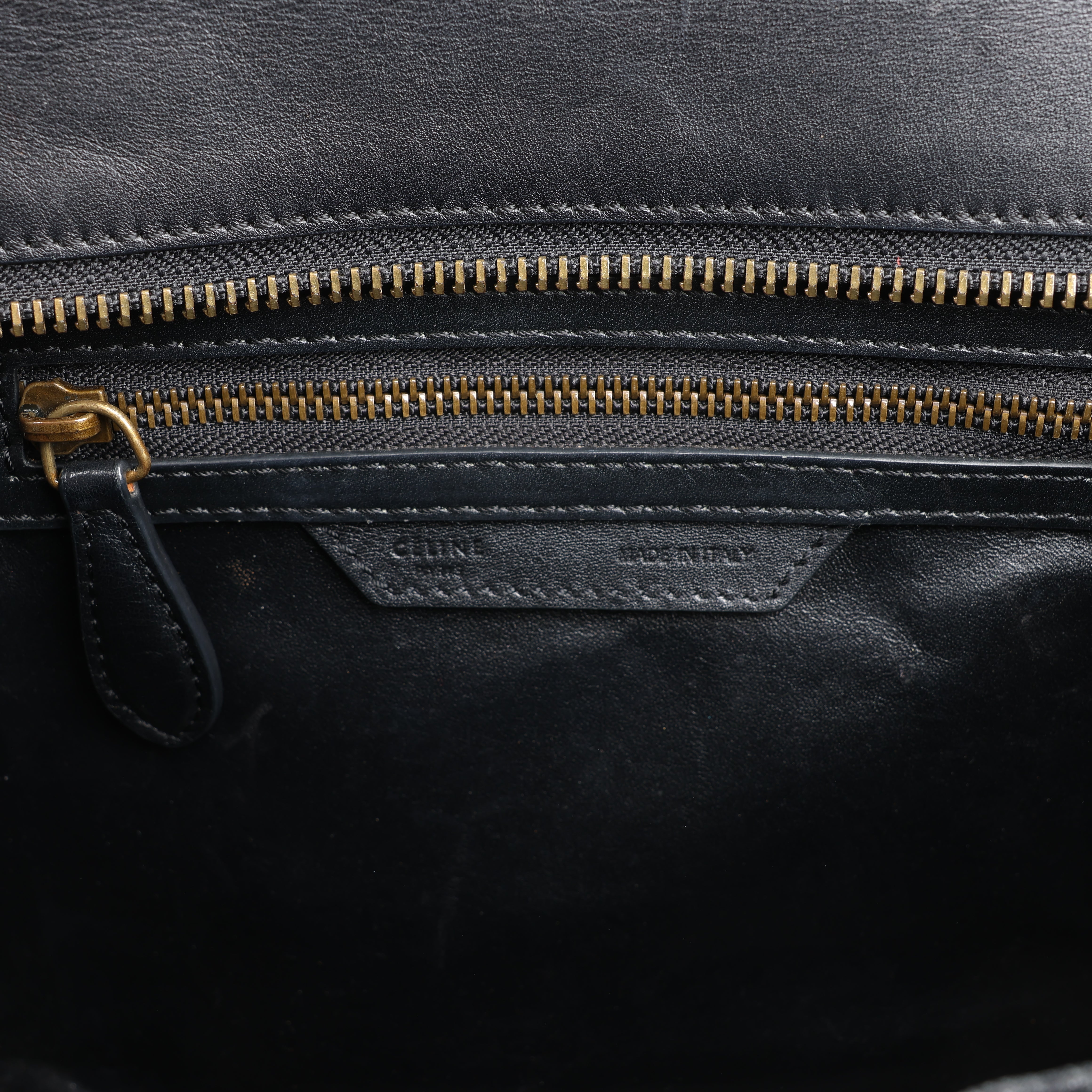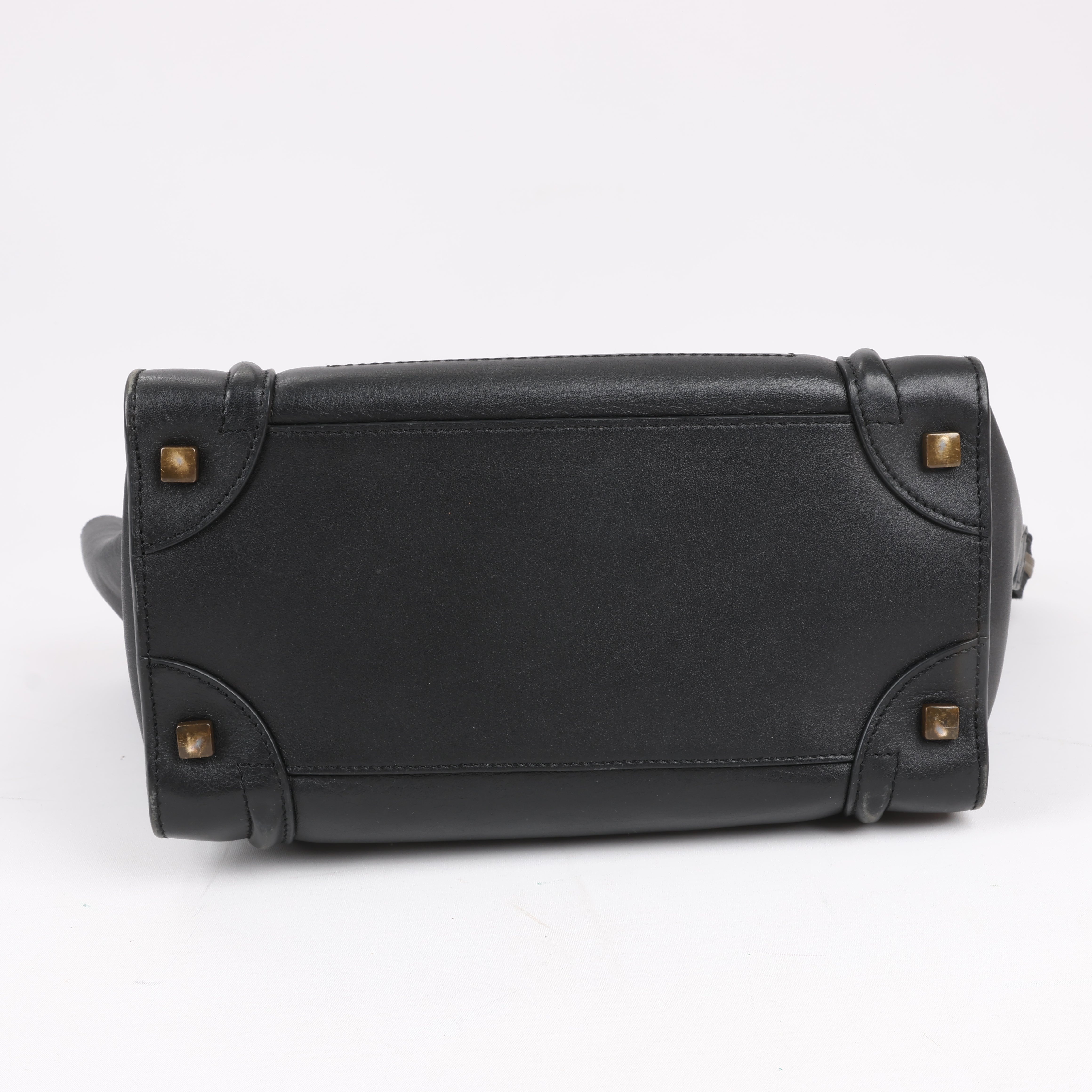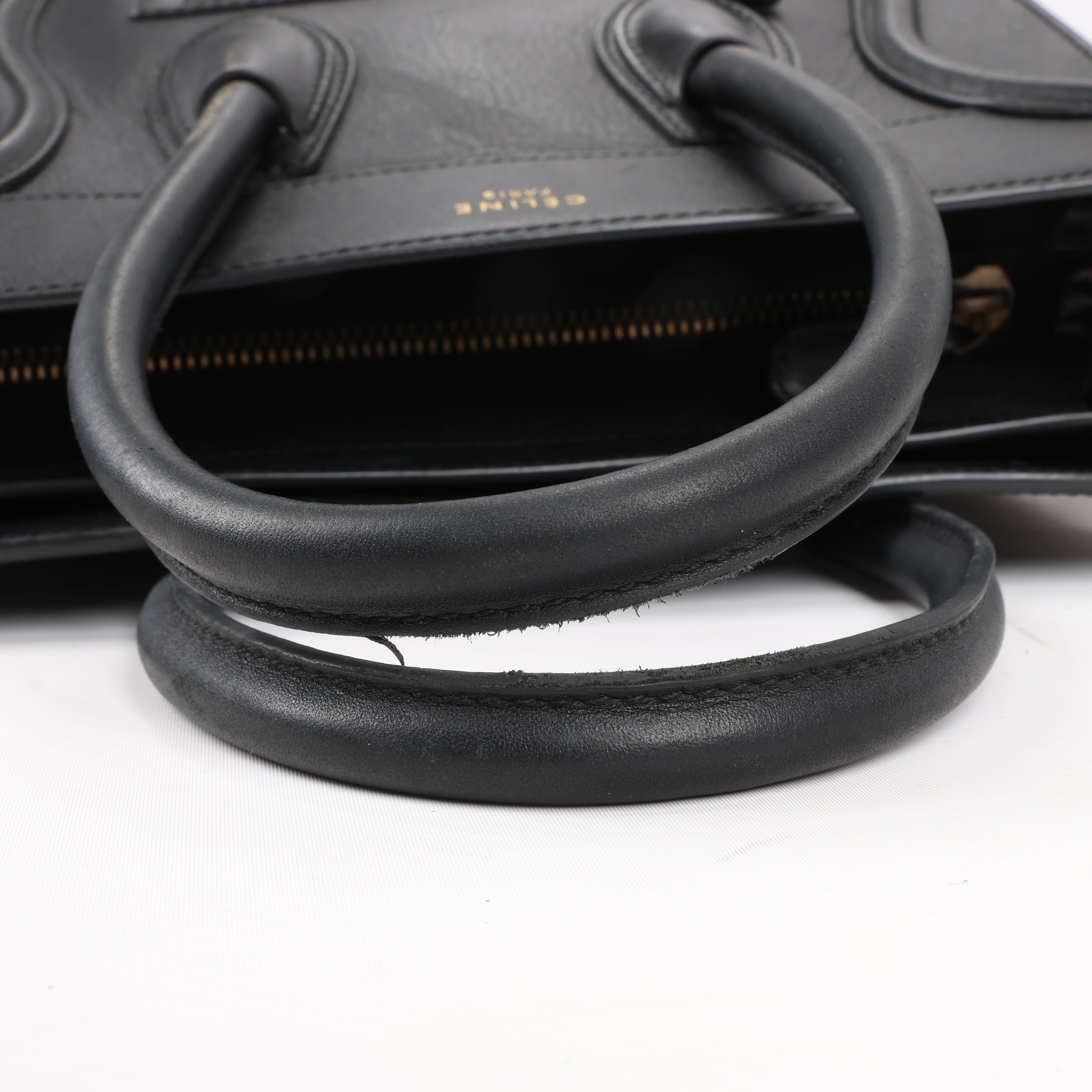 The CELINE Luggage Micro Leather Handbag in Black is a timeless icon, featuring smooth, high-quality leather with the brand's signature winged sides. Its spacious interior and distinctive front zip pocket make it both stylish and practical for everyday use.