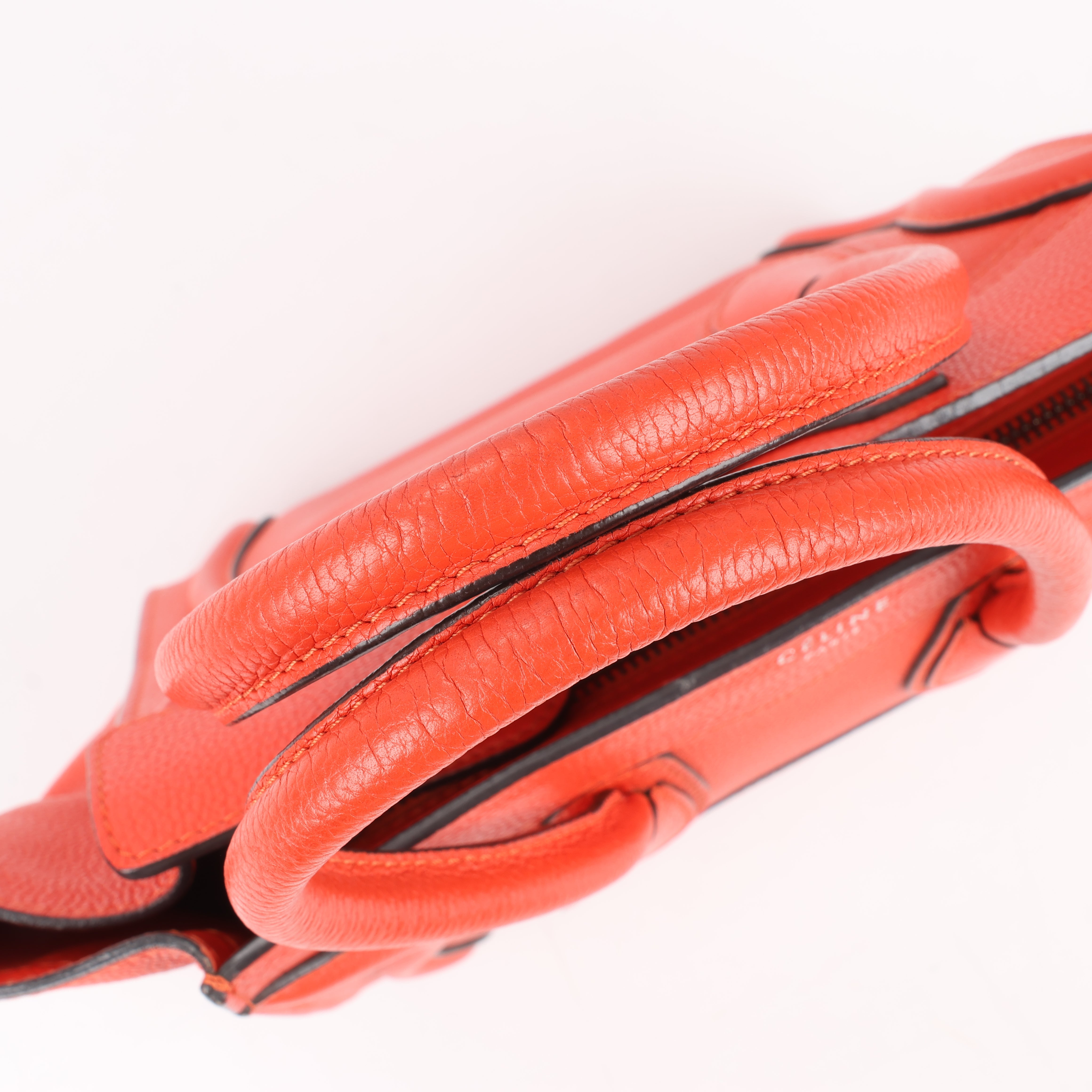 Brand: CelineModel: LuggageSize: MicroWidth: 26 cmHeight: 28.5 cmExterior Condition: ExcellentInterior Condition: ExcellentCondition Details: Exterior leather is clean and beautiful in excellent condition, with some crease and small rubbings. The handles are clean and firm. The hardware is crisp and in great condition with some scratches. The interior lining is in good condition. Width at the top is 40 cm.Colour: RedInterior Colour: RedHardware Colour: SilverMaterial: LeatherComes With: -