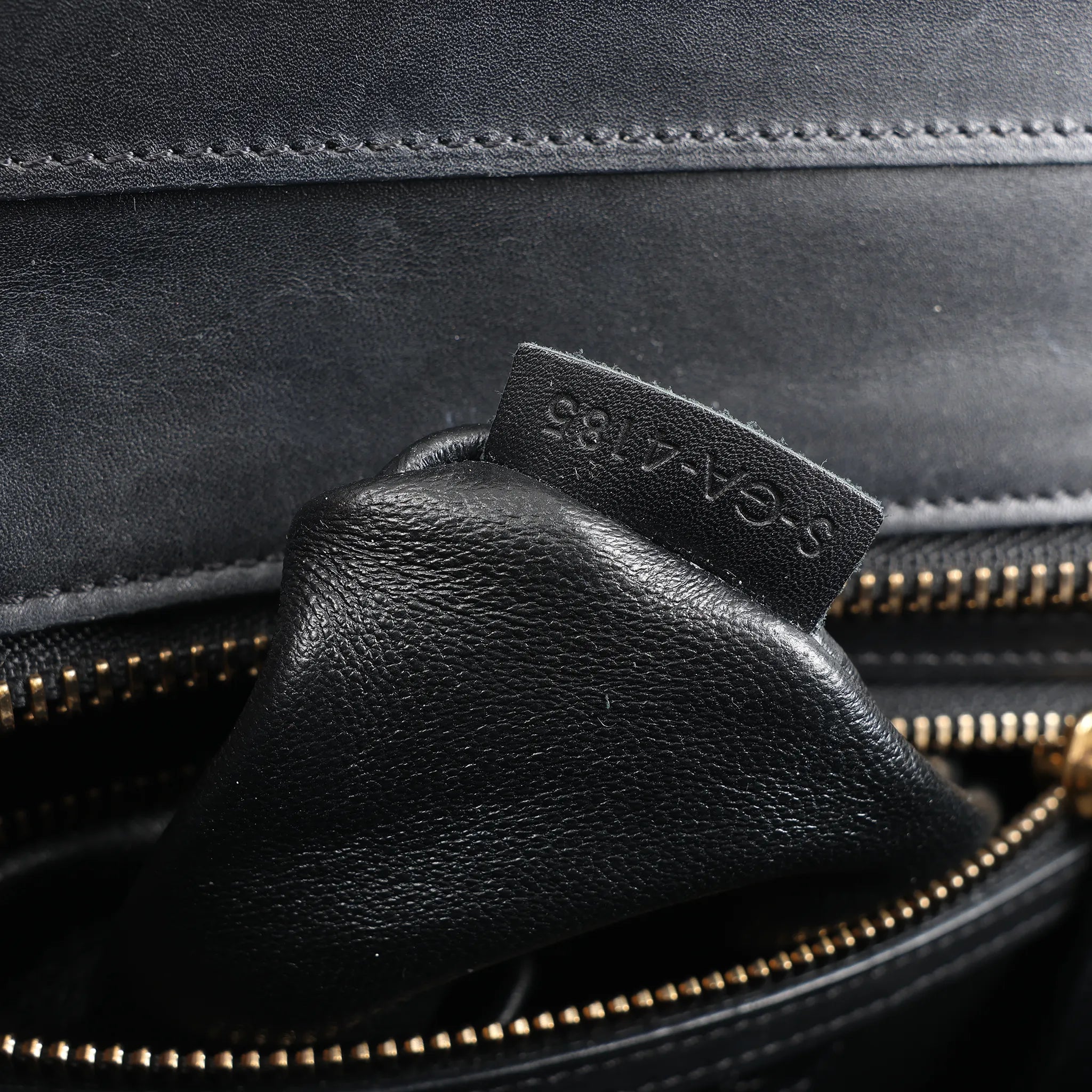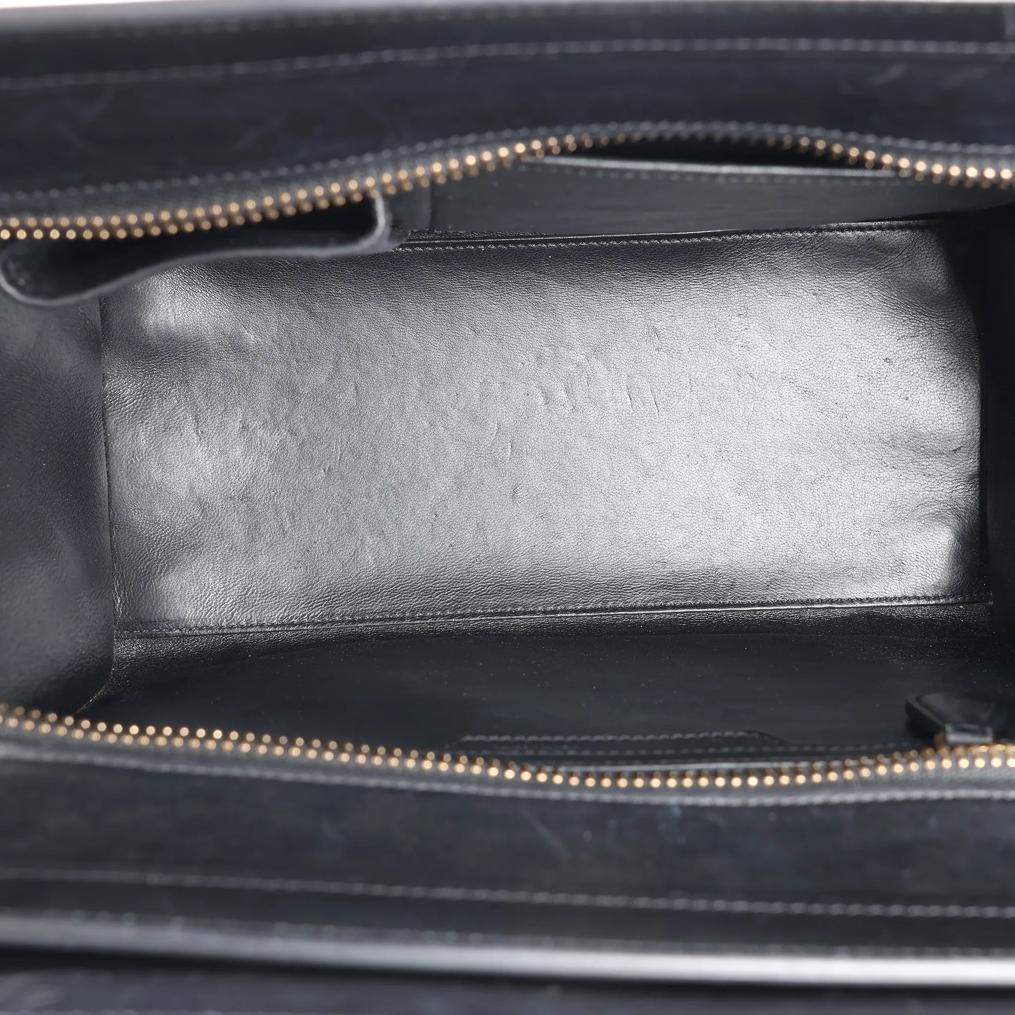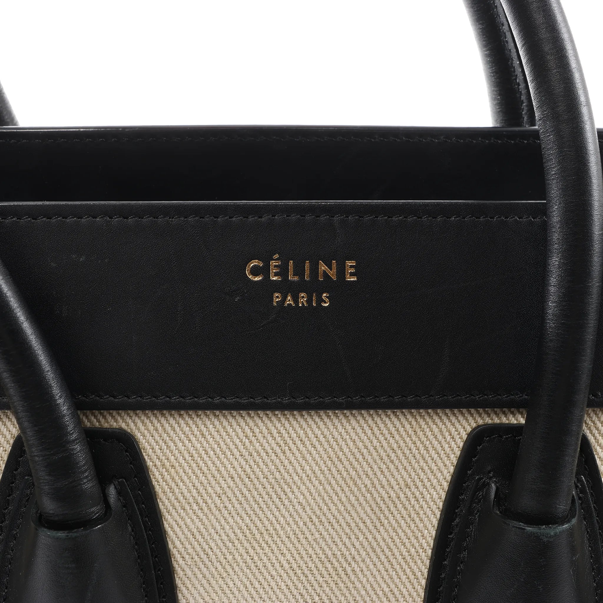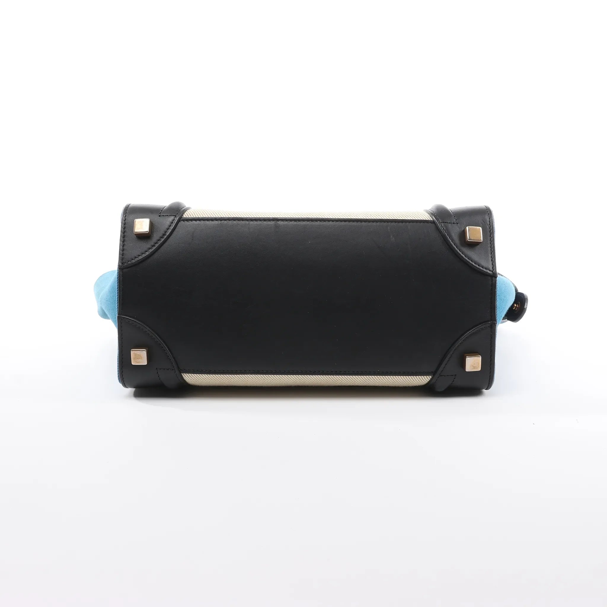 Celine Luggage Micro Leather x Canvas Handbag in Black x Beige x Blue