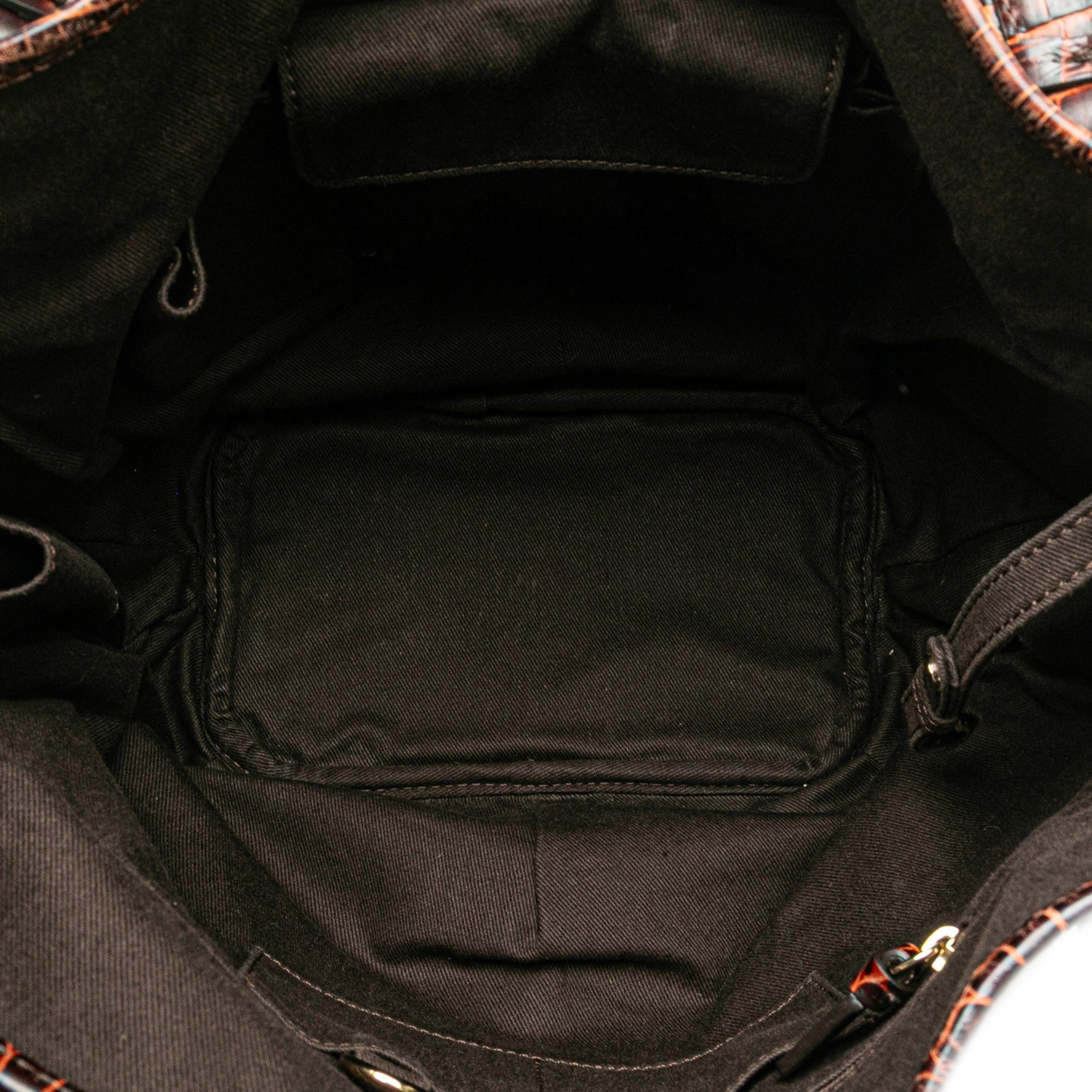 The Bittersweet features a canvas body with leather trim, embossed flat leather handles, an open top with magnetic snap closure, and interior flap and slip pockets. Retail Price: 895.00
