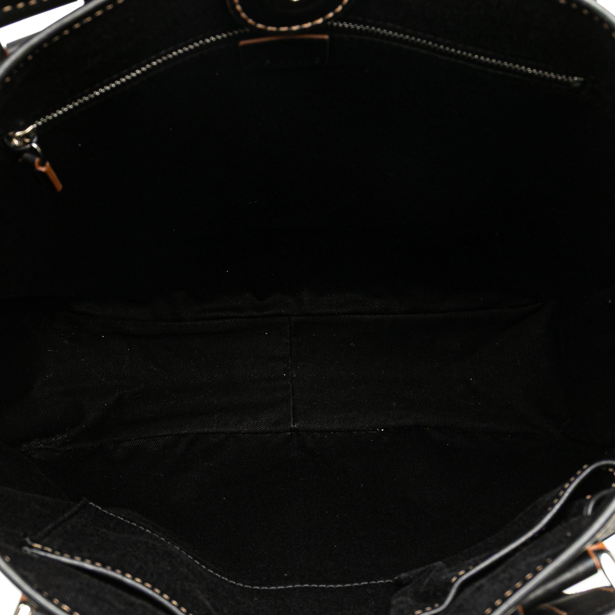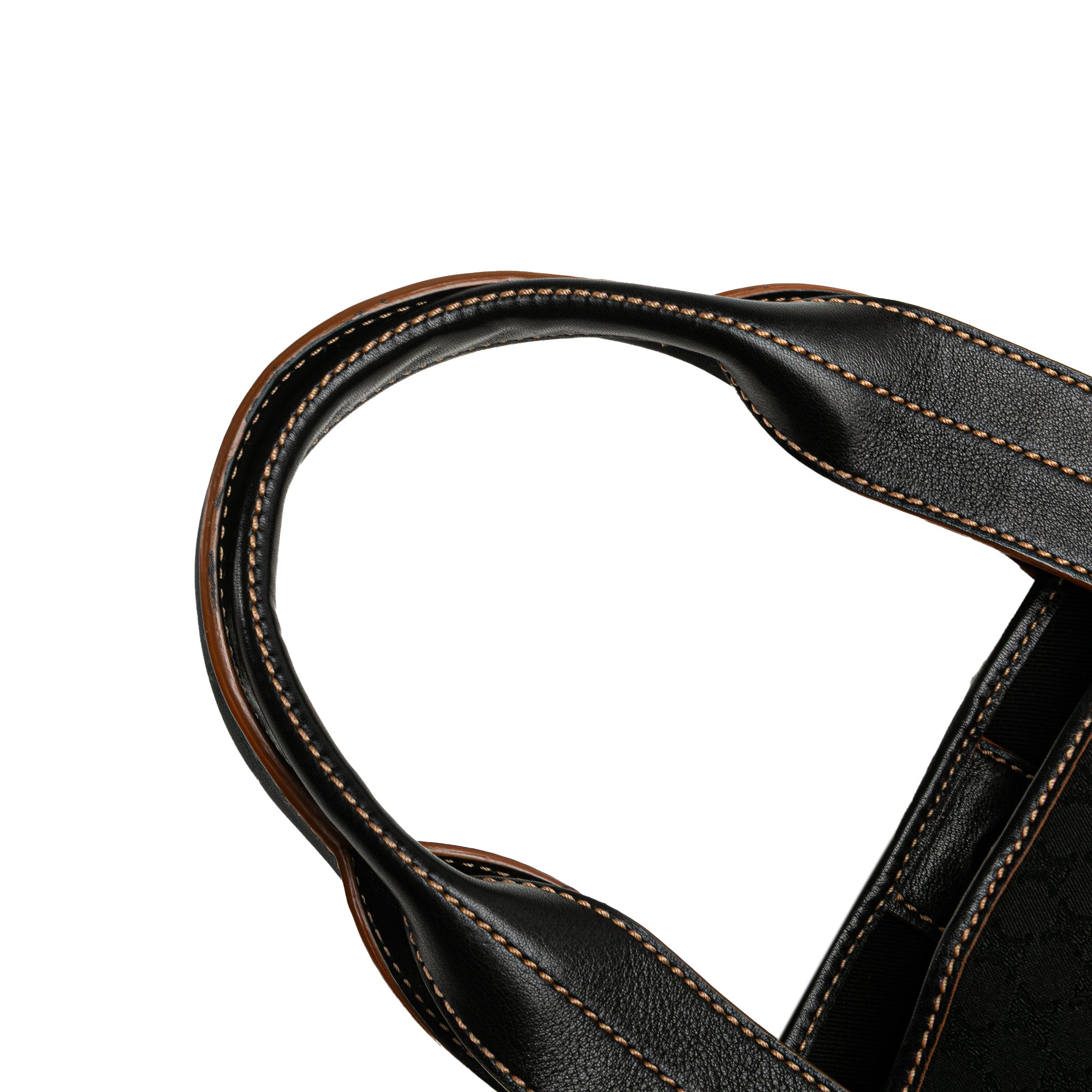 This tote bag features a canvas body with leather trim, flat leather handles, an open top with a magnetic closure, and interior zip and slip pockets. Retail Price: 895.00